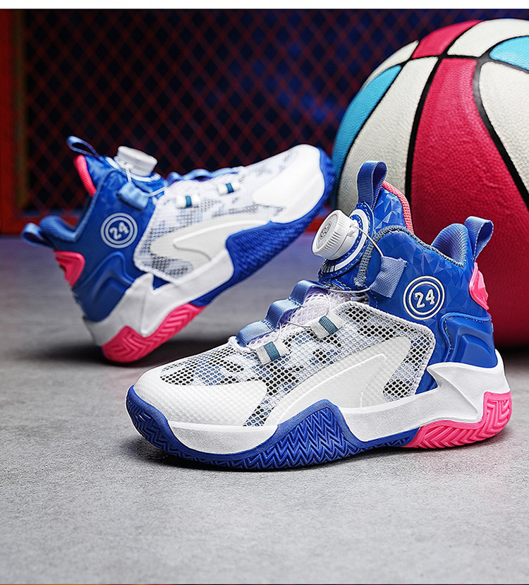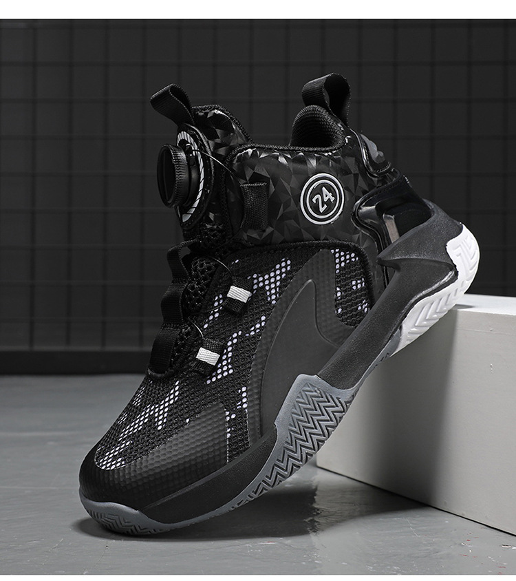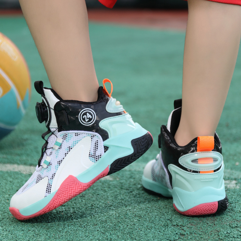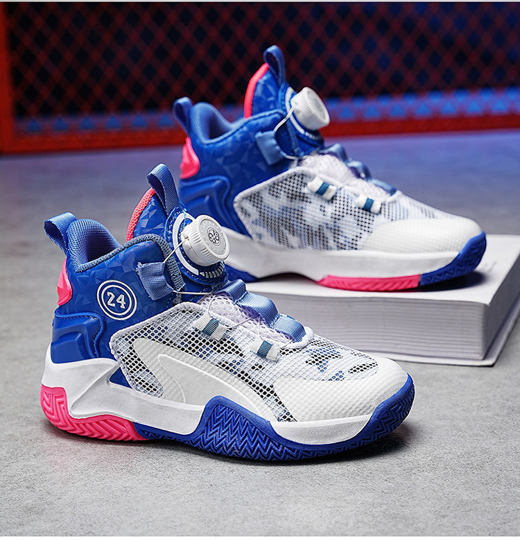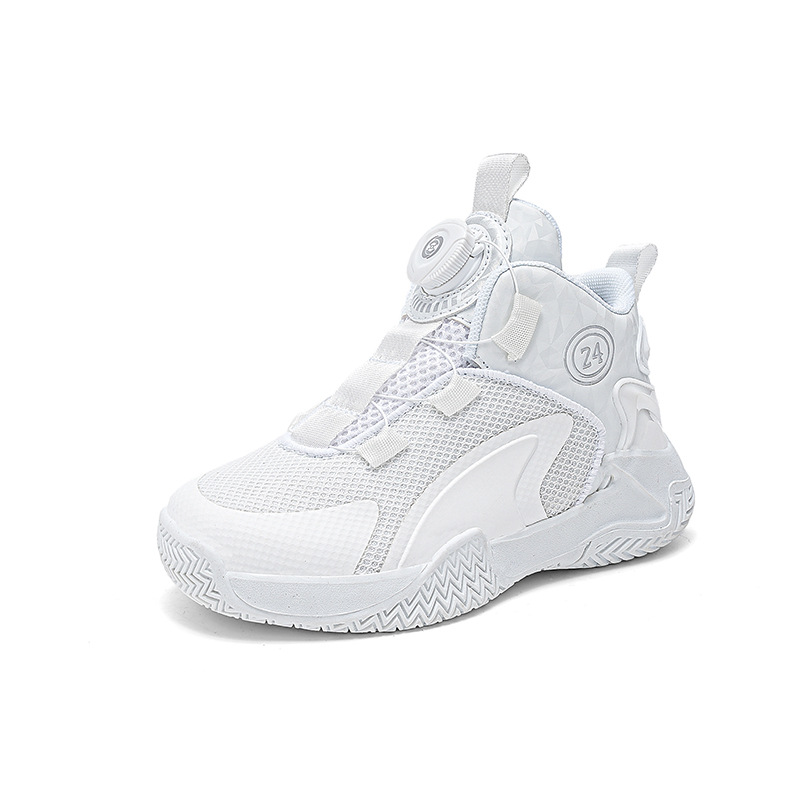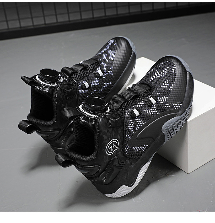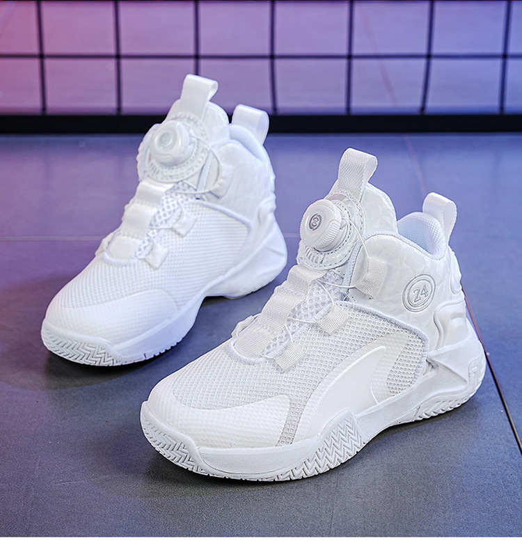 Zapatos de baloncesto de malla para niños, zapatos de botón giratorio transfronterizos, zapatos casuales transpirables, zapatos de moda para estudiantes de mujeres