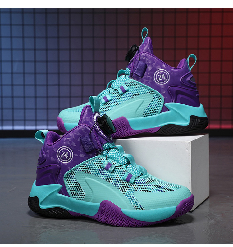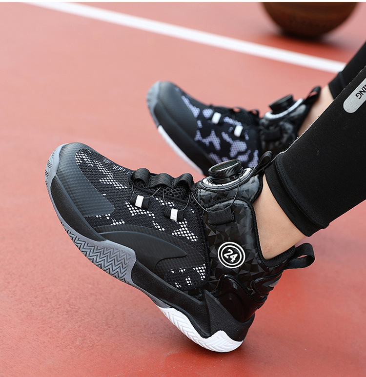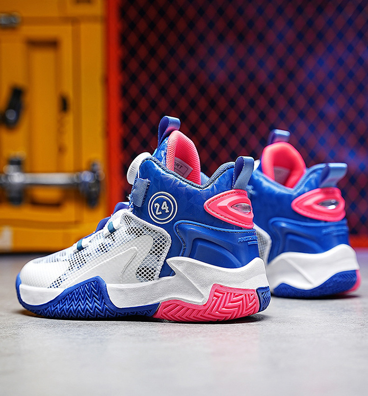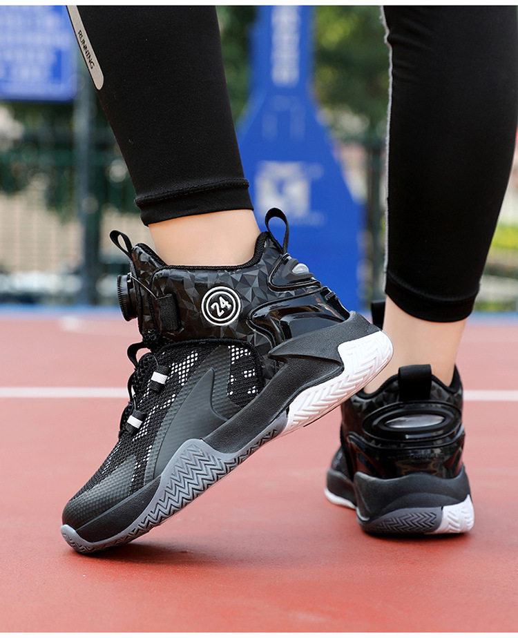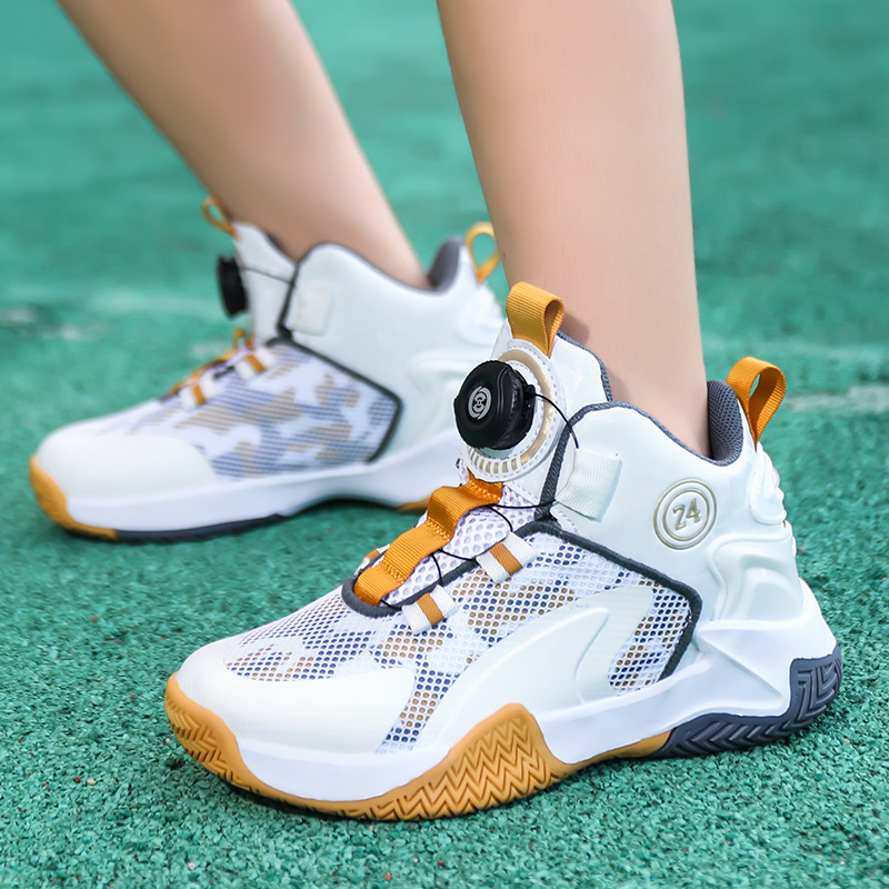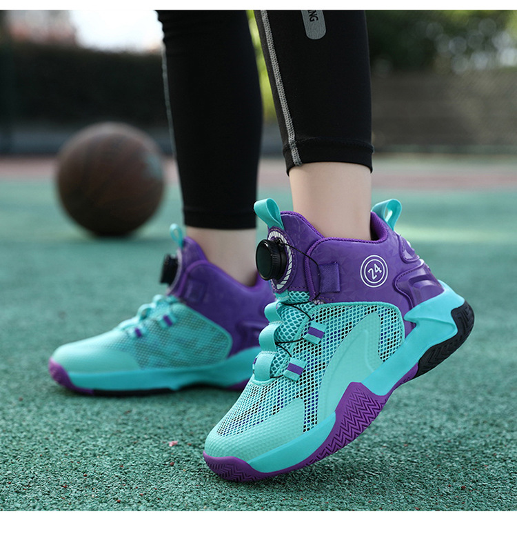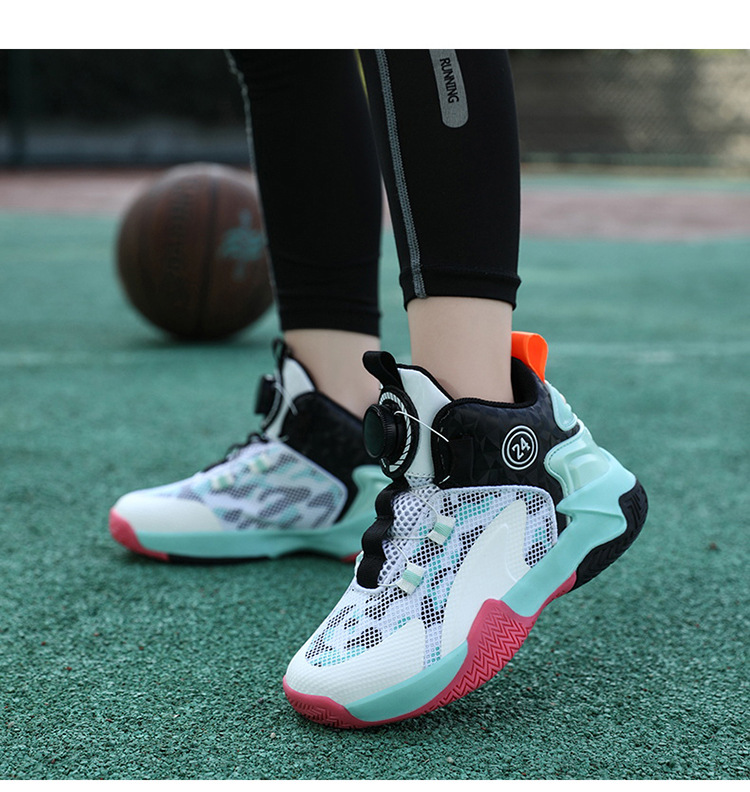 Zapatos de baloncesto de malla para niños, zapatos de botón giratorio transfronterizos, zapatos casuales transpirables, zapatos de moda para estudiantes de mujeres