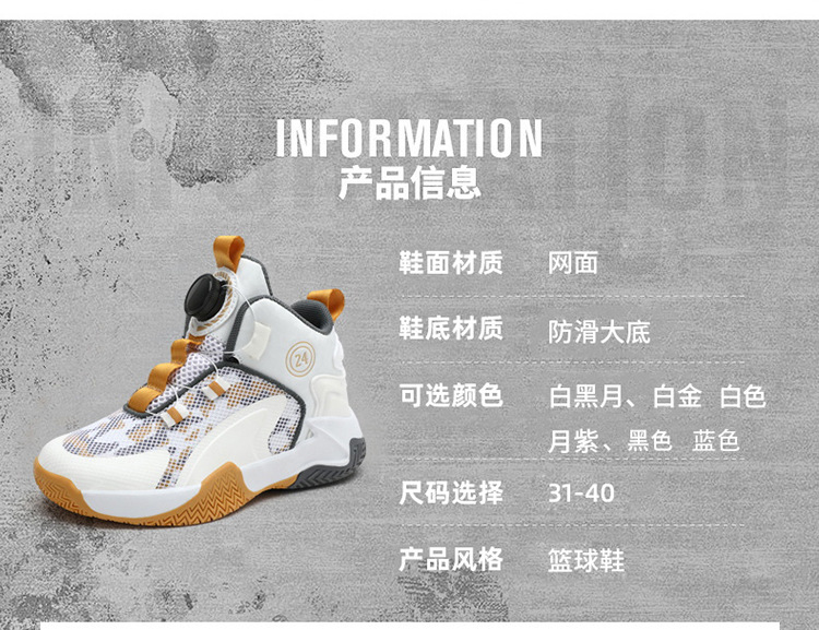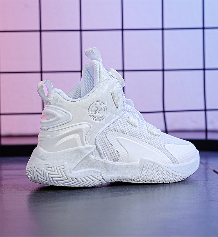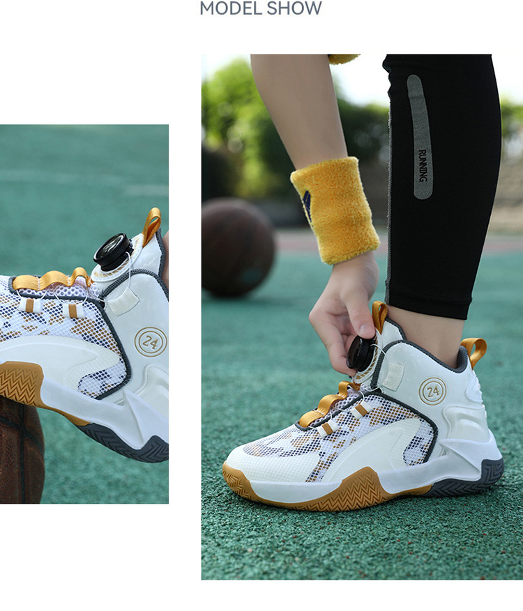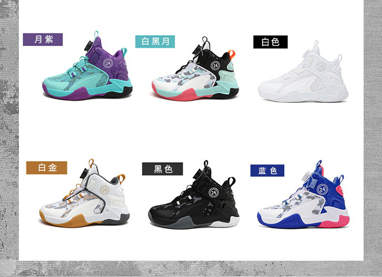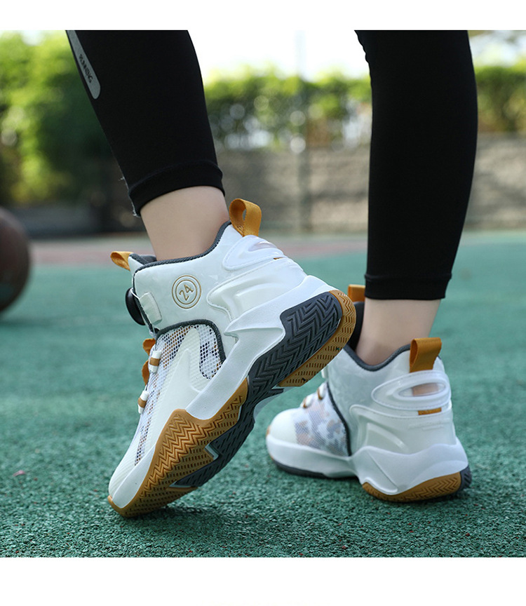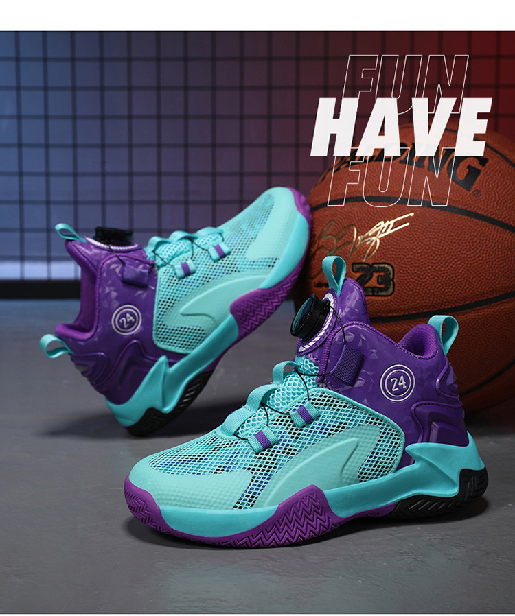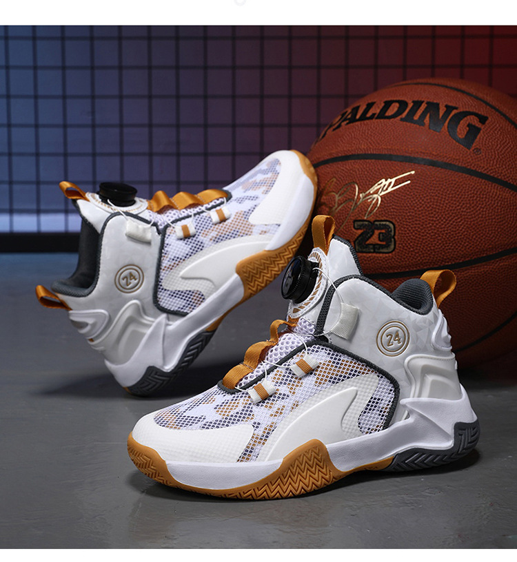 Zapatos de baloncesto de malla para niños, zapatos de botón giratorio transfronterizos, zapatos casuales transpirables, zapatos de moda para estudiantes de mujeres