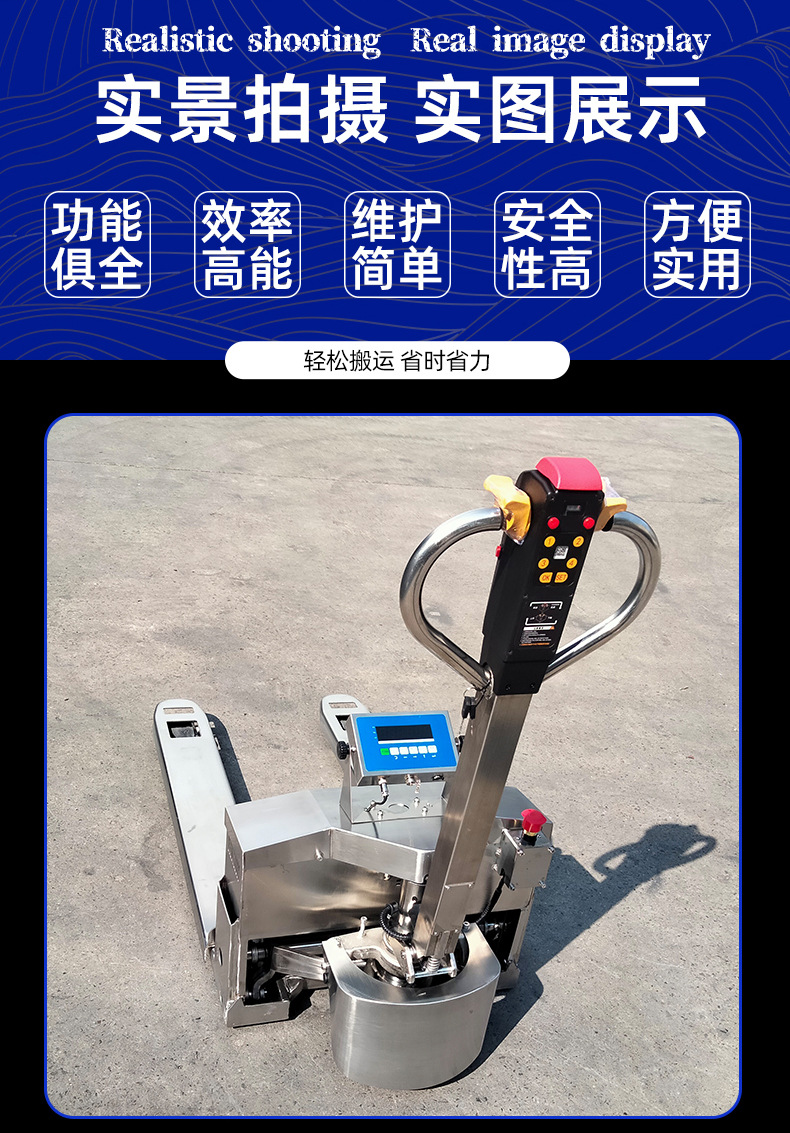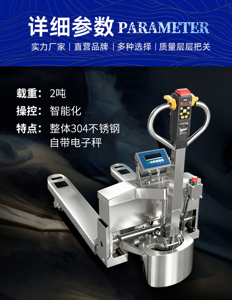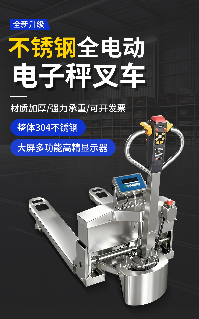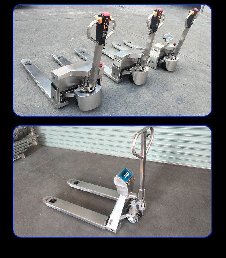 2 toneladas de acero inoxidable 304 carretilla elevadora eléctrica escala pallet camión anticorrosión antiaoxidable escala electrónica pesada hidráulica remolque buey