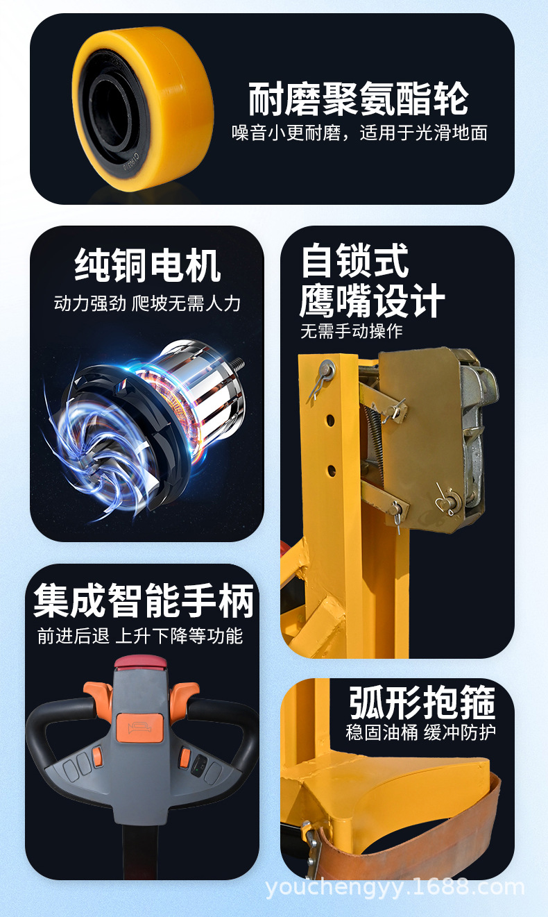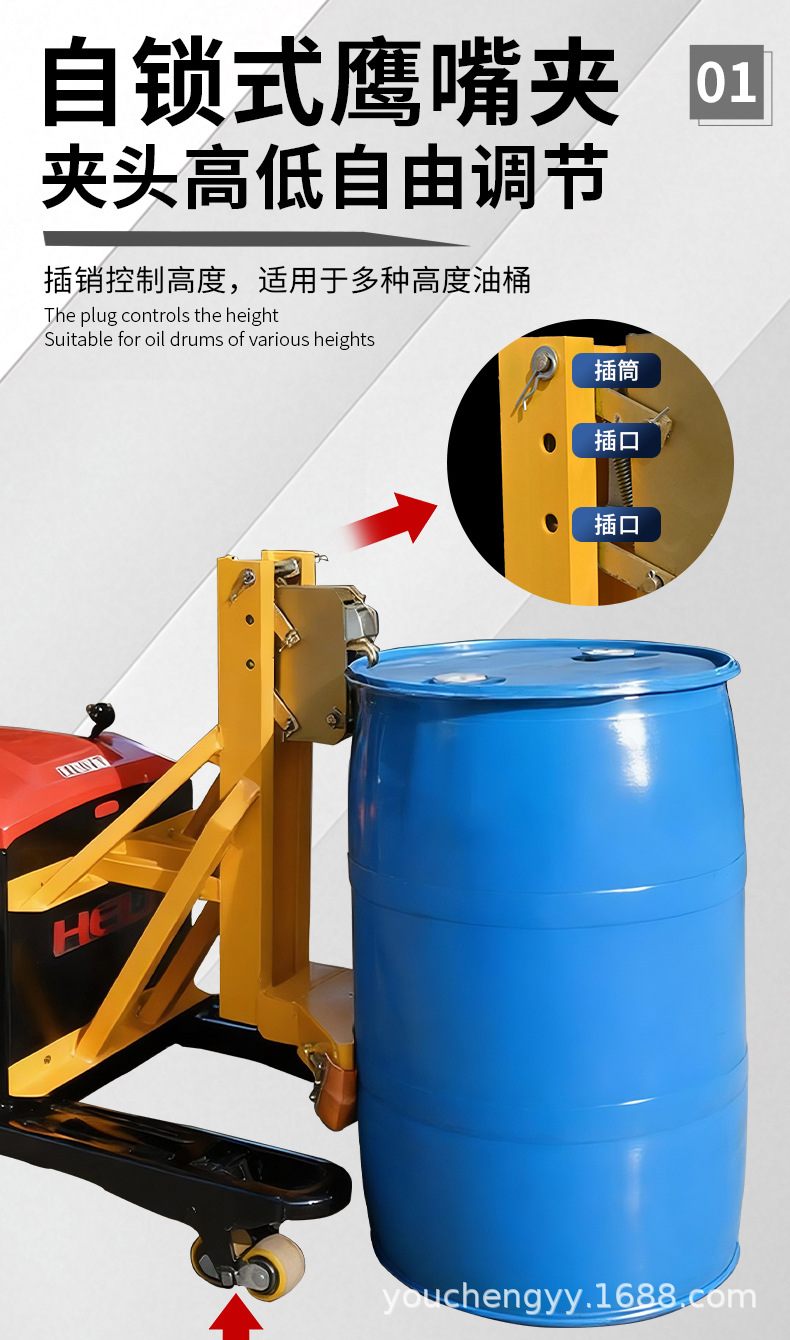 Barril eléctrico de aceite transporte abrazadera de elevación abrazadera de barril de hierro aleación de acero de boca de halcón carretilla elevadora de barril único y doble abrazadera de elevación
