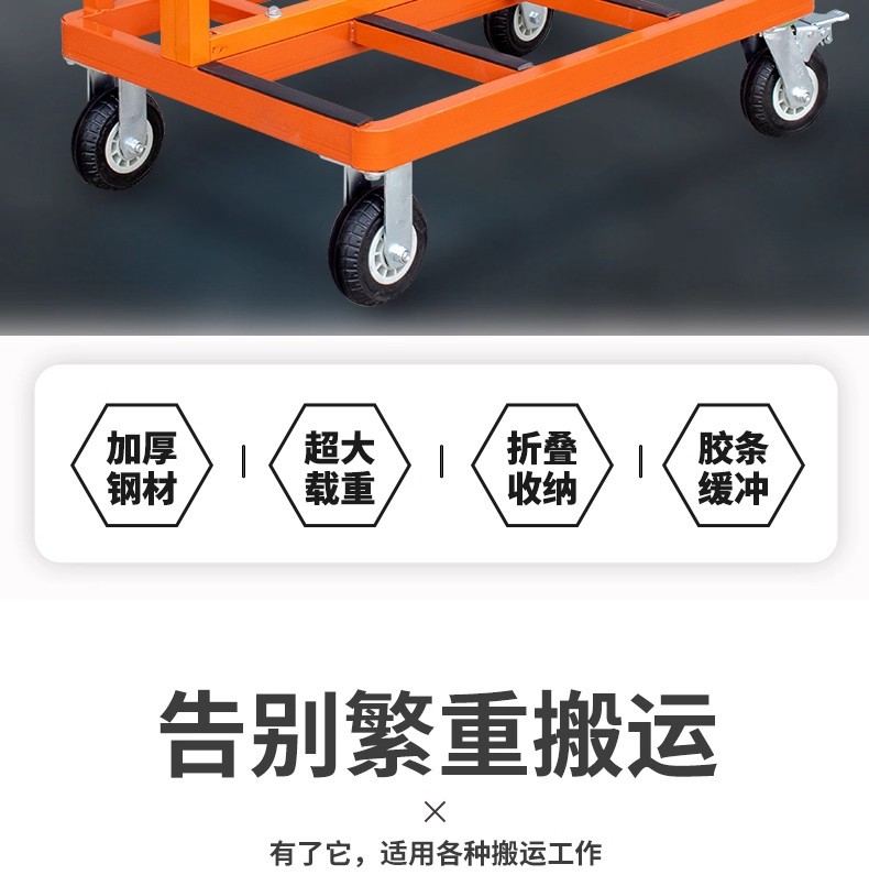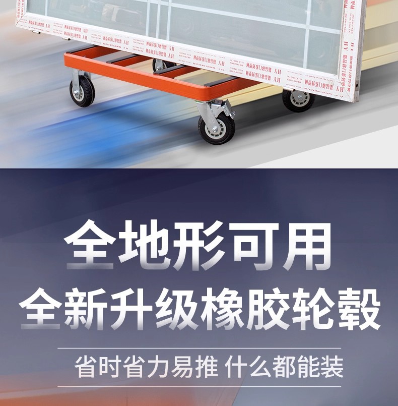 Nuevo carro de puerta y ventana de vidrio de cuatro ruedas plano de ruedas universales plegables portátiles silenciosos para manejar el sitio de construcción de ruedas grandes