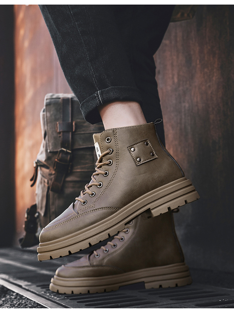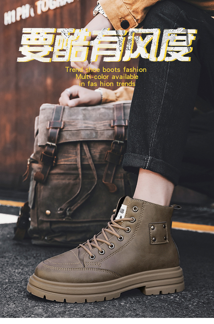 Martin boots otoño para hombre nuevo estilo alto retro estilo británico montañismo botas de herramientas botas cortas de moda para hombre suela gruesa todo fósforo