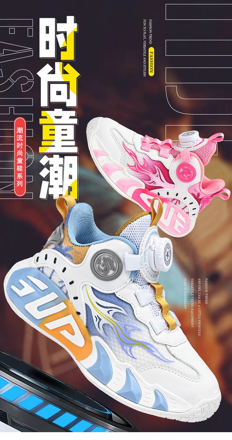 Zapatos para niños, zapatos de baloncesto, 2025 nuevos zapatos deportivos con botones, malla de primavera y verano, zapatos para correr para niños y niñas, niños de mediana edad