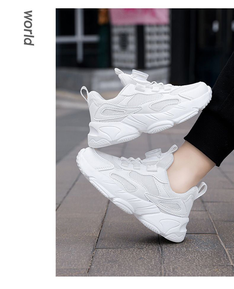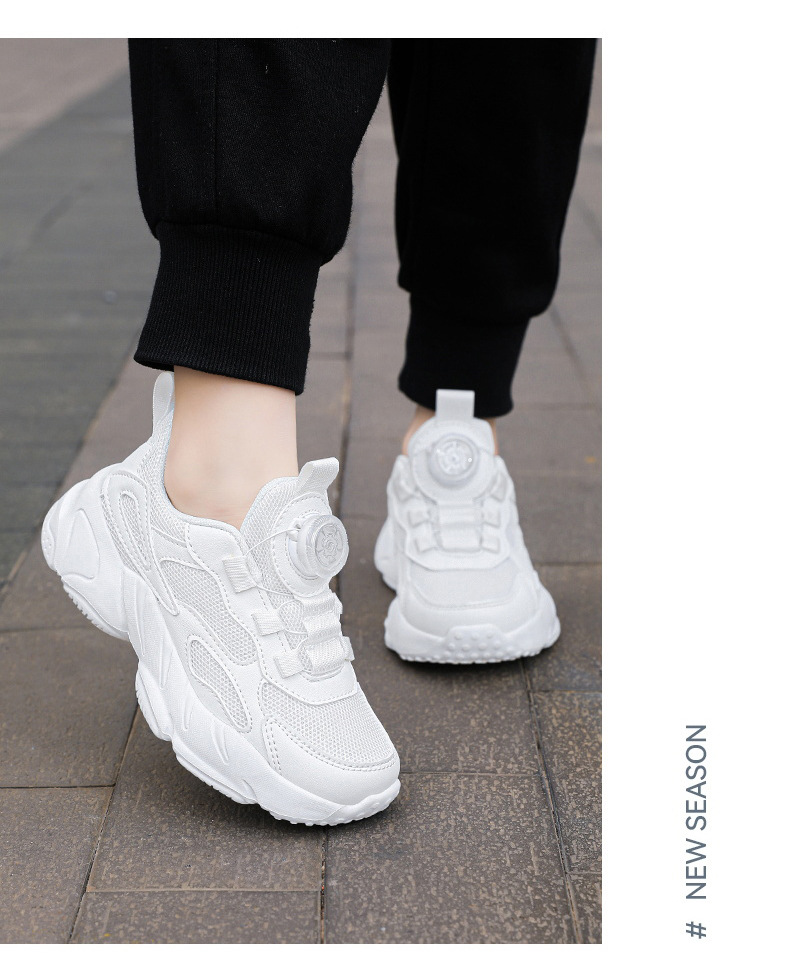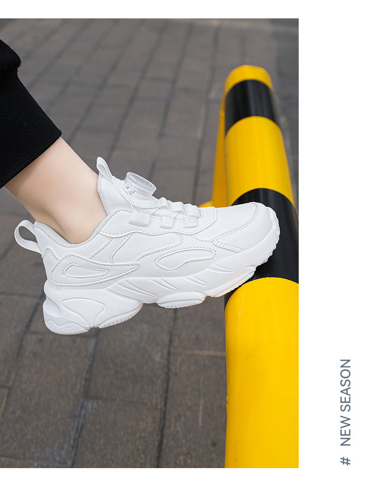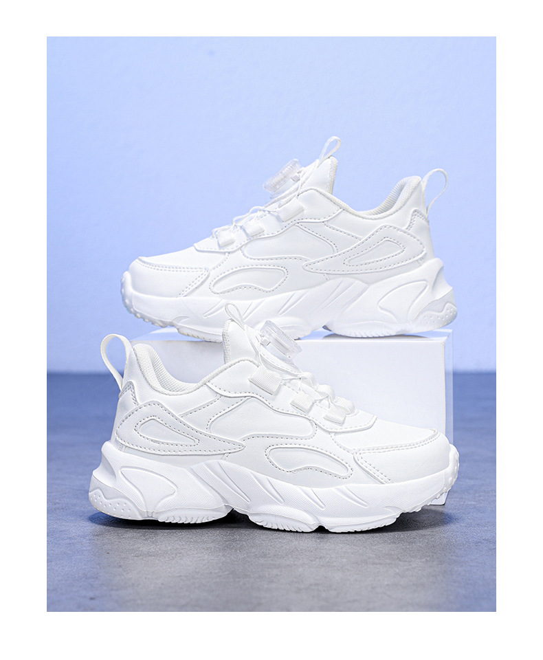 9966 botón giratorio para niños mayores estudiantes transpirables 2024 otoño nuevo cuero impermeable zapatillas antideslizantes para niñas
