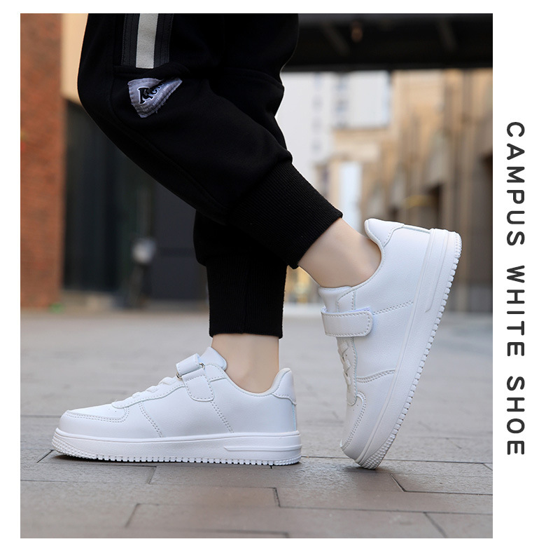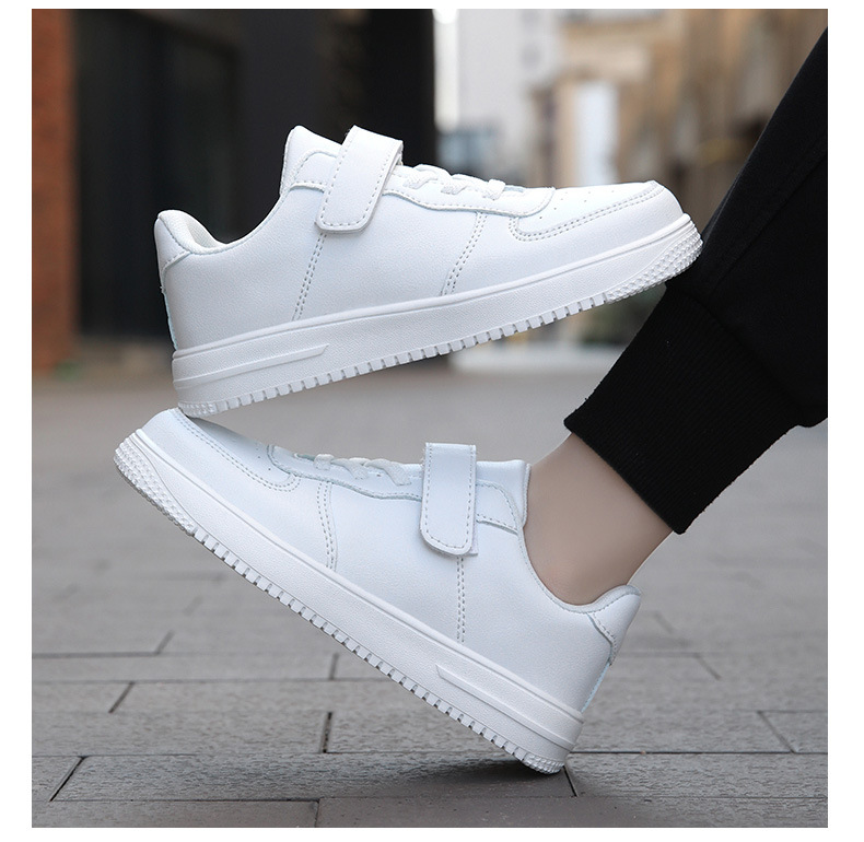 Zapatos de skate para niños estudiantes de edad media y mayor zapatos blancos transpirables impermeables zapatos de cuero nuevas niñas 2024 niños