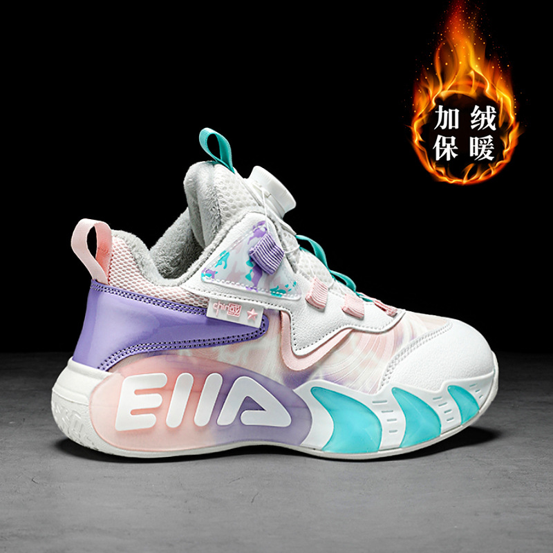 2024 nuevos zapatos de baloncesto para niños botón giratorio zapatos de primavera deportes de niños grandes zapatos de algodón de moda