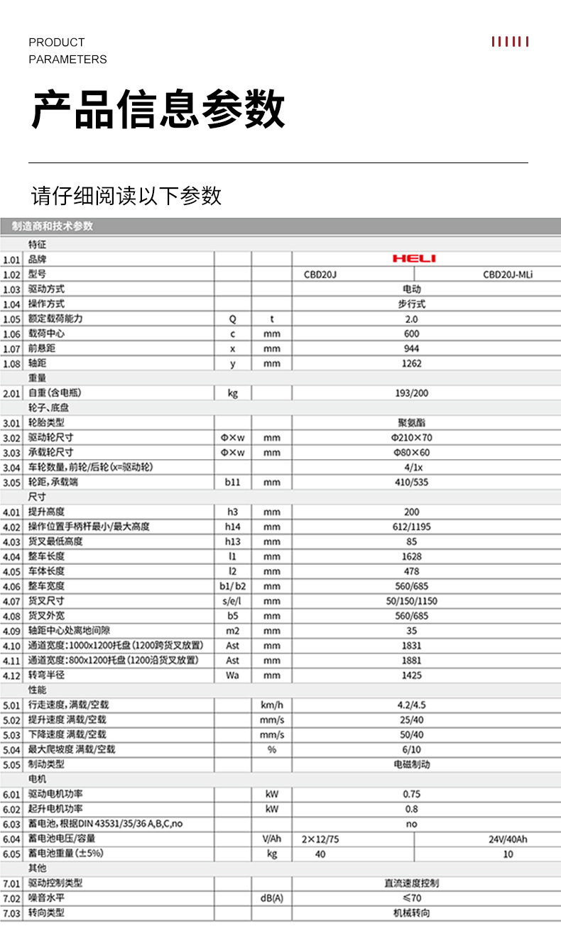| Modelo | Potencia resultante de 2 toneladas - litio eléctrico totalmente eléctrico - patas estrechas CBD20J-Li2, Potencia resultante de 2 toneladas - litio eléctrico totalmente eléctrico - patas anchas CBD20J-Li2 |