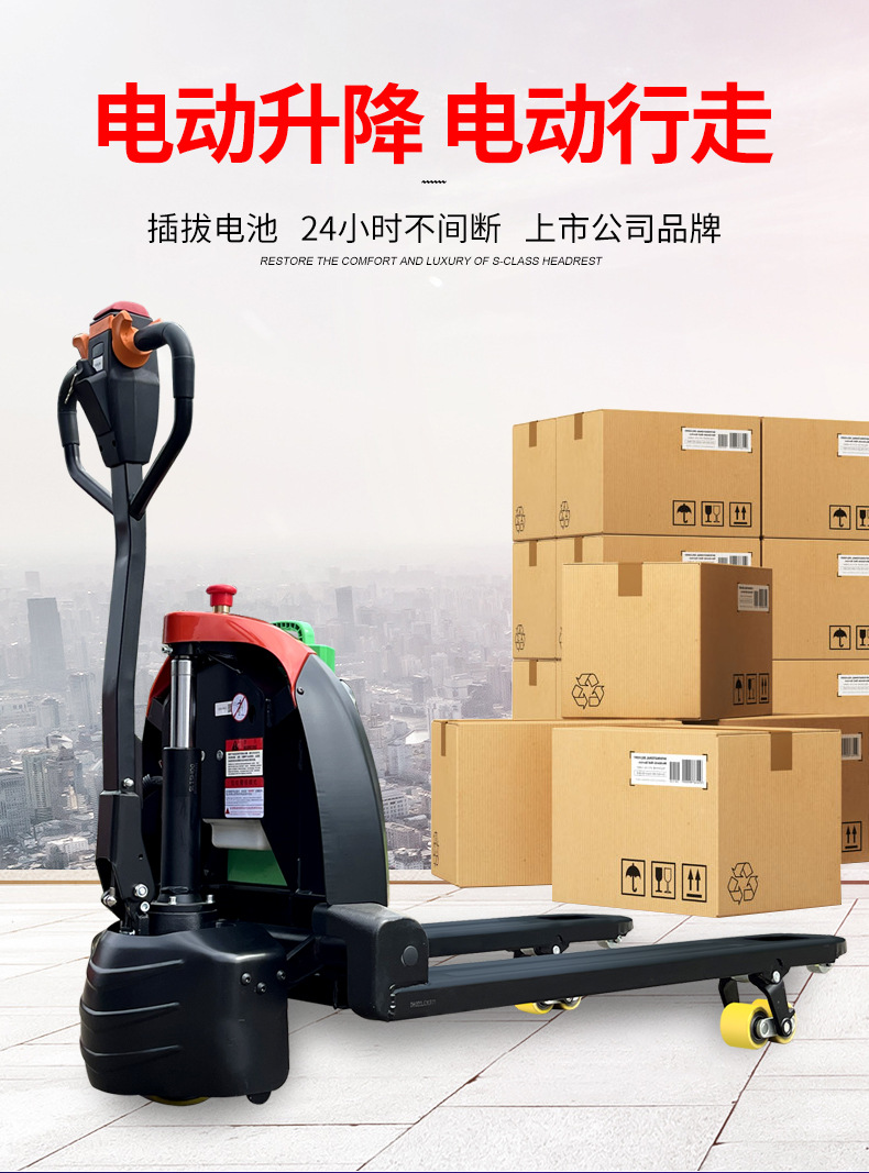 Capacidad resultante de 2 toneladas caminante de litio eléctrico transporte hidráulico carretilla elevadora de baterías bandeja elevadora tierra buey elevadora