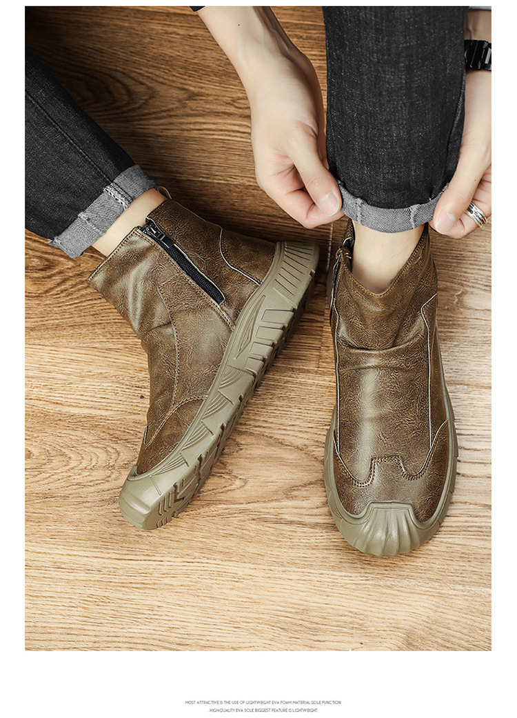 Zapatos de hombre de moda antideslizantes de todo fósforo cómodos botas de cuero de moda nuevo estilo más botas Martin negras de terciopelo botas cálidas otoño e invierno