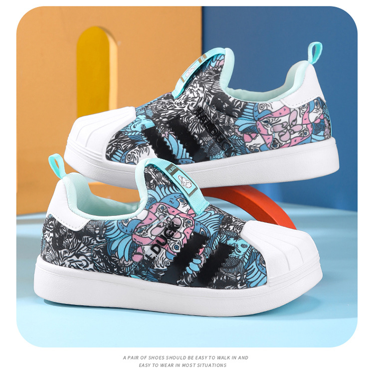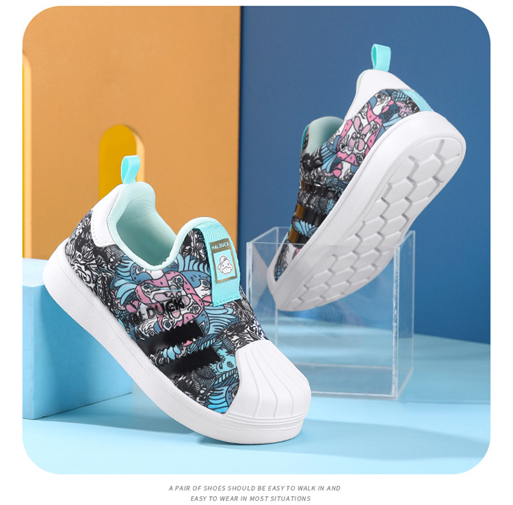 Pequeño pato amarillo conchas zapatos de skate para niños 2025 primavera y otoño nuevos zapatos de suela suave antideslizante para niñas y niños
