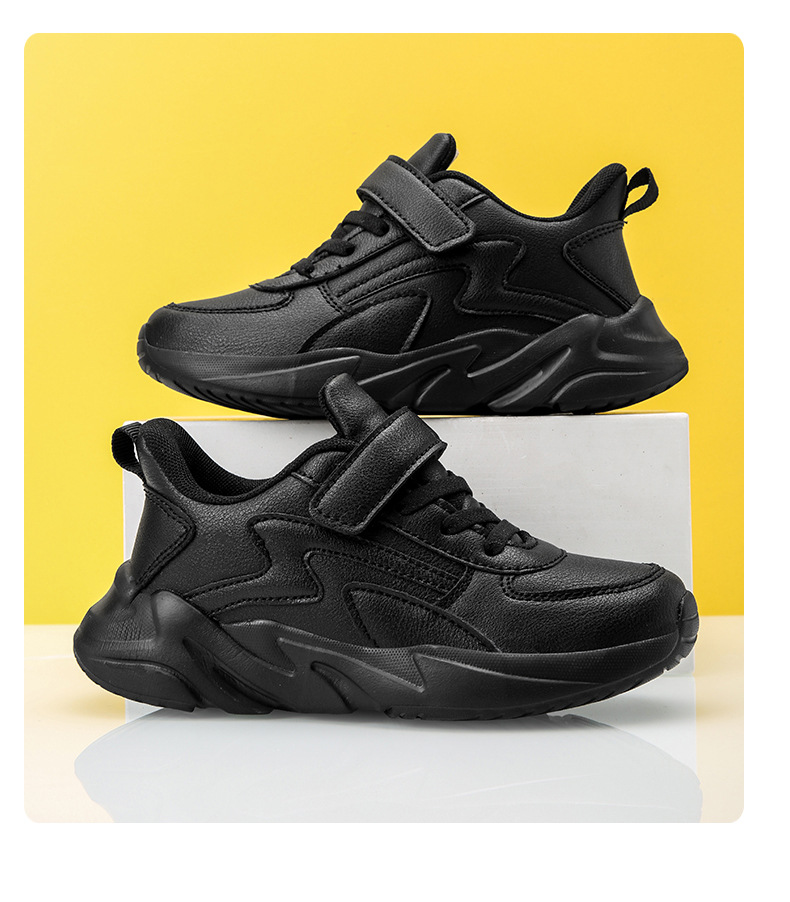 1905 niños grandes zapatos de suela suave para niños zapatos para niños 2024 comercio exterior negro puro transporte de cuero impermeable para niños