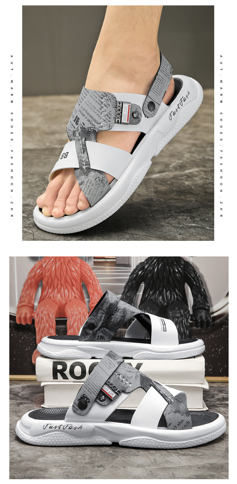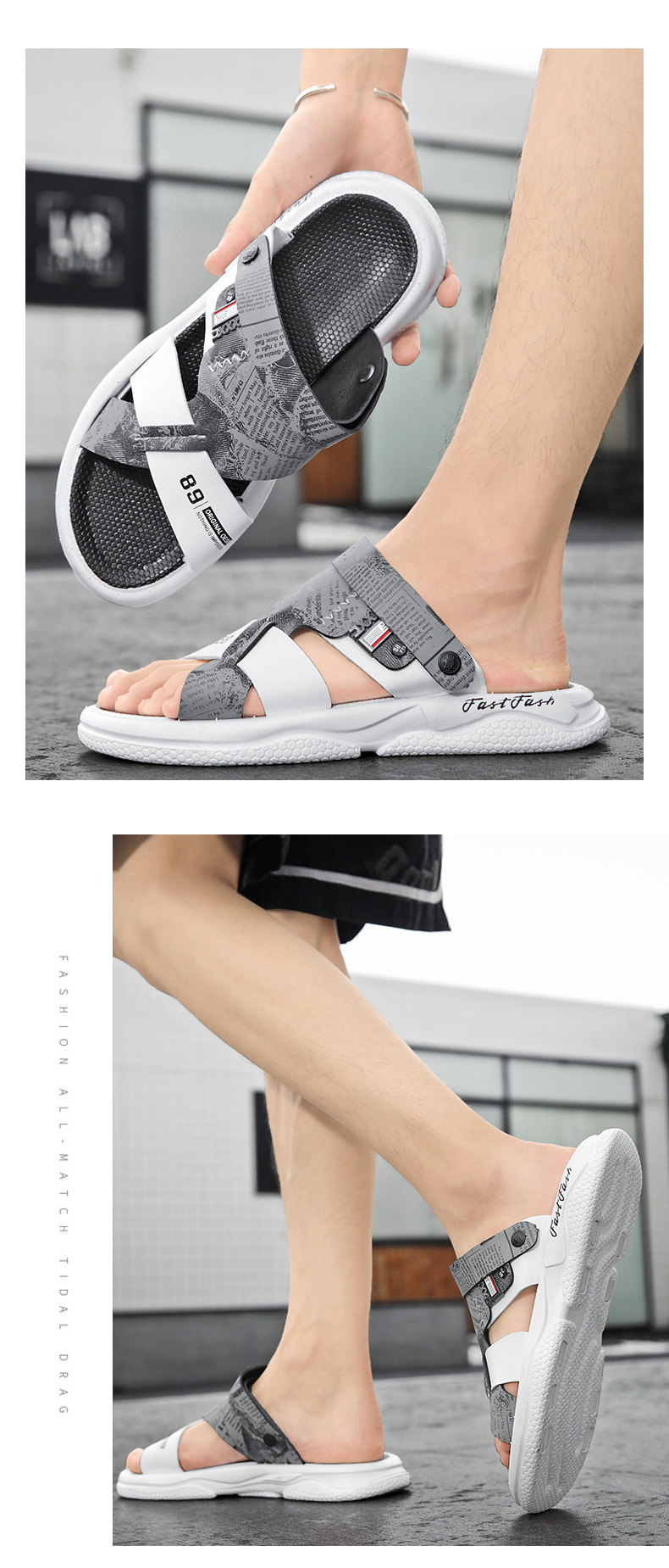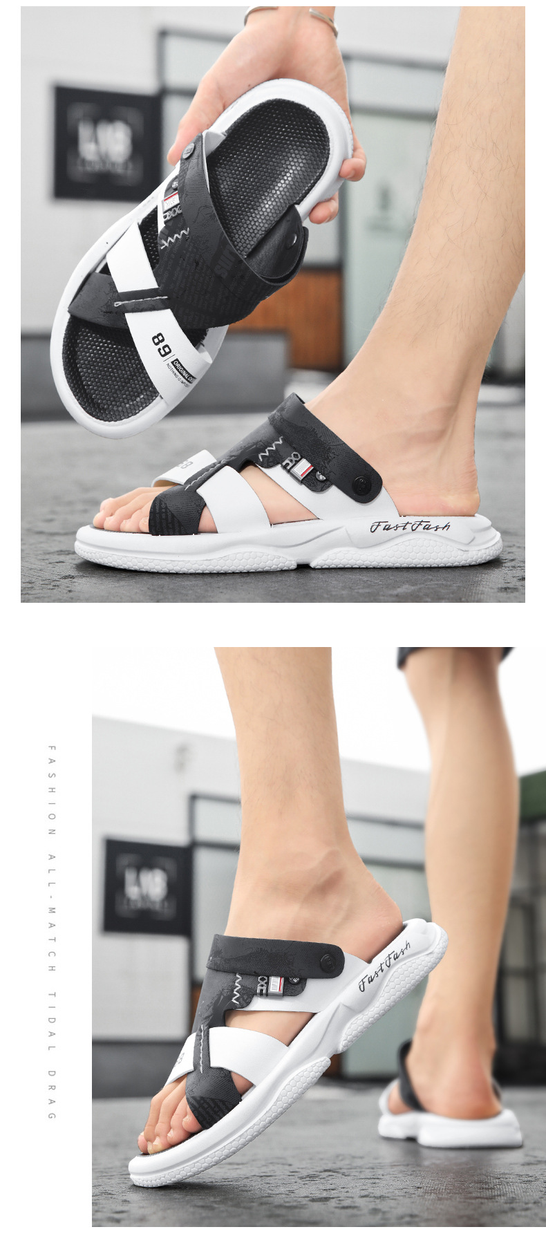 Sandalias gruesas para hombre, pantuflas al aire libre, estilo caliente, zapatos de playa para exteriores, conducción de doble uso, suela gruesa, suela blanda, antideslizante, verano
