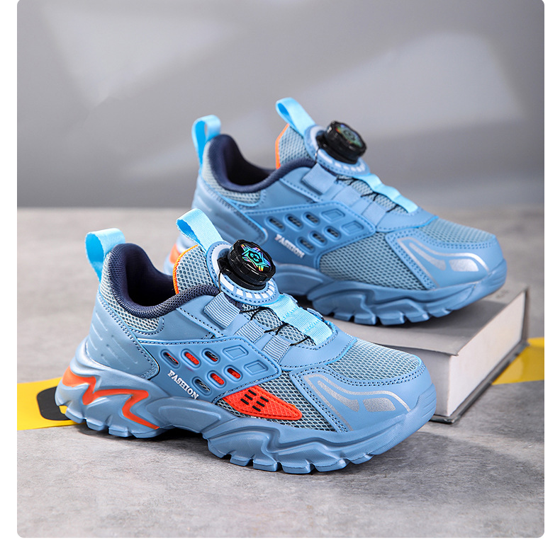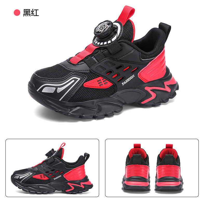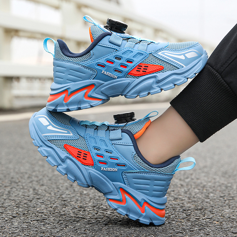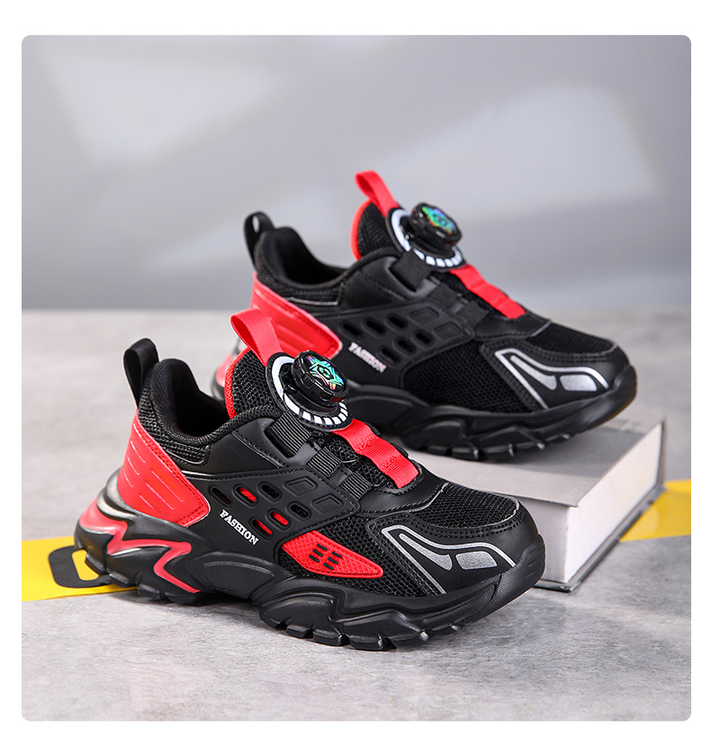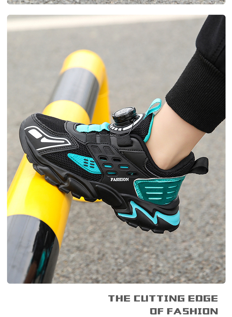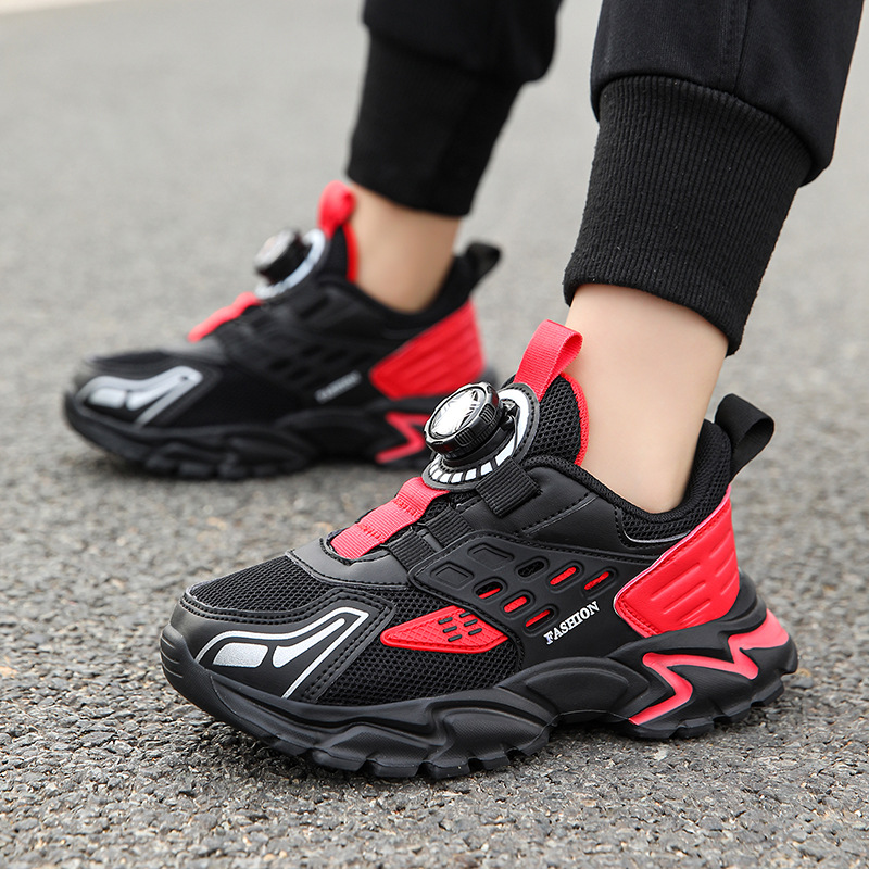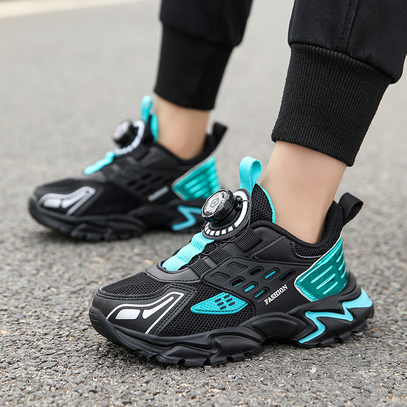 Zapatos respirables de malla para niños botones giratorios para niños al por mayor zapatos deportivos para niños 2024 primavera nuevos zapatos de papá