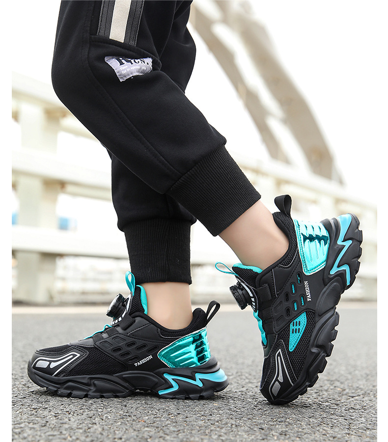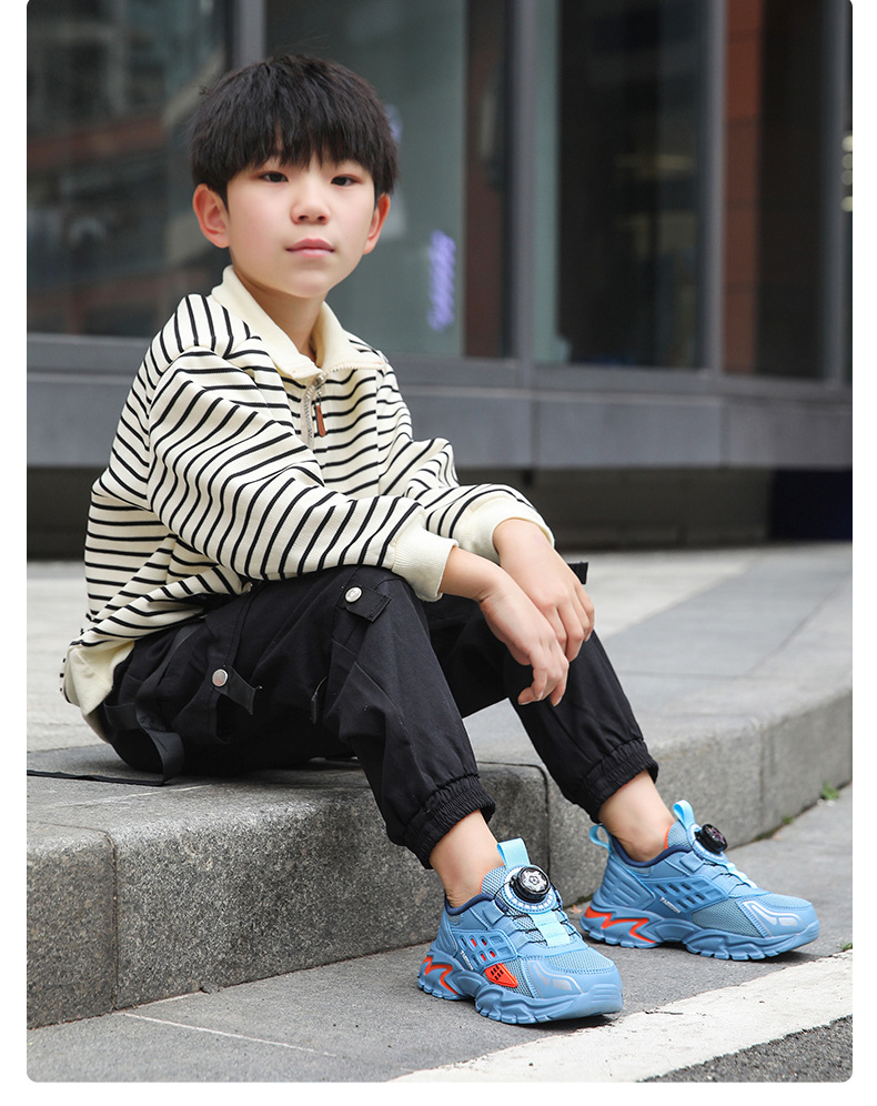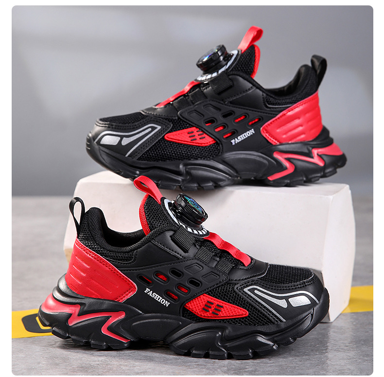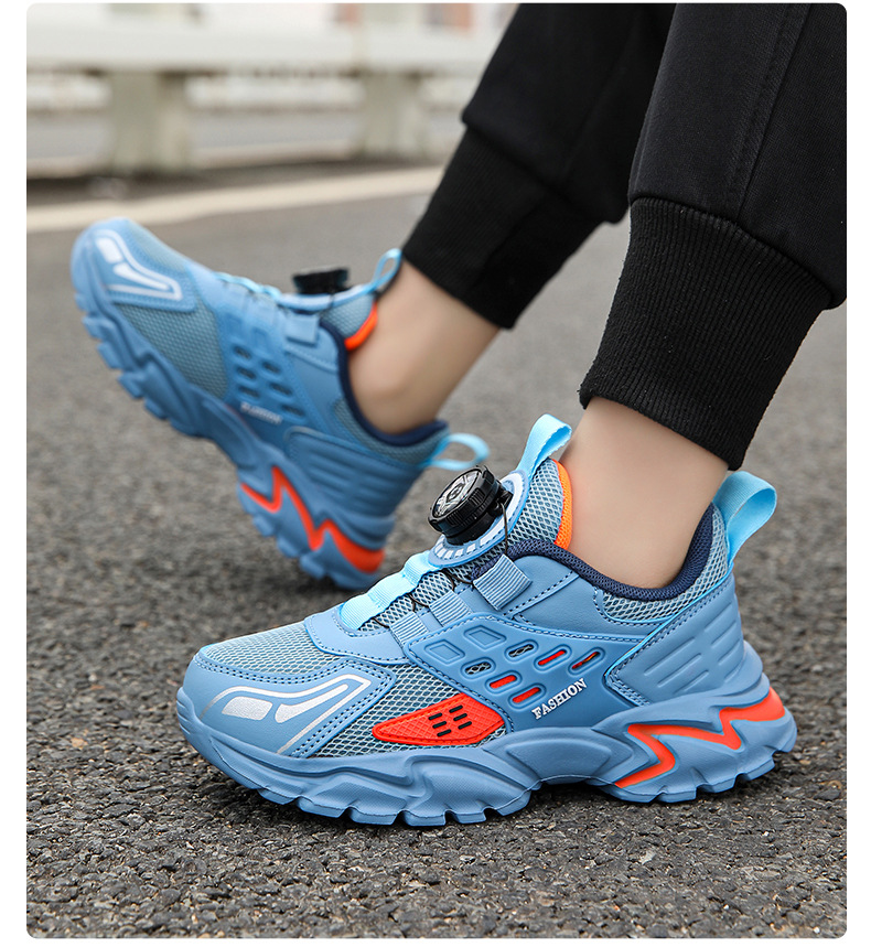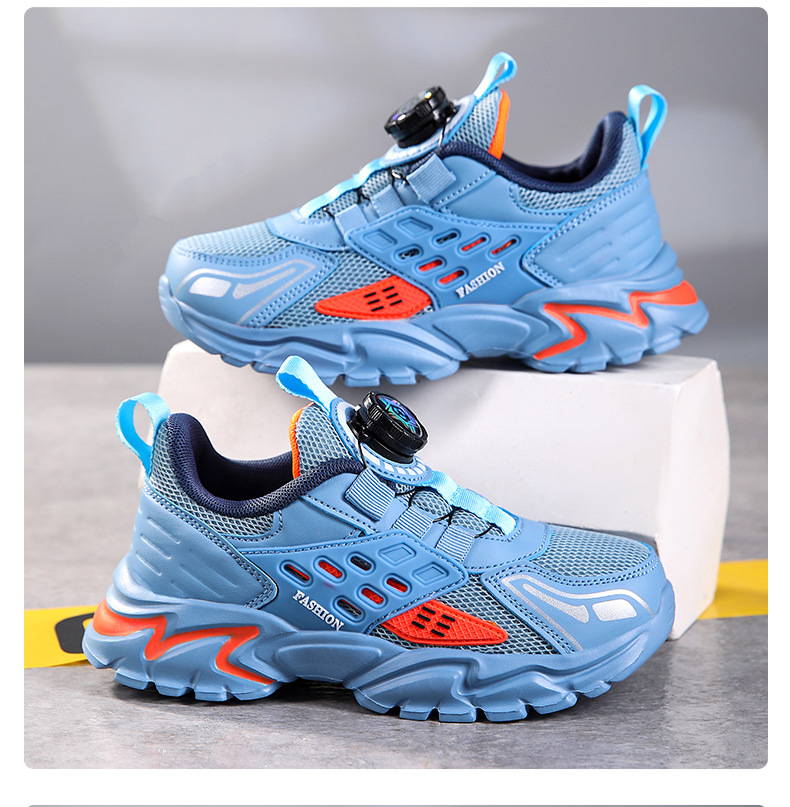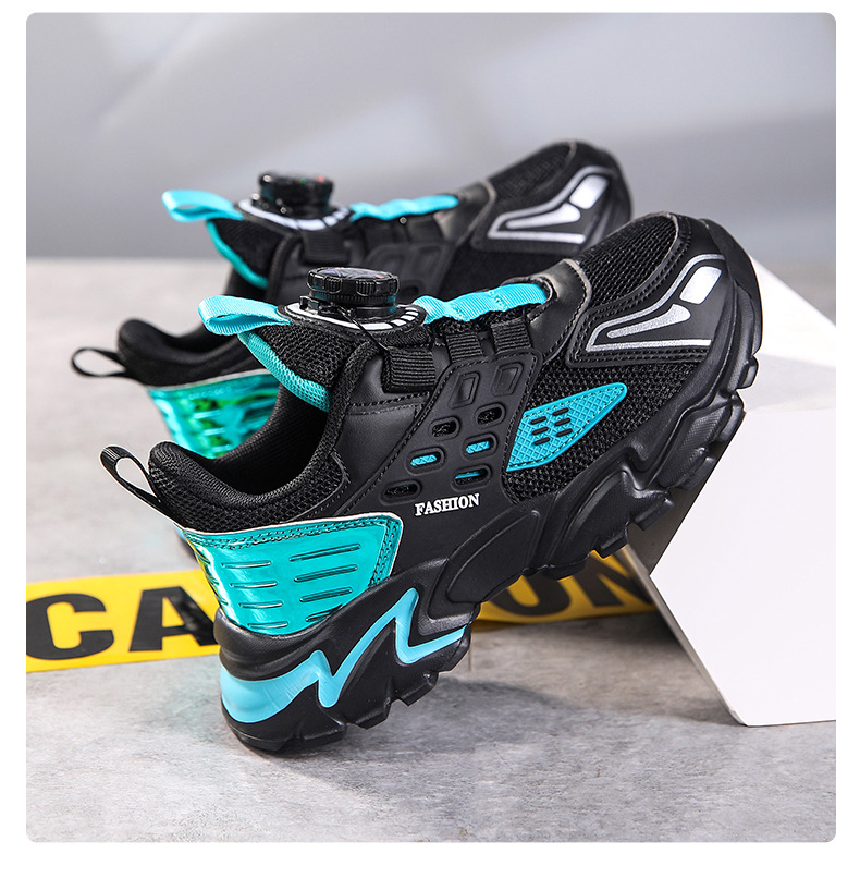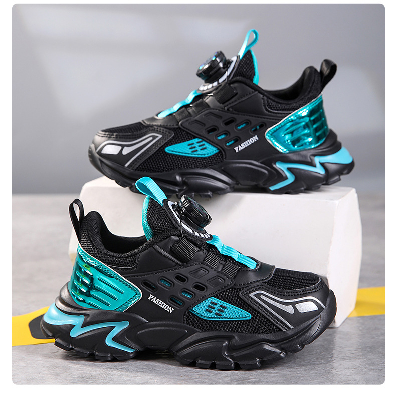 Zapatos respirables de malla para niños botones giratorios para niños al por mayor zapatos deportivos para niños 2024 primavera nuevos zapatos de papá