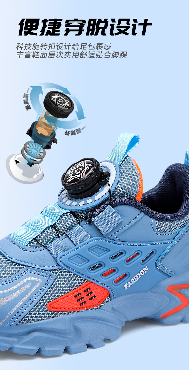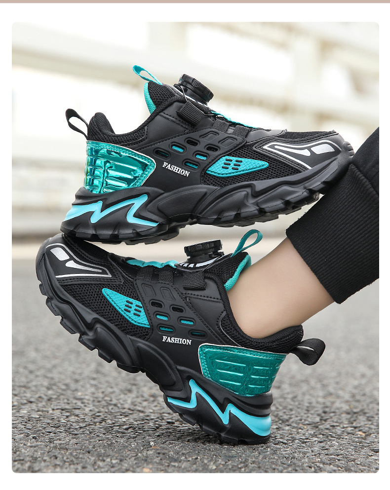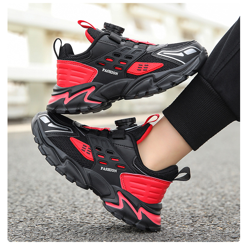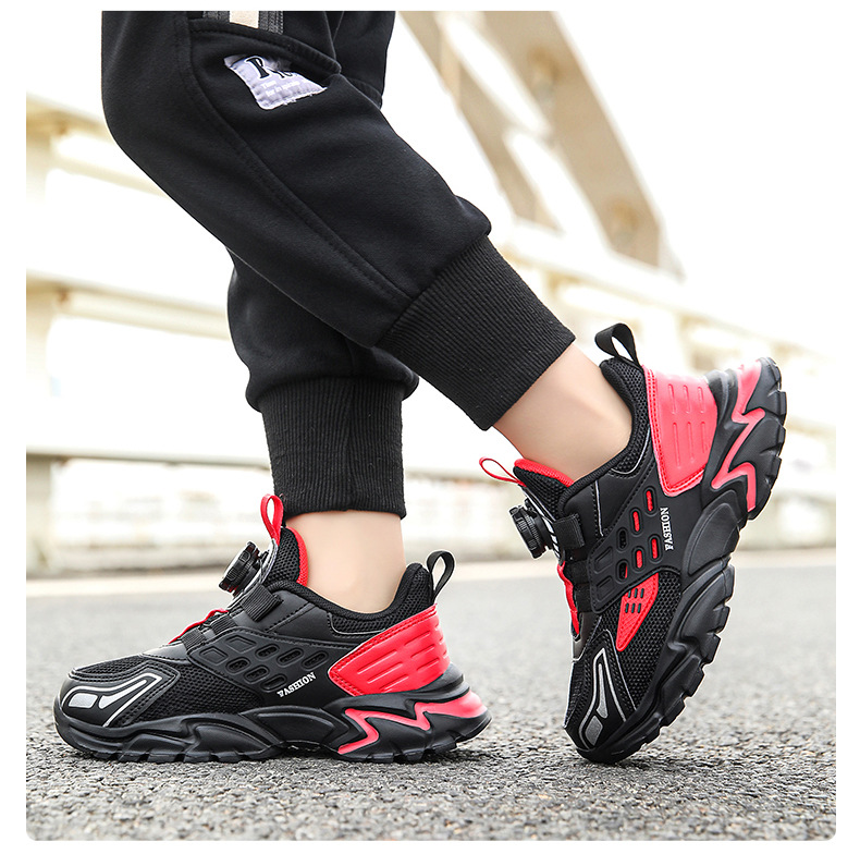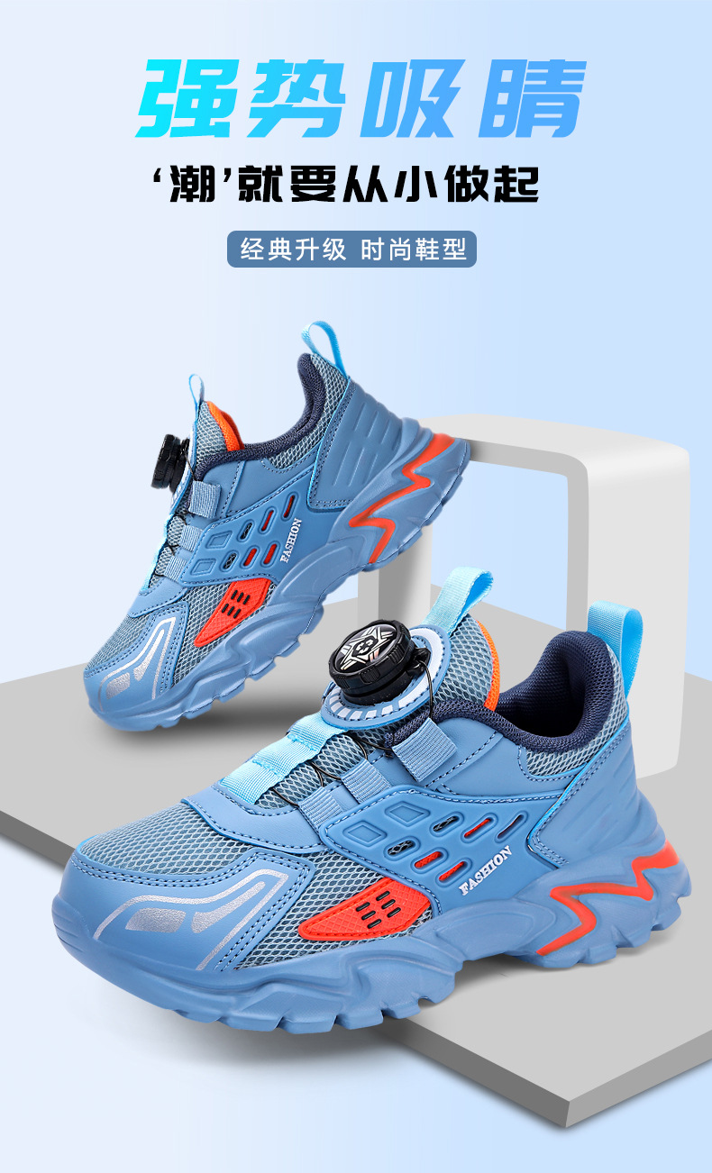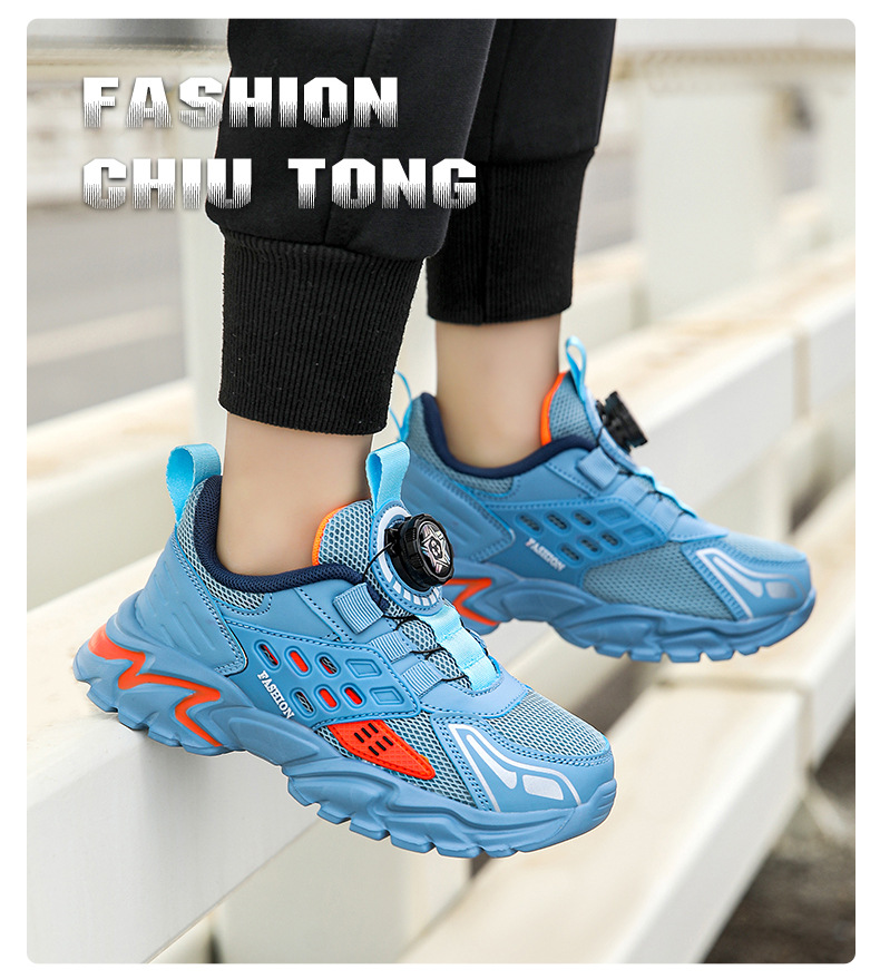 Zapatos respirables de malla para niños botones giratorios para niños al por mayor zapatos deportivos para niños 2024 primavera nuevos zapatos de papá