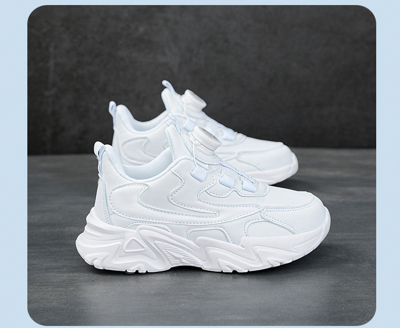 Estudiante de la escuela primaria zapatillas de deporte zapatos blancos de los niños blancos zapatillas de deporte casuales de las niñas zapatos blancos de cuero impermeable