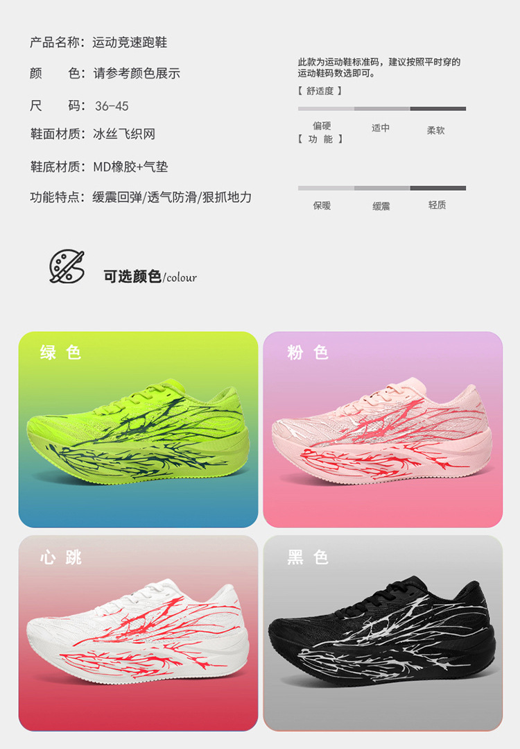 Transfronterizos ultraligeros transpirables amortiguadores zapatos de corrida elásticos para hombres y mujeres resistentes al desgaste antideslizante explosión zapatillas deportivas de placa de carbono