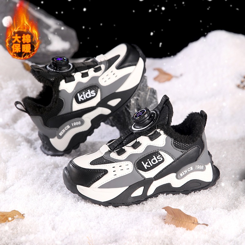 Zapatos deportivos para niños, zapatos de algodón calientes para niños, nuevos zapatos de botón de cuero para niñas, otoño y invierno