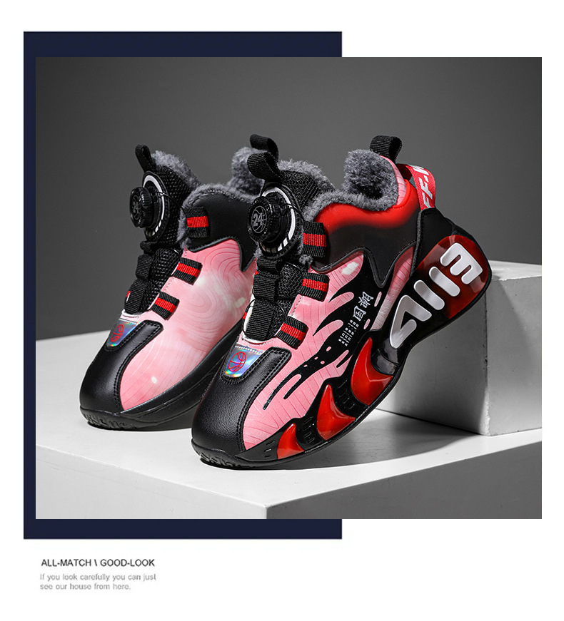 Zapatos infantiles para niños zapatos deportivos de invierno nuevos zapatos de algodón para niños zapatos de baloncesto rojos