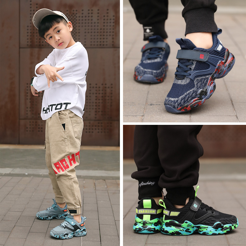 Transfronterizos niños respirables zapatos de correr casuales zapatos deportivos de tela baja para niños al aire libre zapatos de baloncesto para niños