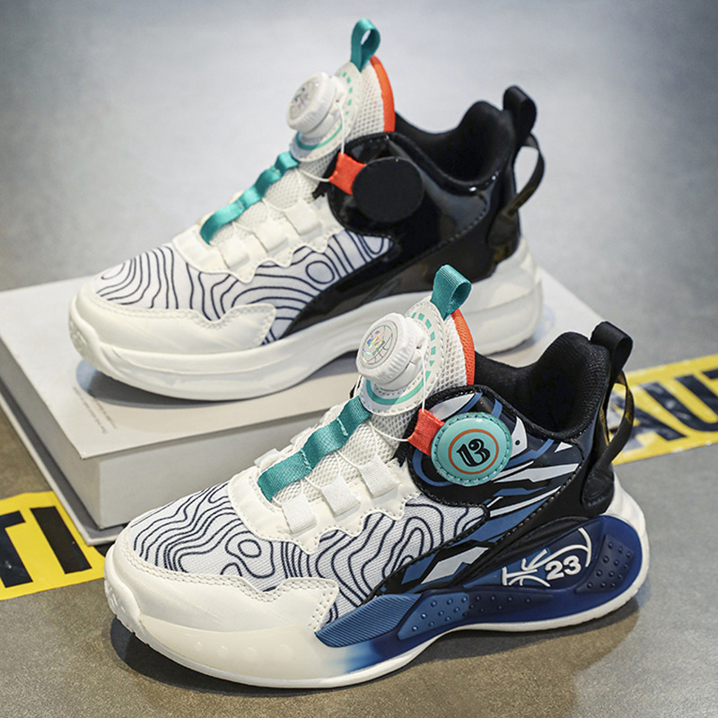 Zapatillas para niños, malla, transpirable, nuevas zapatillas de baloncesto con botones de verano 2025, moda para estudiantes, zapatos para niños de mediana edad