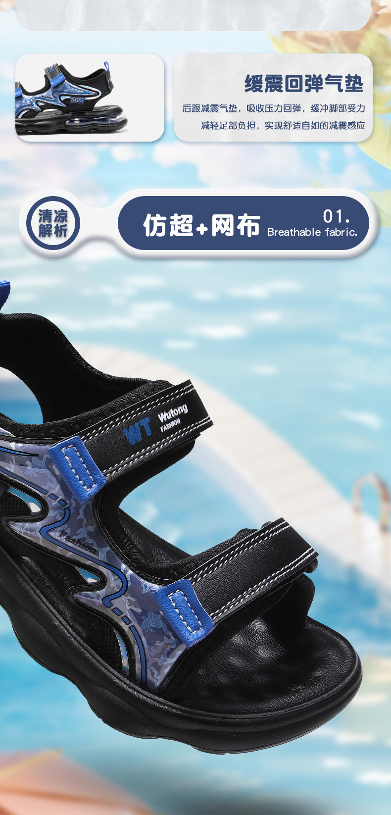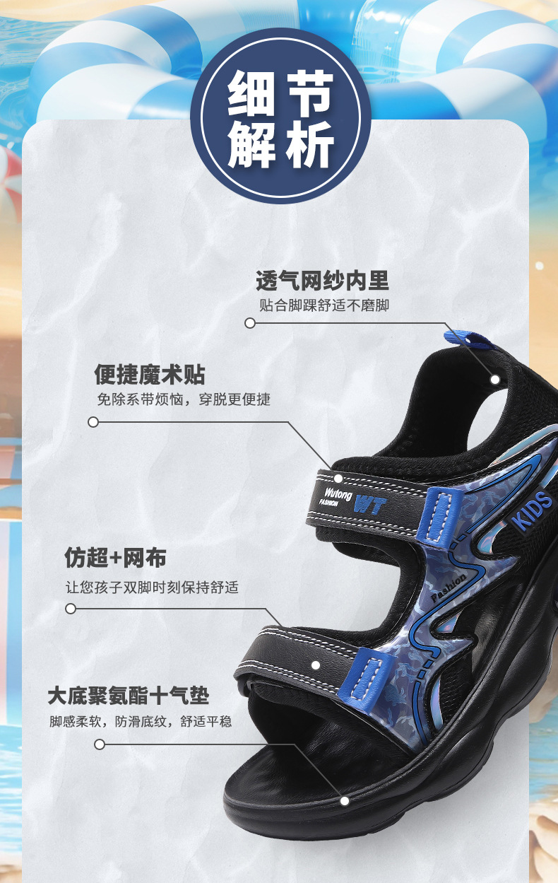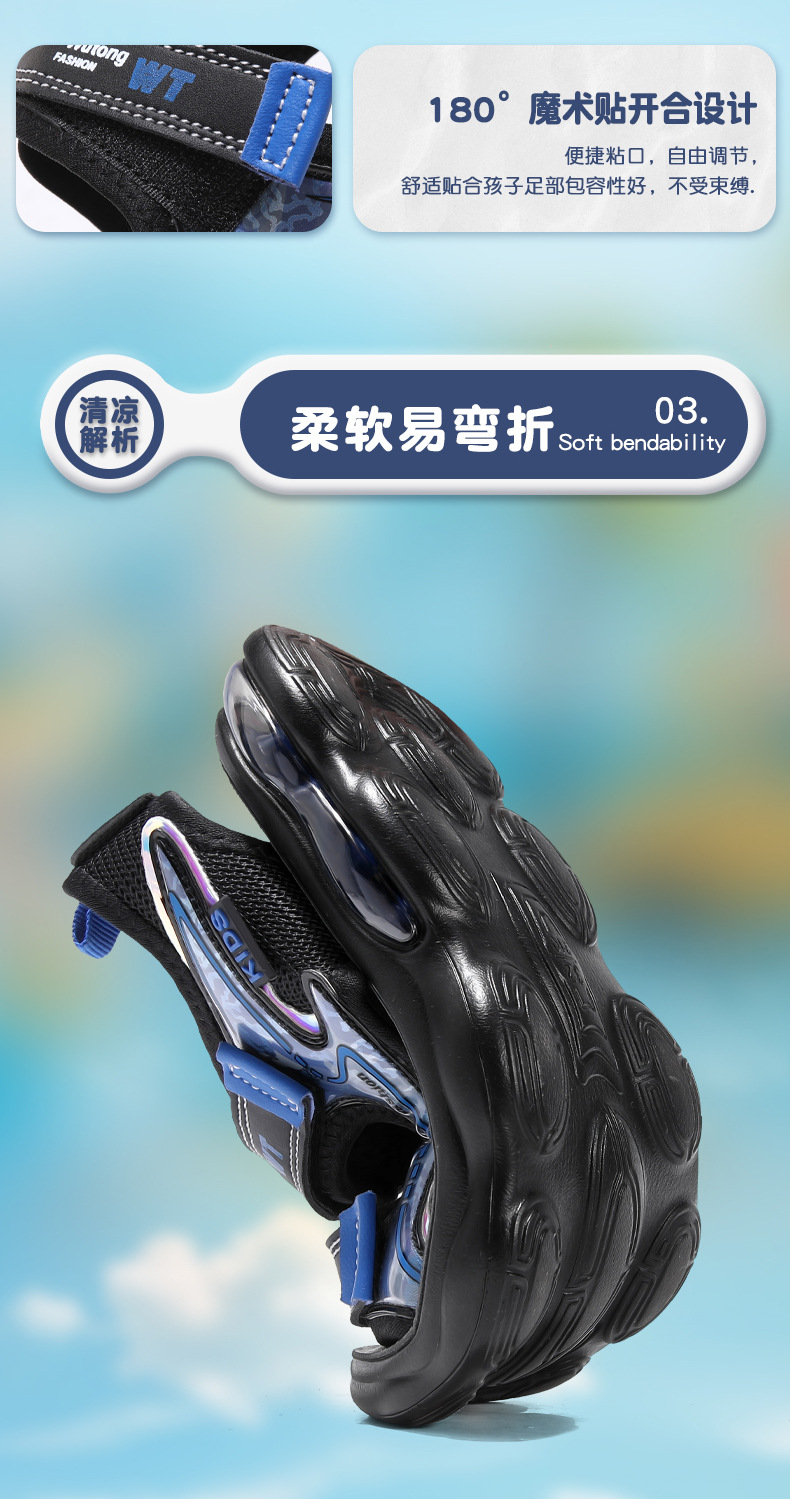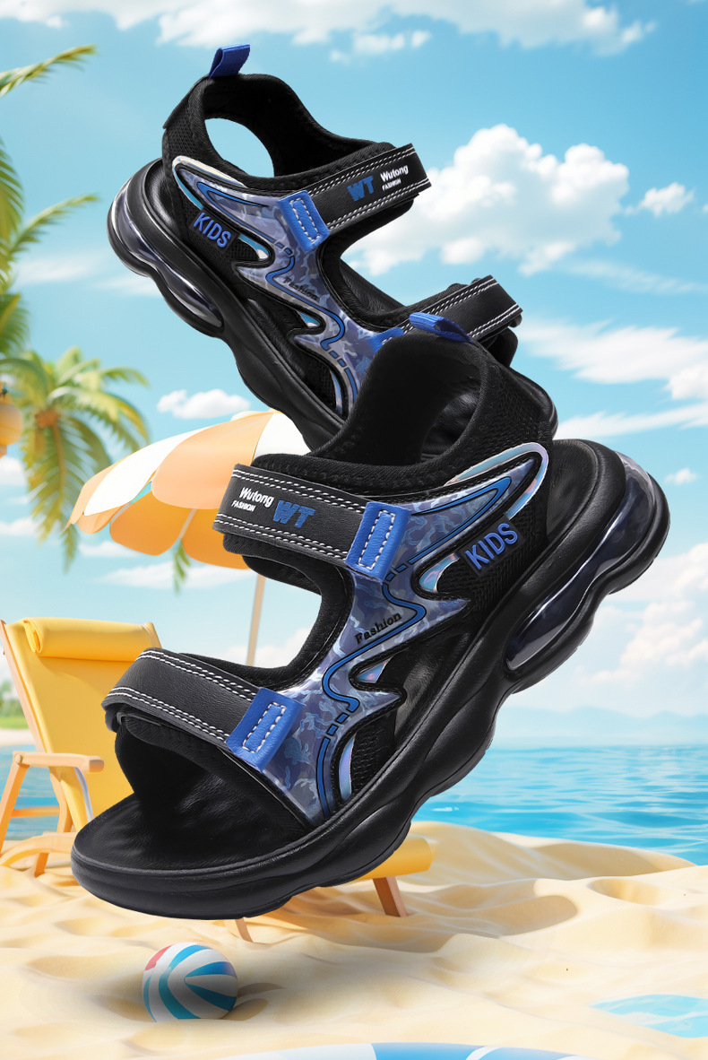 Sandalias para niños con punta abierta 2025 verano nuevos zapatos de playa para niños sandalias deportivas para niños de mediana edad cojín de aire para niños transfronterizo