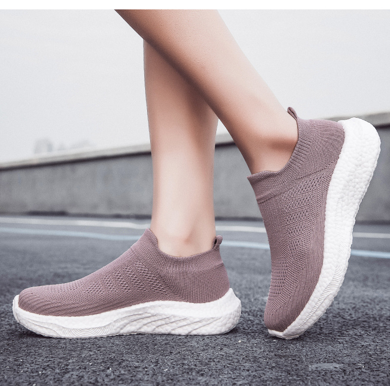 Zapatos para caminar para hombres y mujeres, zapatillas de deporte de un solo pie, calcetines casuales de verano para hombres, zapatos de tejido con suela de palomitas de maíz de tendencia transpirable