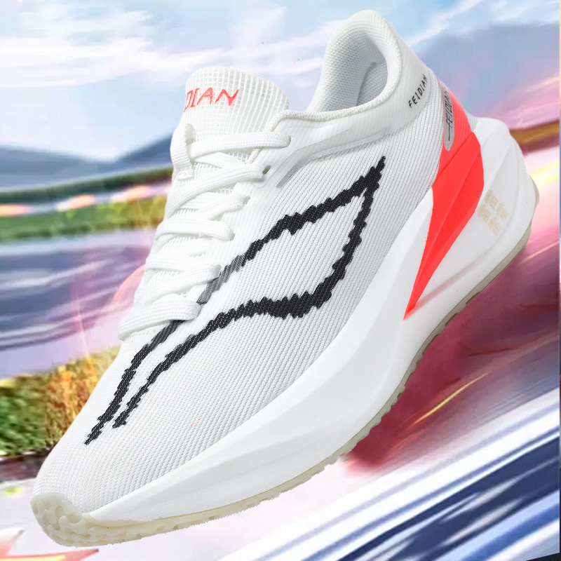 Flying electricidad 5c hombres y mujeres de alta calidad al aire libre ventilado placa de carbono de malla de soporte de conejo rojo zapatos deportivos ociosos para correr zapatos