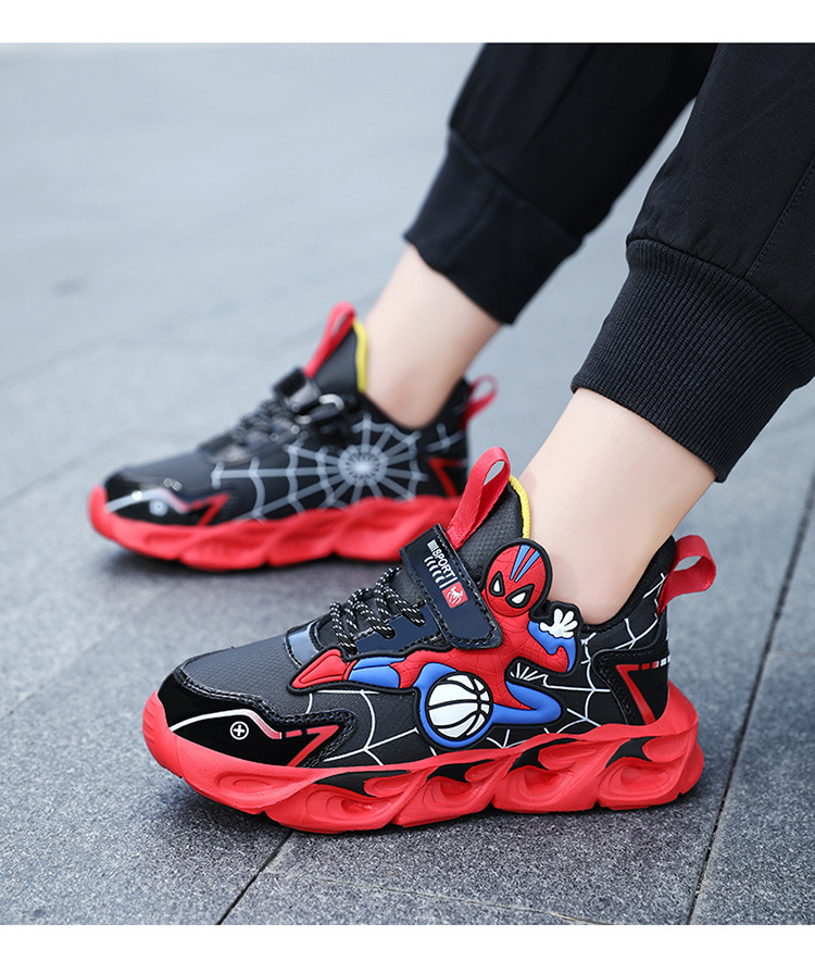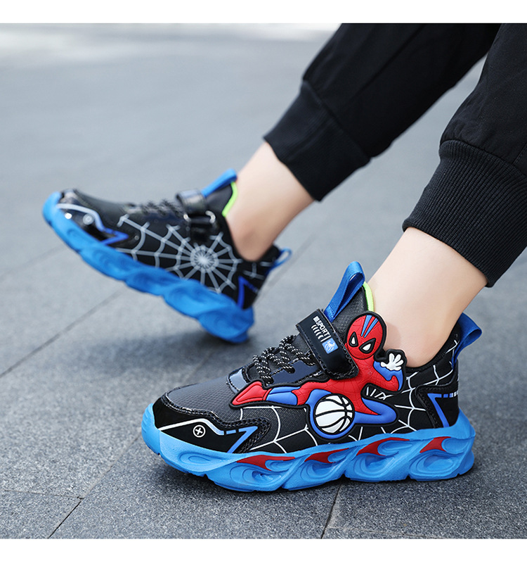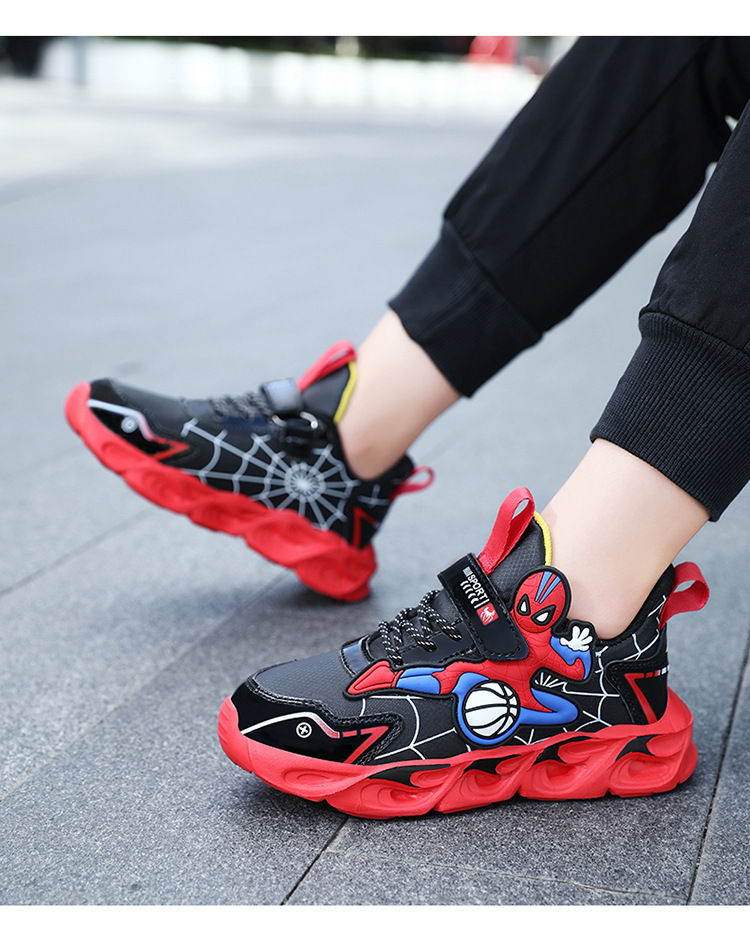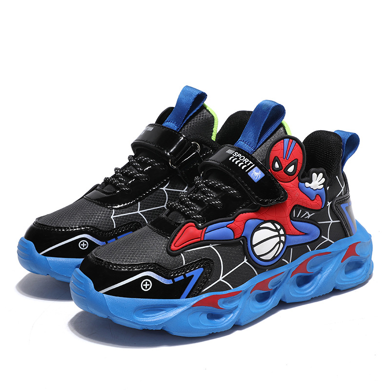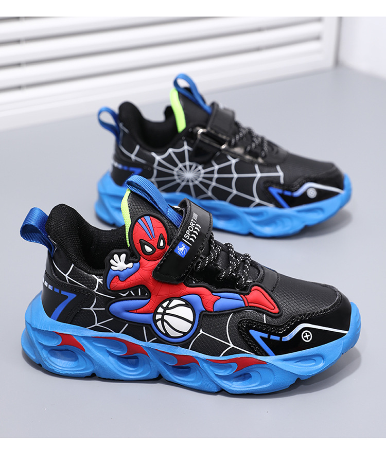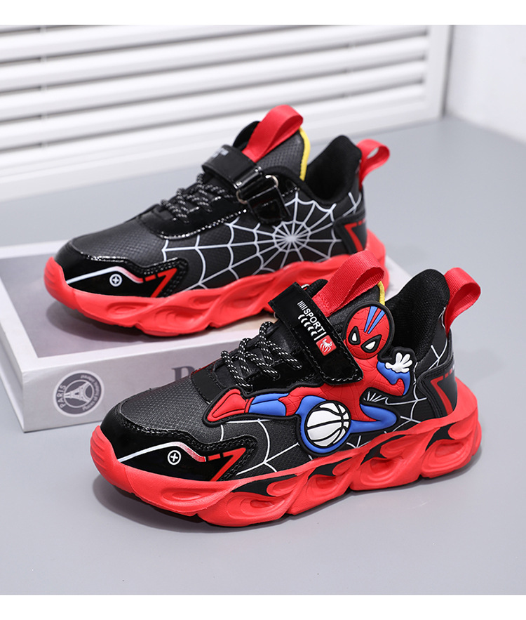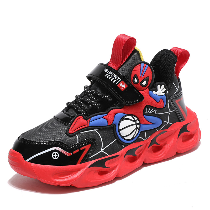 Zapatos para niños con lámparas Spider-Man 2025 zapatos deportivos de otoño de cuero antideslizante zapatos de correr ligeros para niños