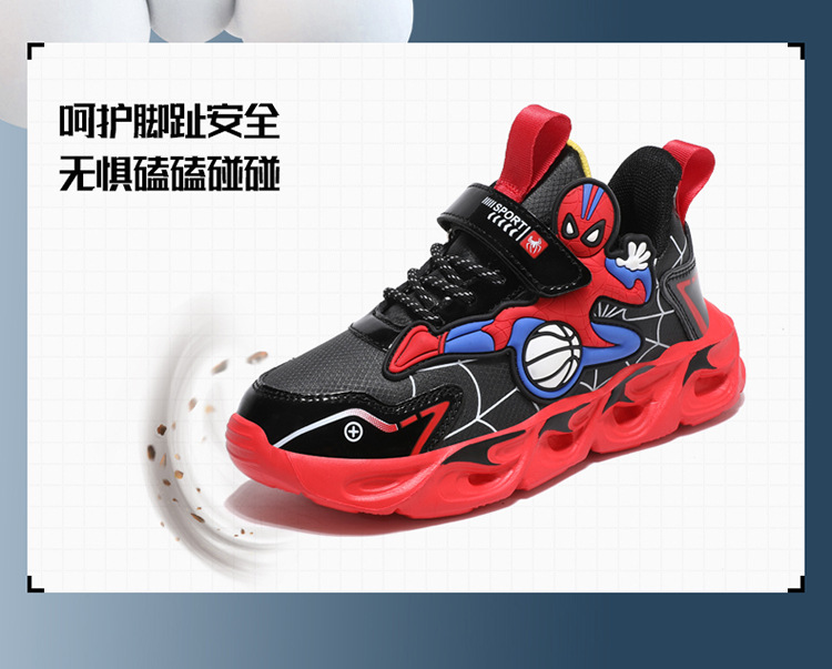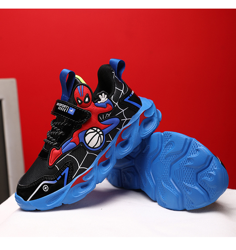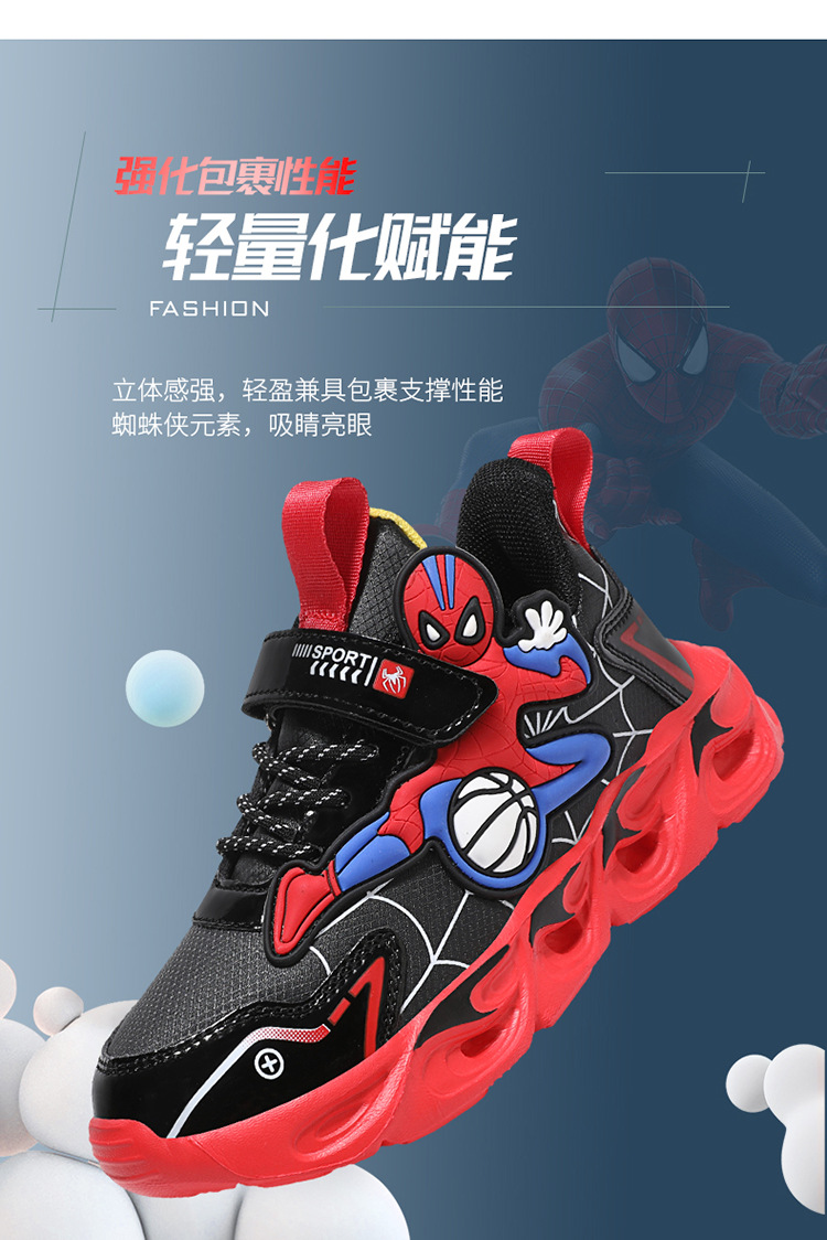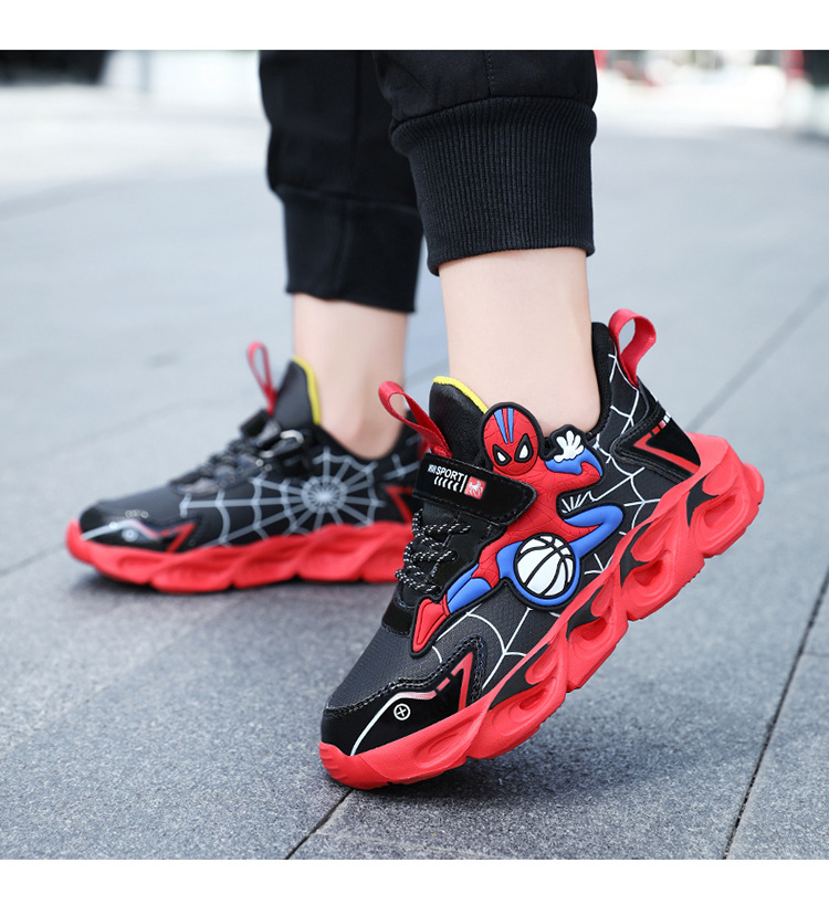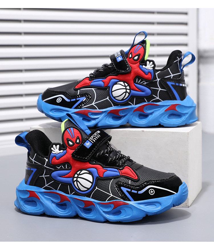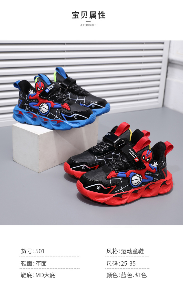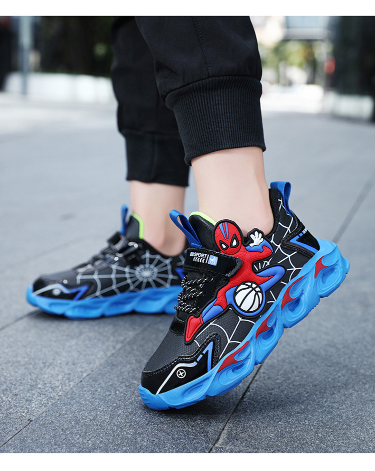 Zapatos para niños con lámparas Spider-Man 2025 zapatos deportivos de otoño de cuero antideslizante zapatos de correr ligeros para niños