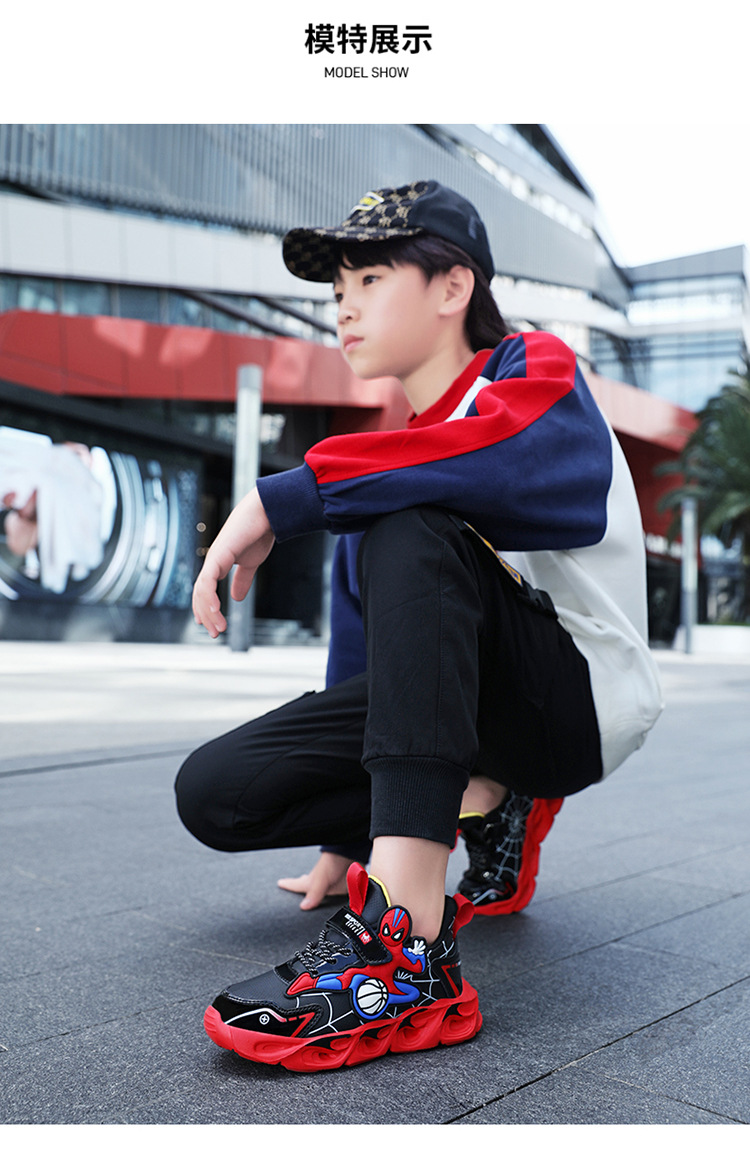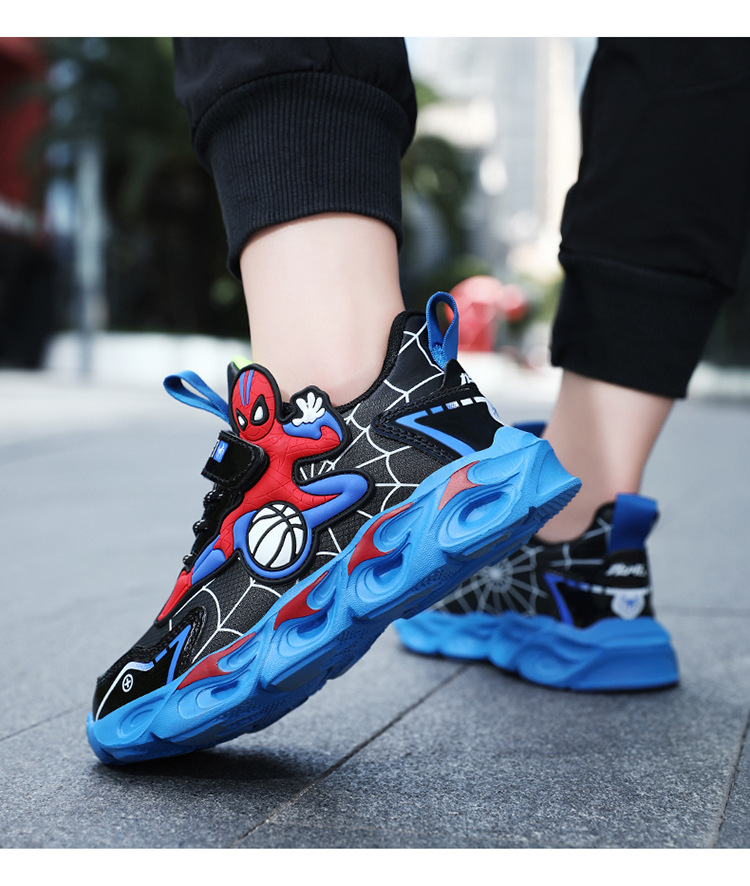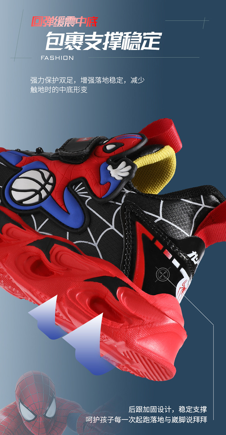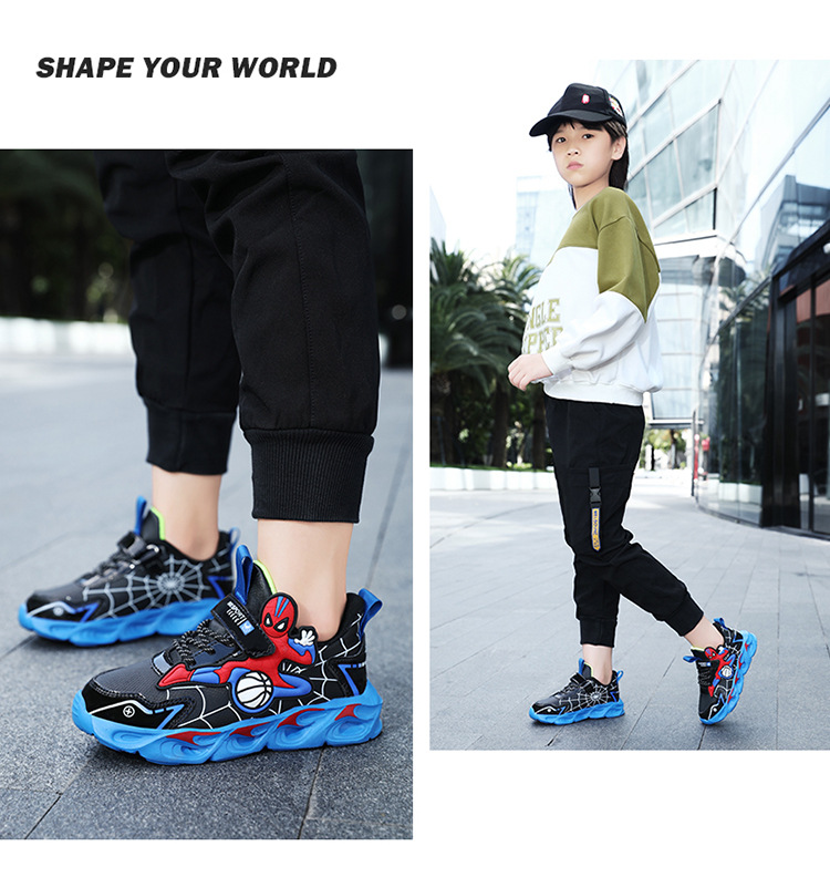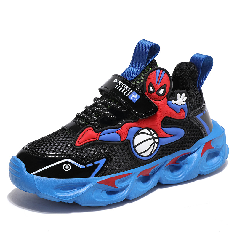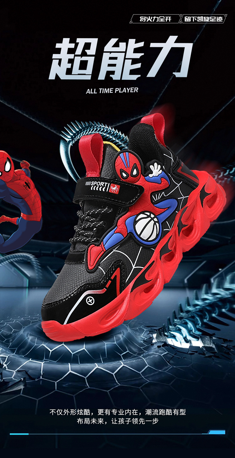 Zapatos para niños con lámparas Spider-Man 2025 zapatos deportivos de otoño de cuero antideslizante zapatos de correr ligeros para niños