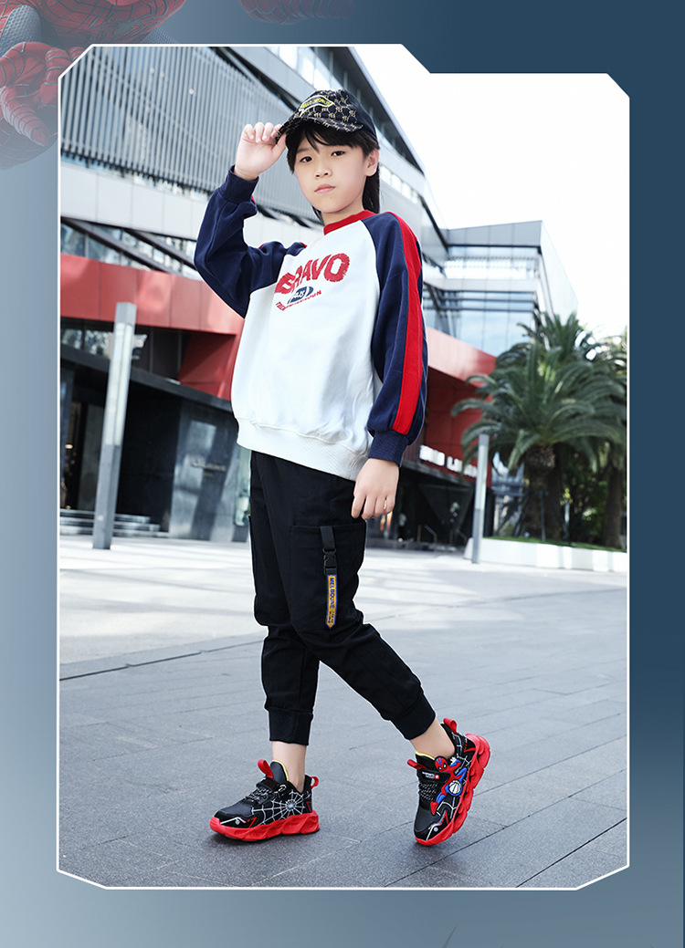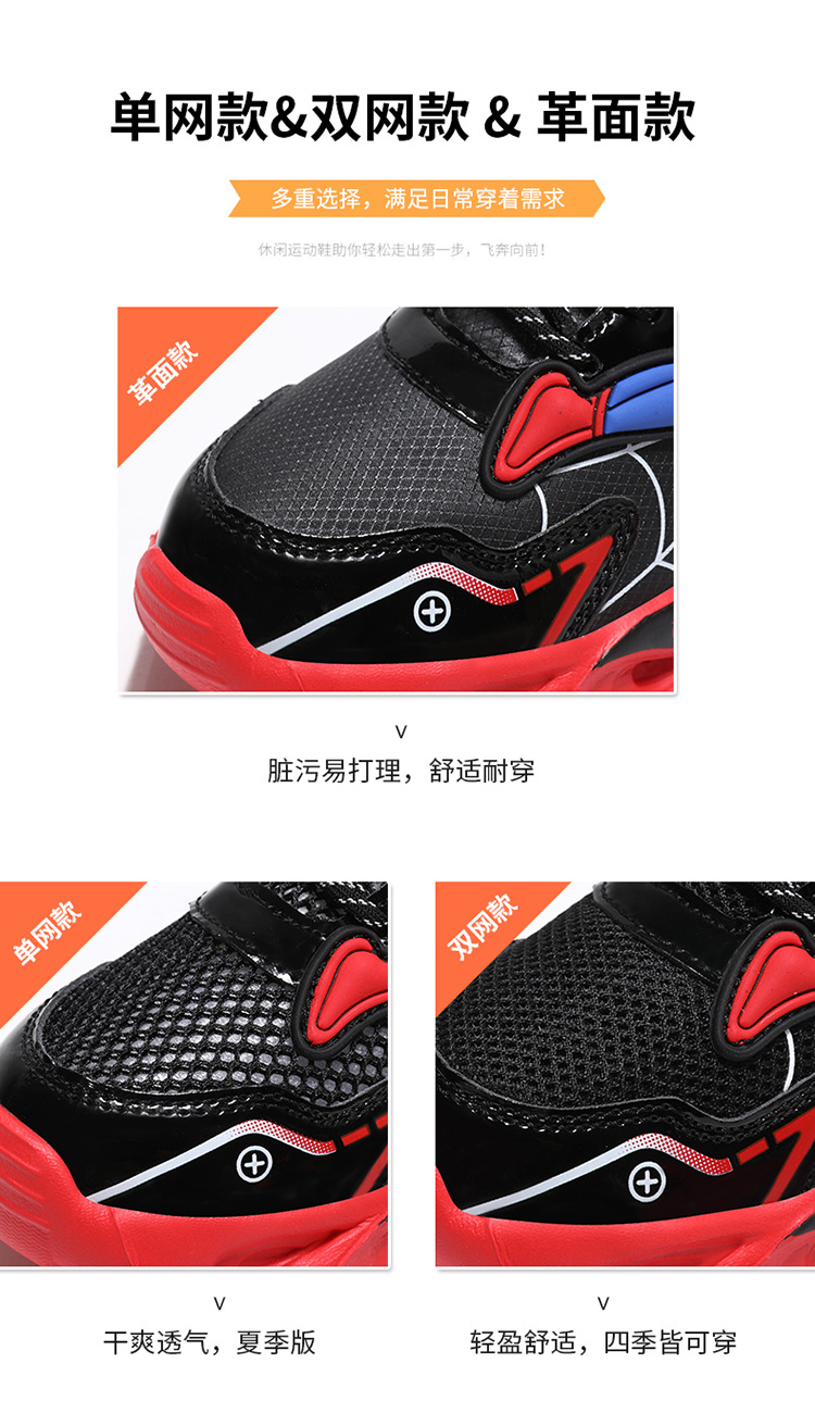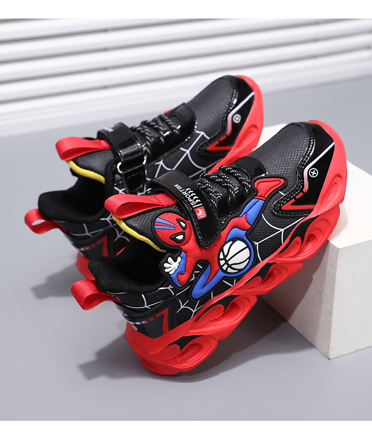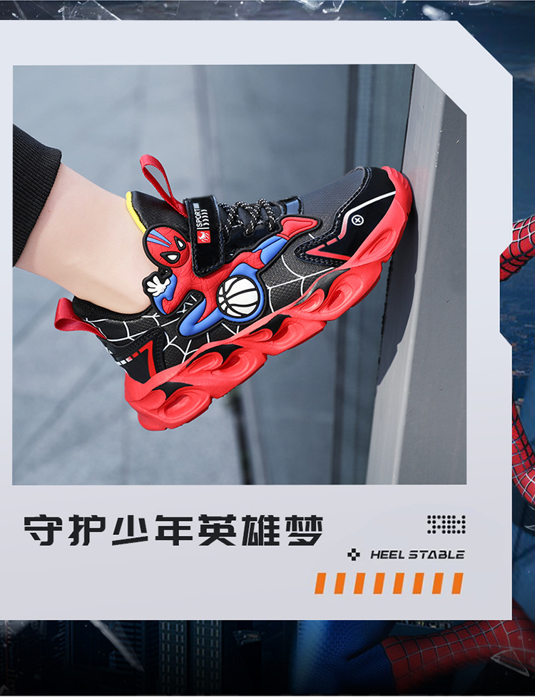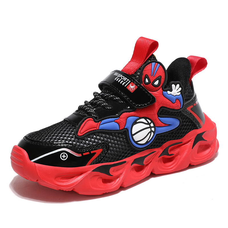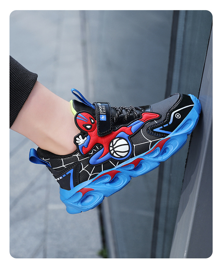 Zapatos para niños con lámparas Spider-Man 2025 zapatos deportivos de otoño de cuero antideslizante zapatos de correr ligeros para niños