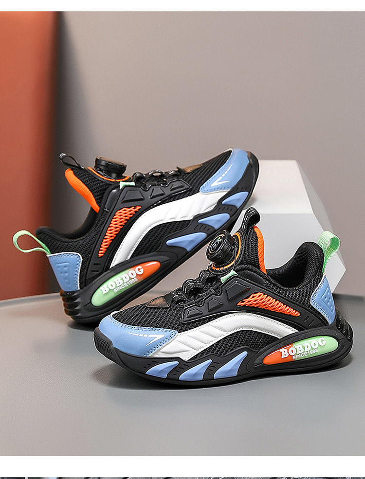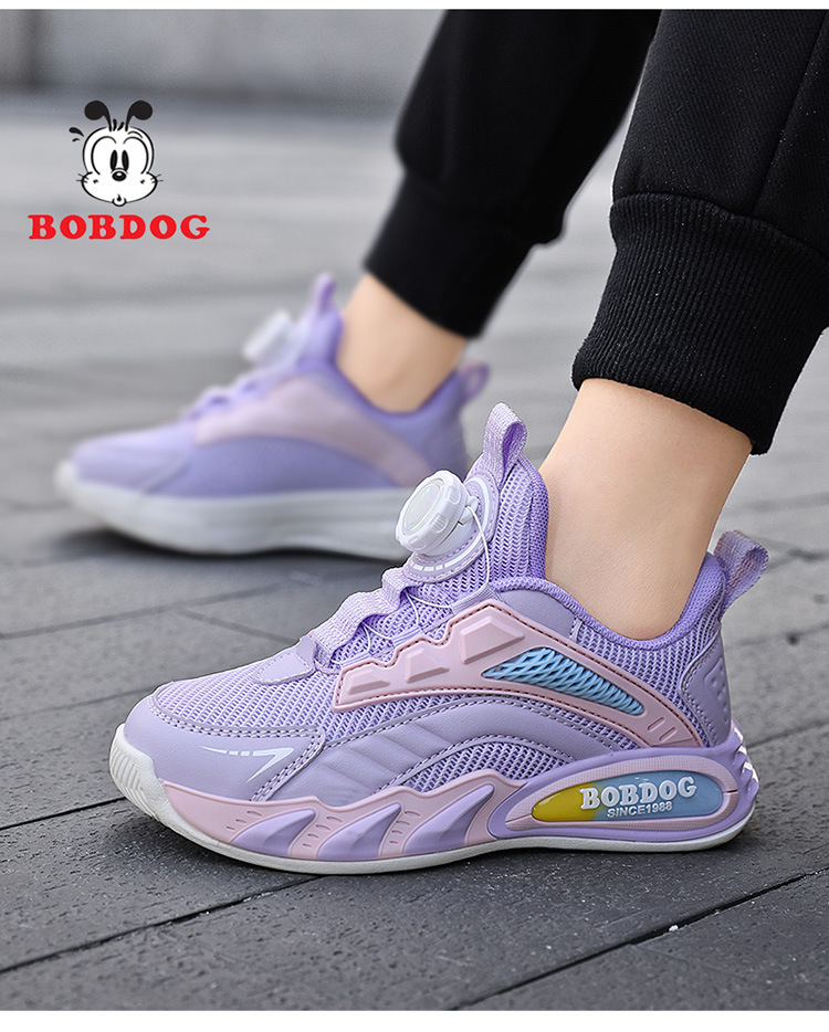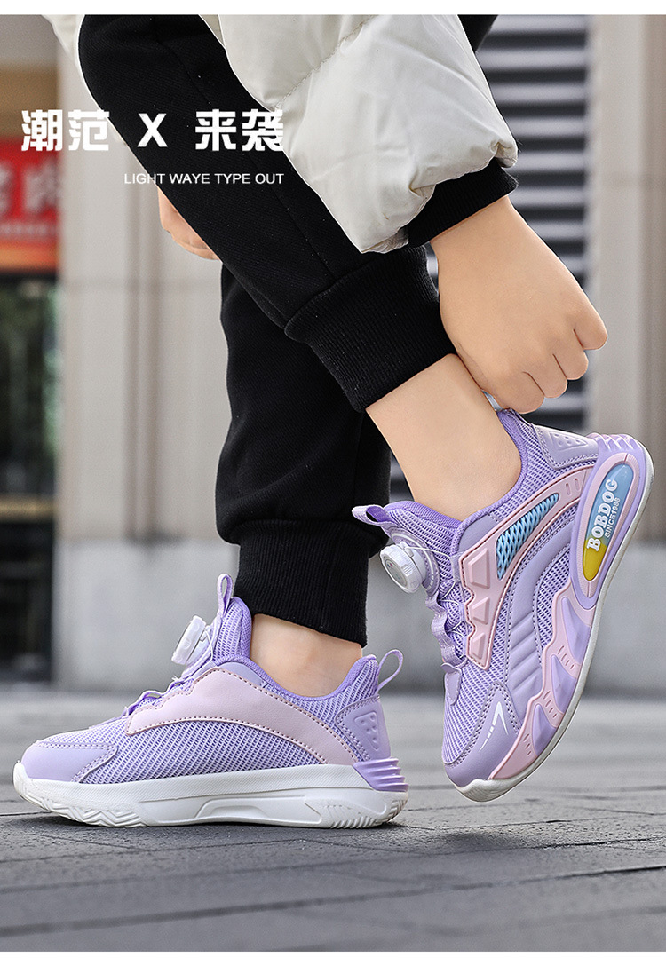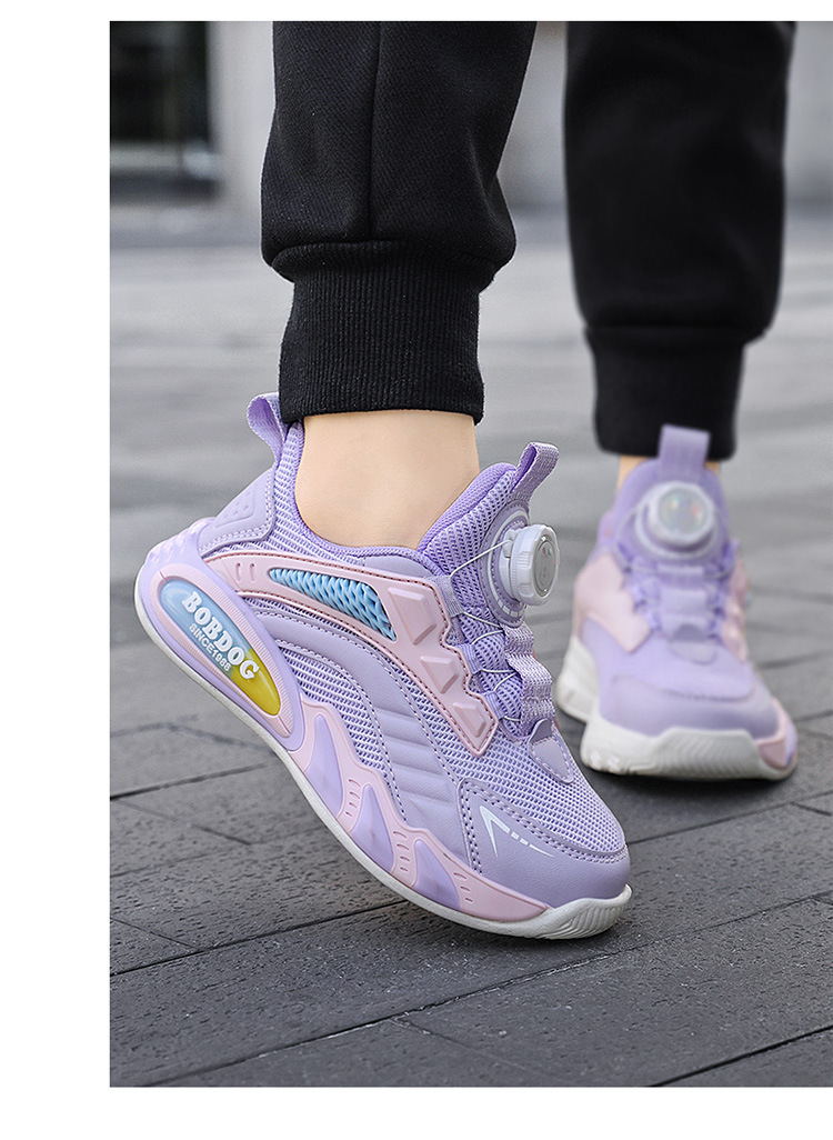 Zapatos de primavera y otoño para niñas, zapatos de malla transpirables para niños, botón giratorio, zapatos de baloncesto para niños.