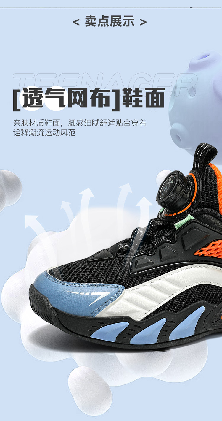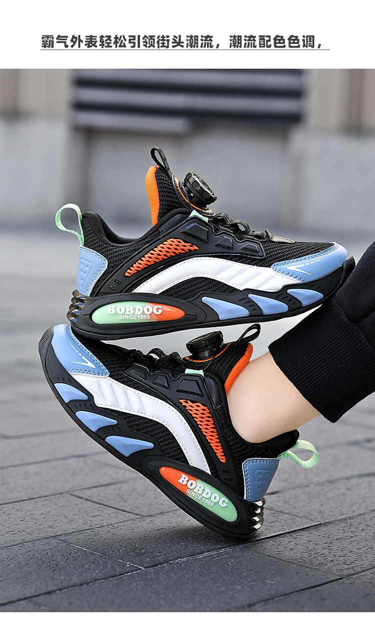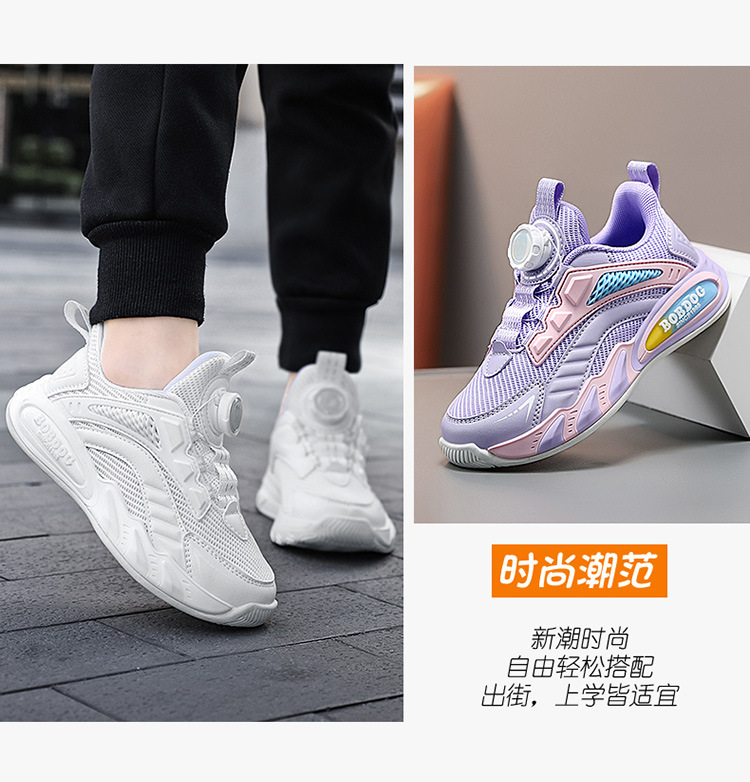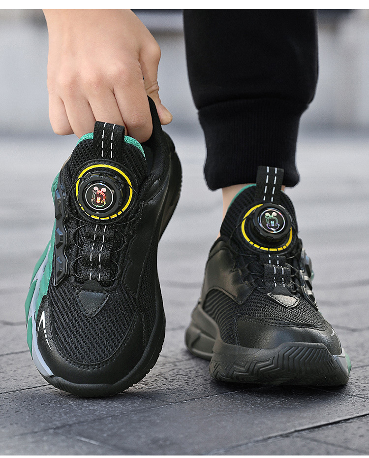 Zapatos de primavera y otoño para niñas, zapatos de malla transpirables para niños, botón giratorio, zapatos de baloncesto para niños.