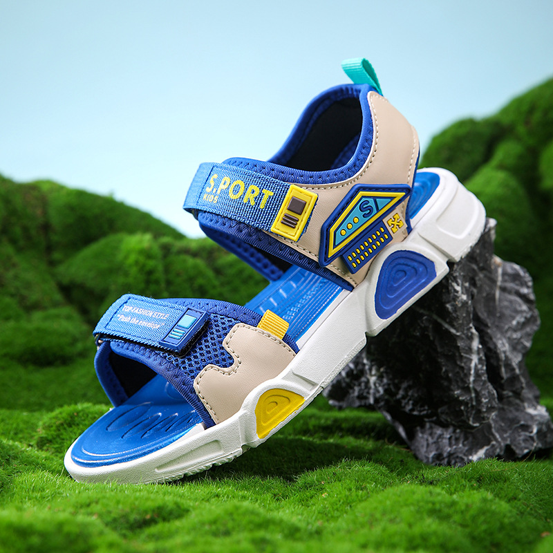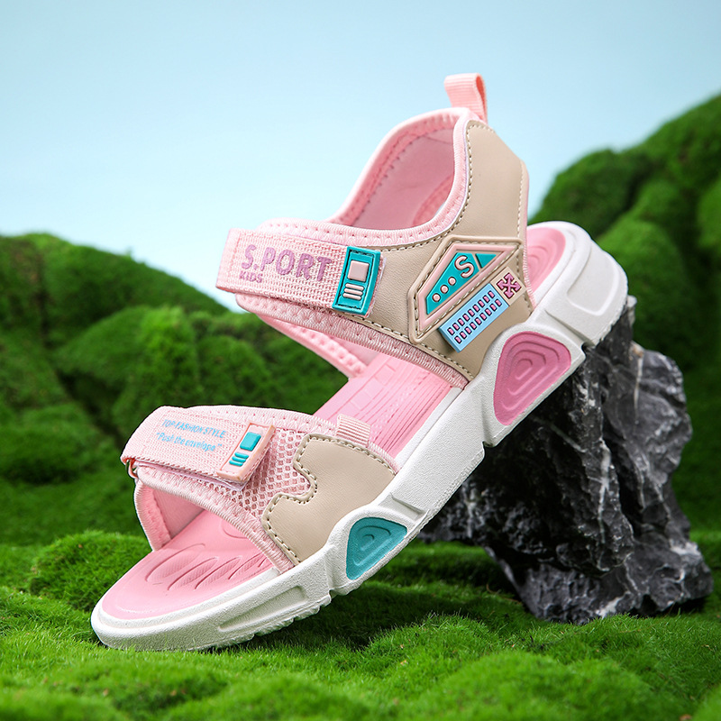 Nuevas sandalias de dedos abiertos para niños, zapatillas antideslizantes suaves para niños, zapatos de playa para niños, azul rosa