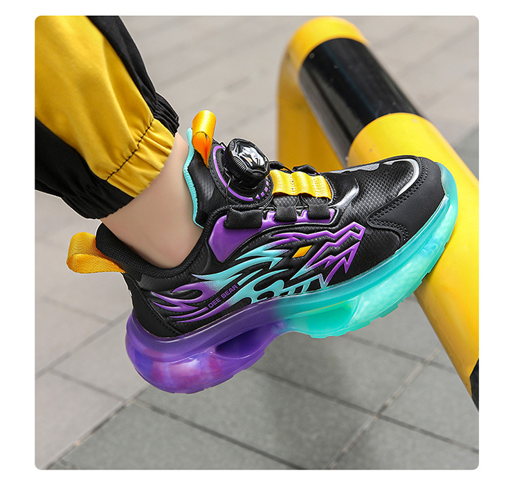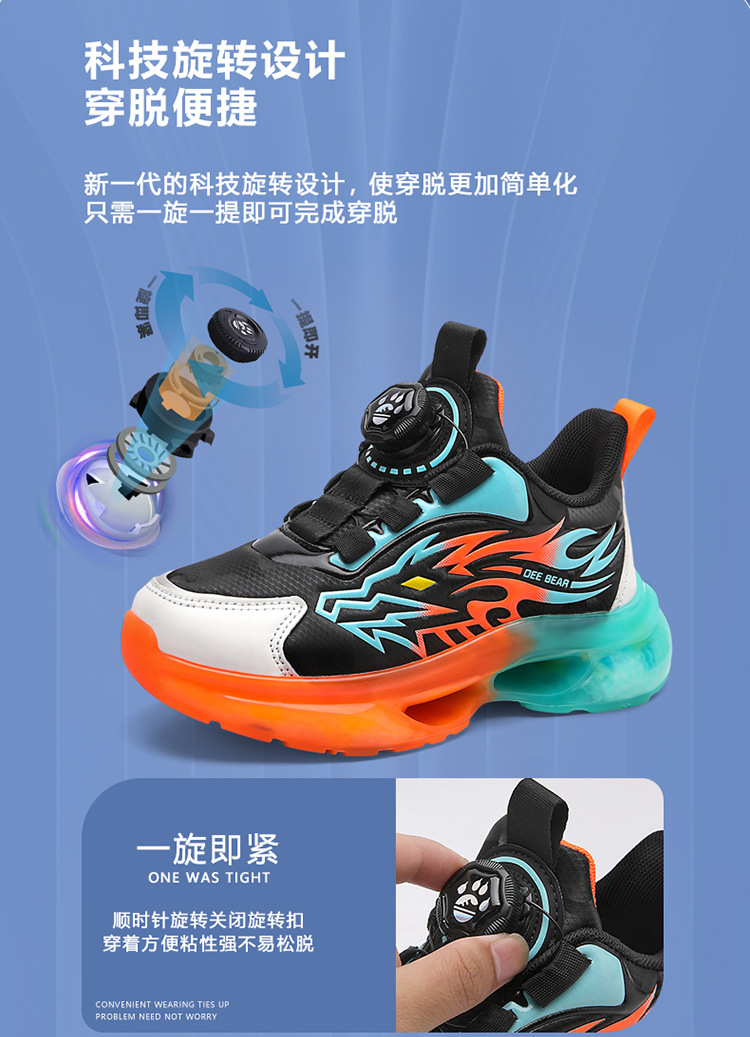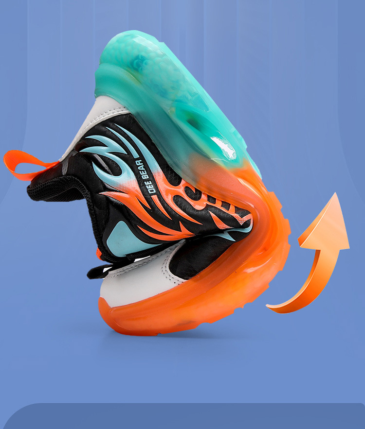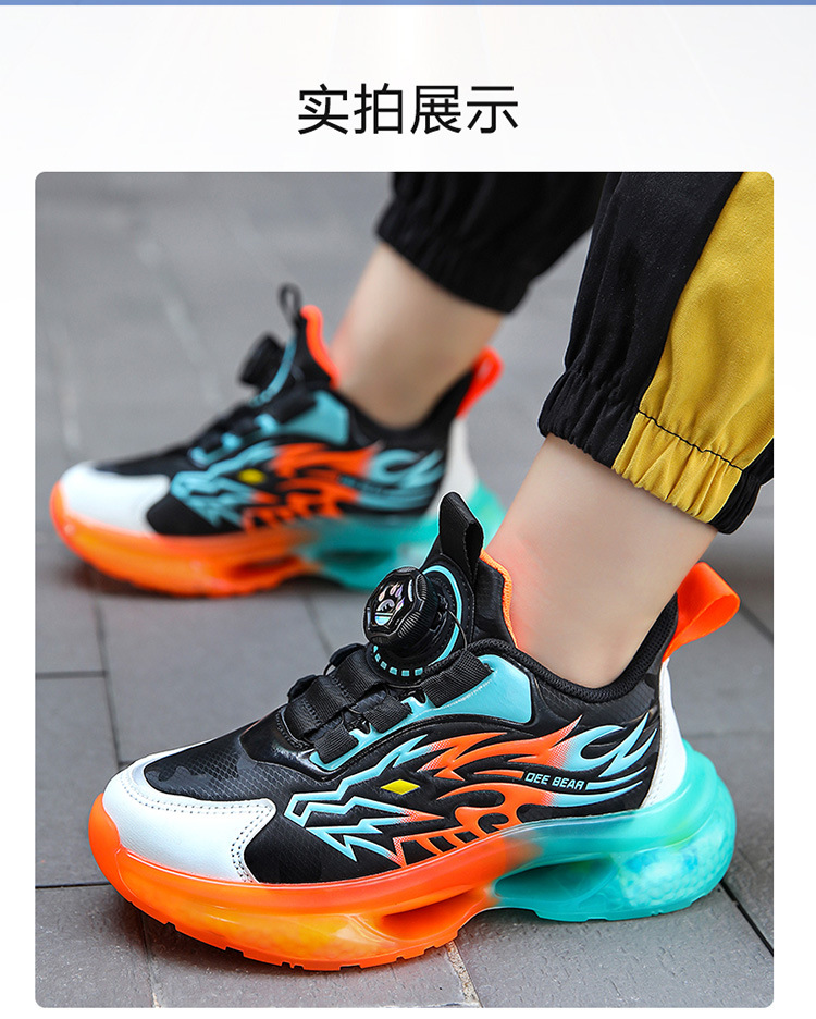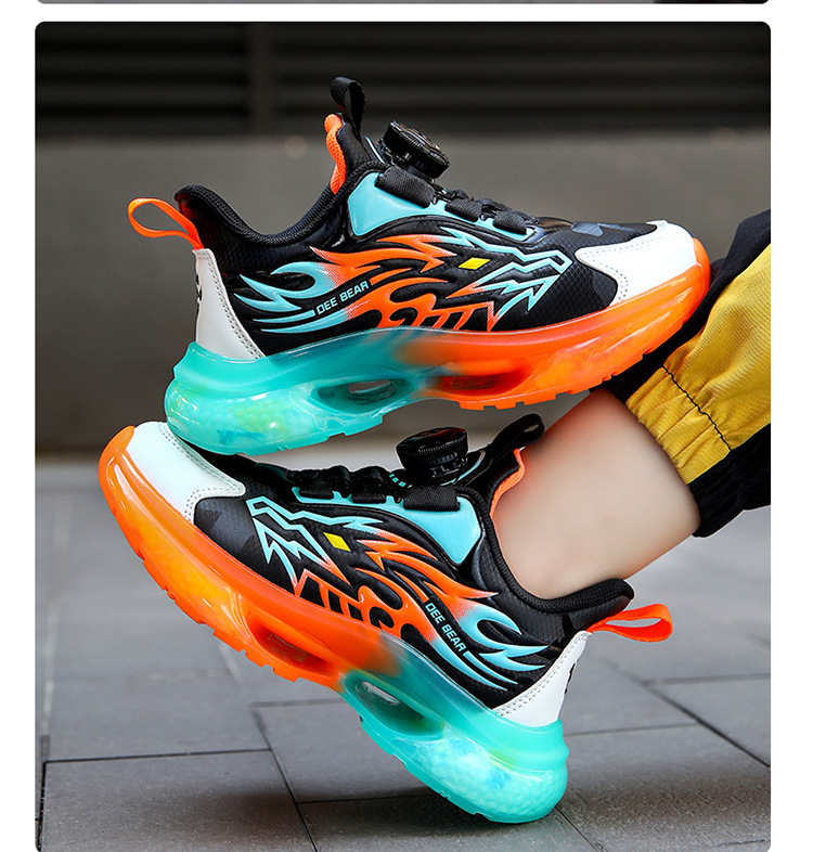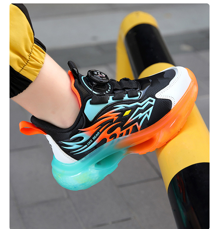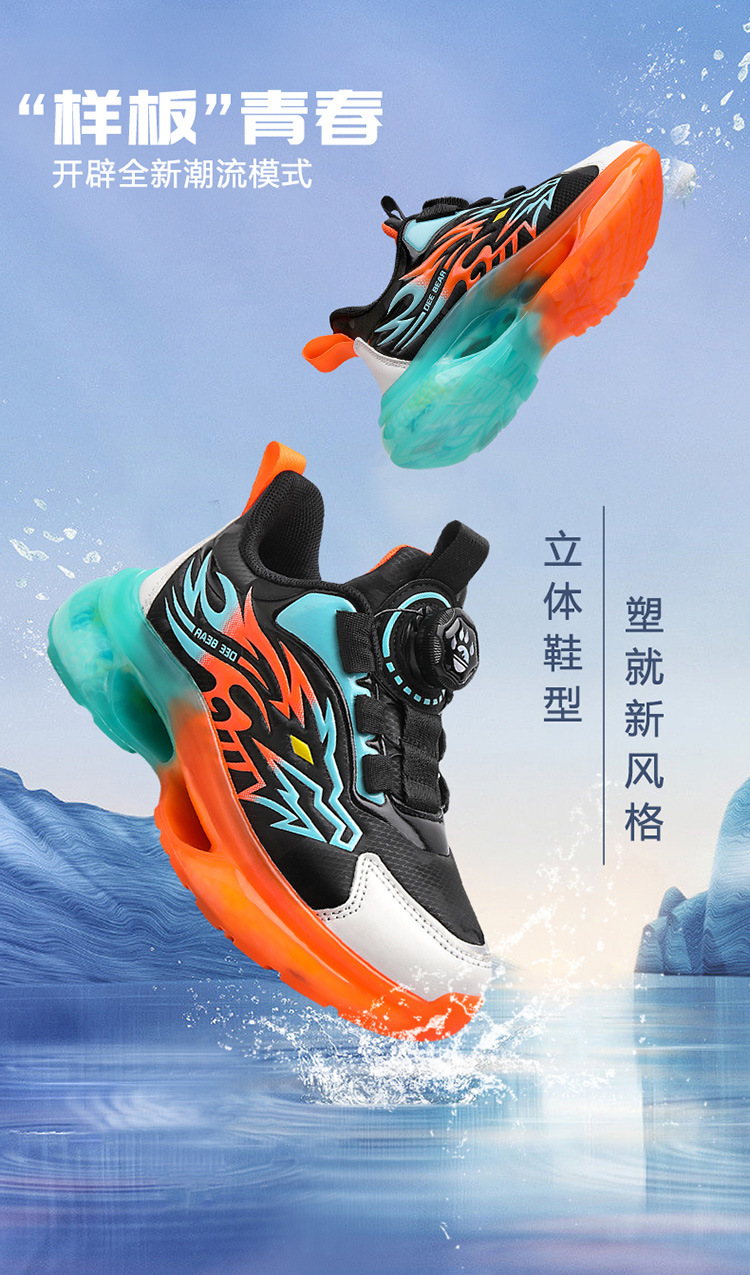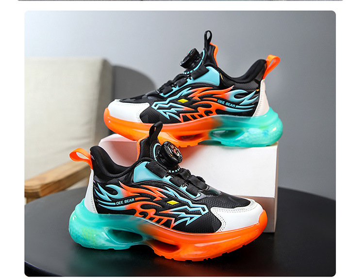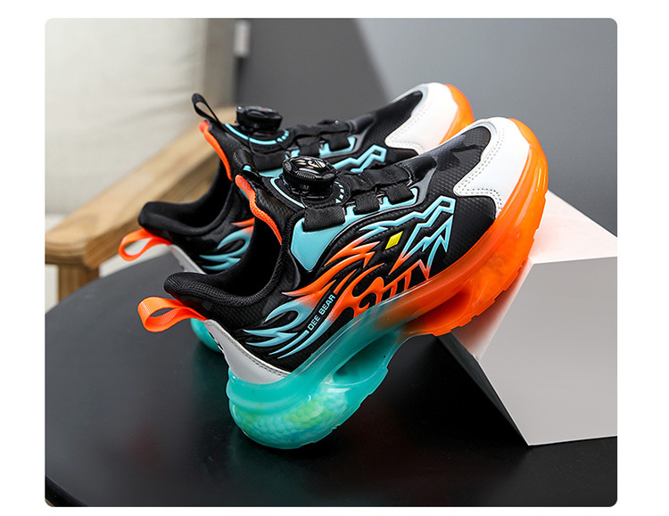 Zapatos de niños al por mayor zapatos deportivos de niños otoño nuevos botones de botón de cuero zapatos casuales zapatos de correr de niños naranja negra