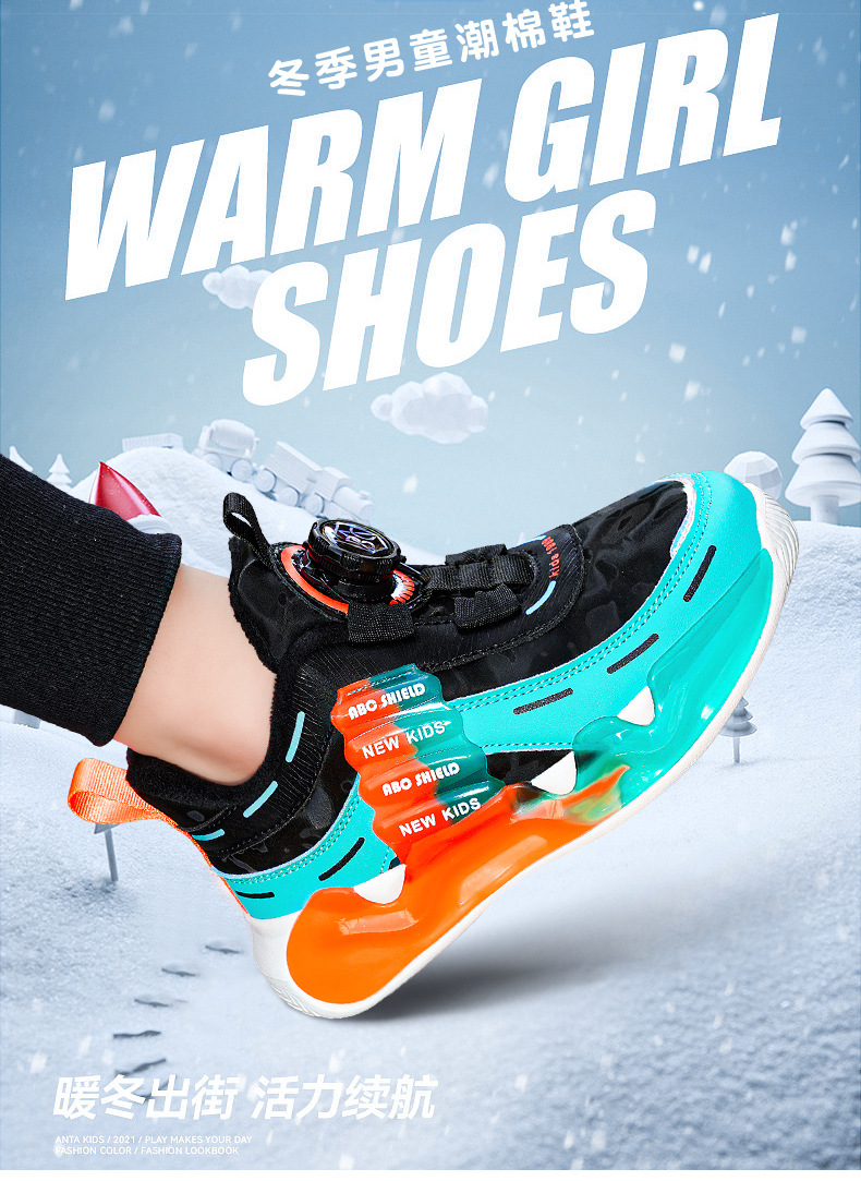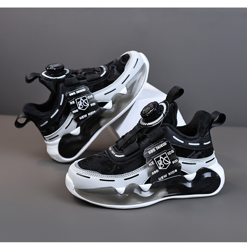 Zapatos de algodón, dos zapatos deportivos de invierno cálidos de algodón, zapatos de papá con hebilla giratoria para hombres, nuevos niños grandes 2024 niñas y niños más terciopelo