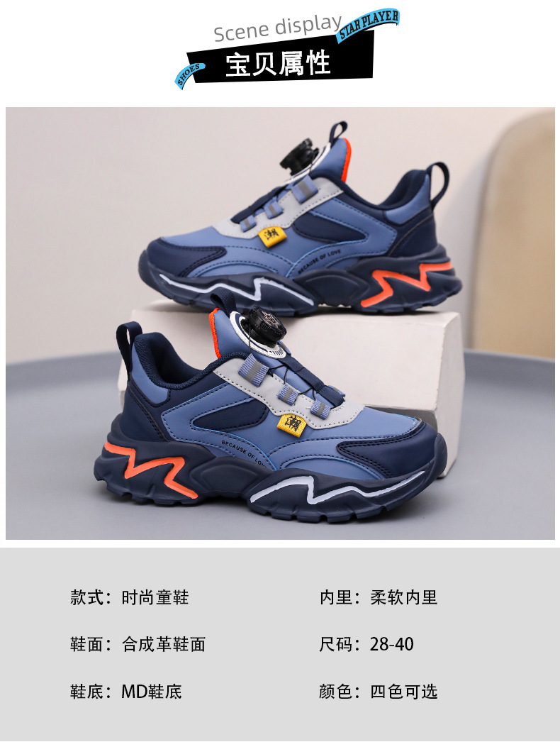 Zapatos infantiles para niños zapatos deportivos primavera y otoño nuevos zapatos de botón impermeable de cuero para niños zapatos de papá mayorista