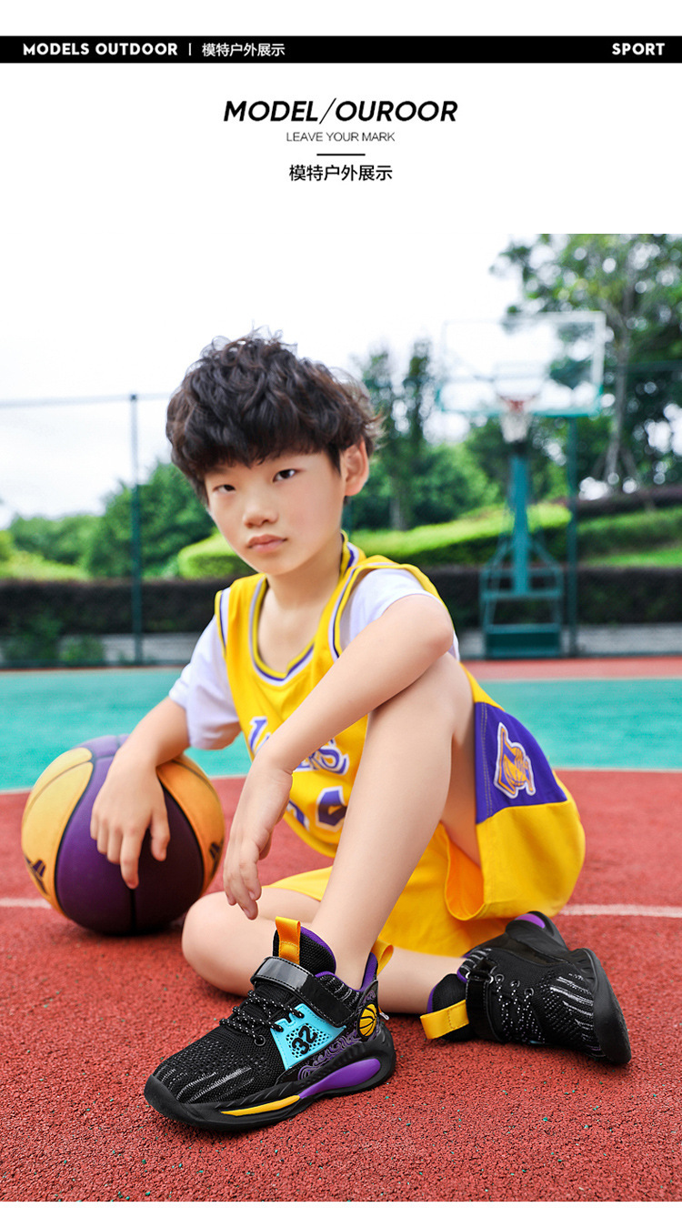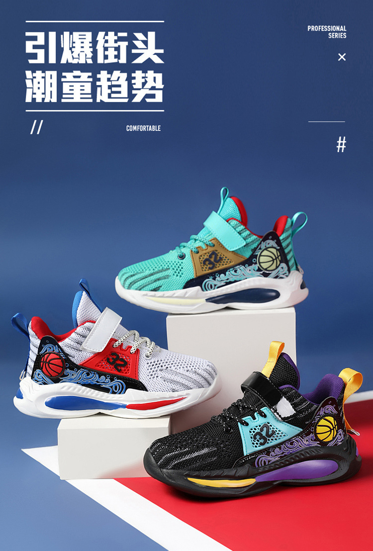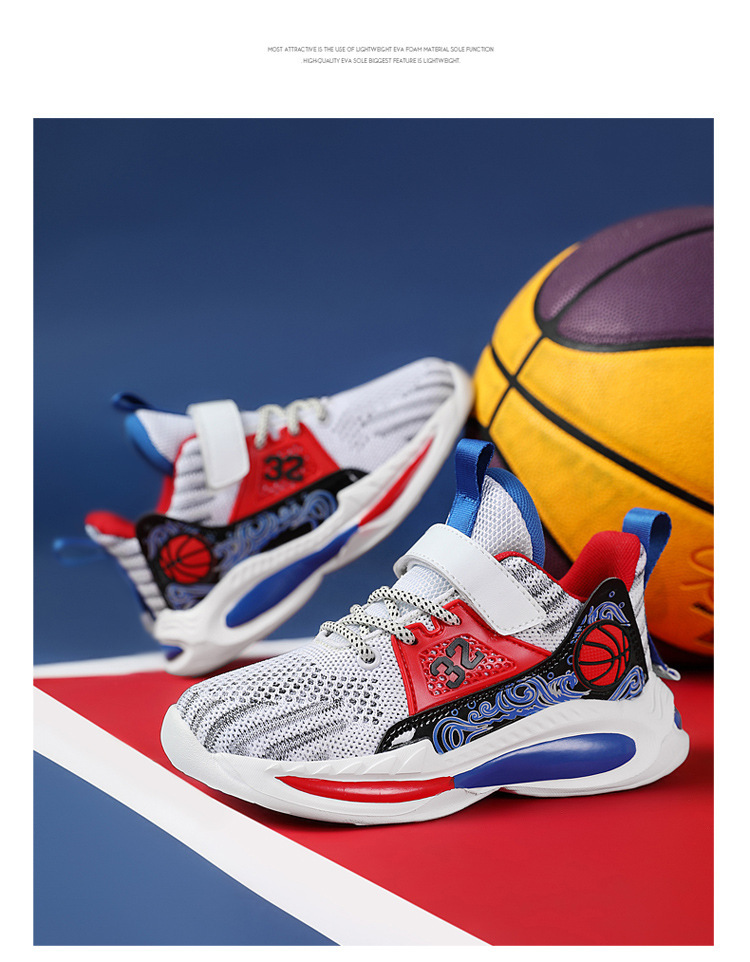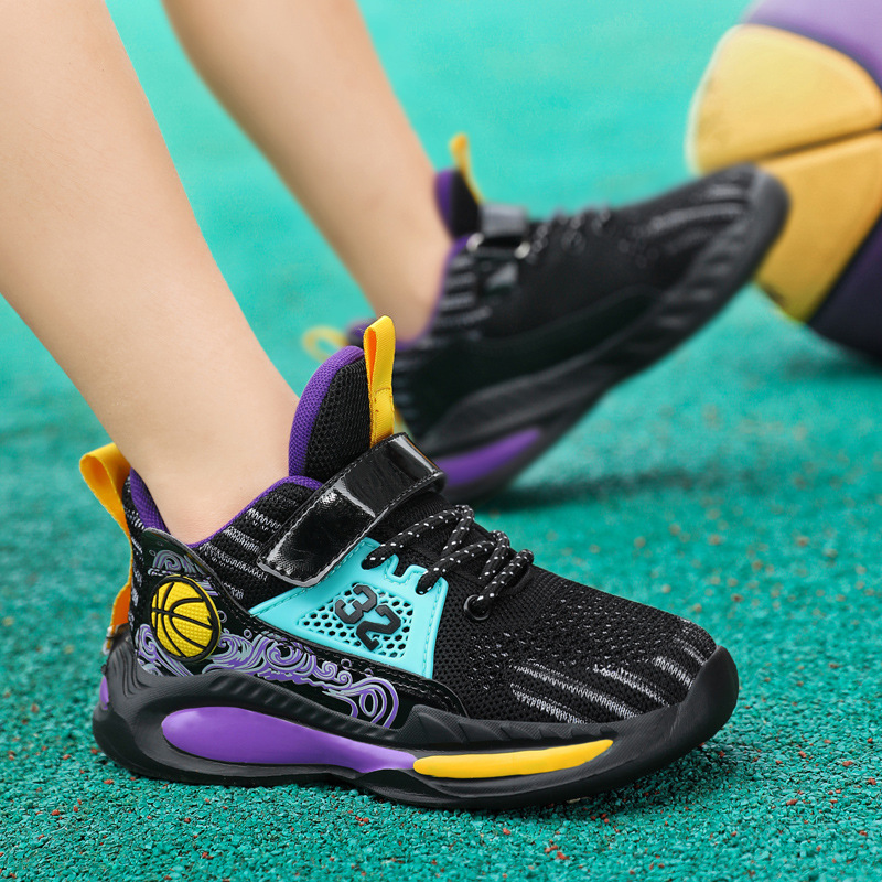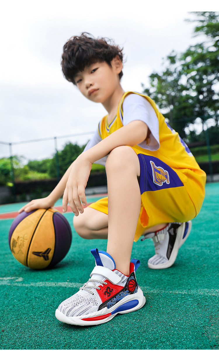 Zapatos de baloncesto para niños de 6 - 12 años de verano, zapatos de malla transpirables para niños, zapatos de correr de moda para niños mayores