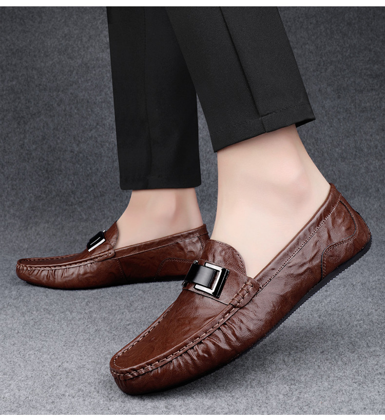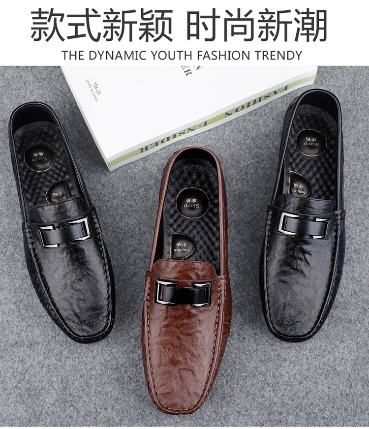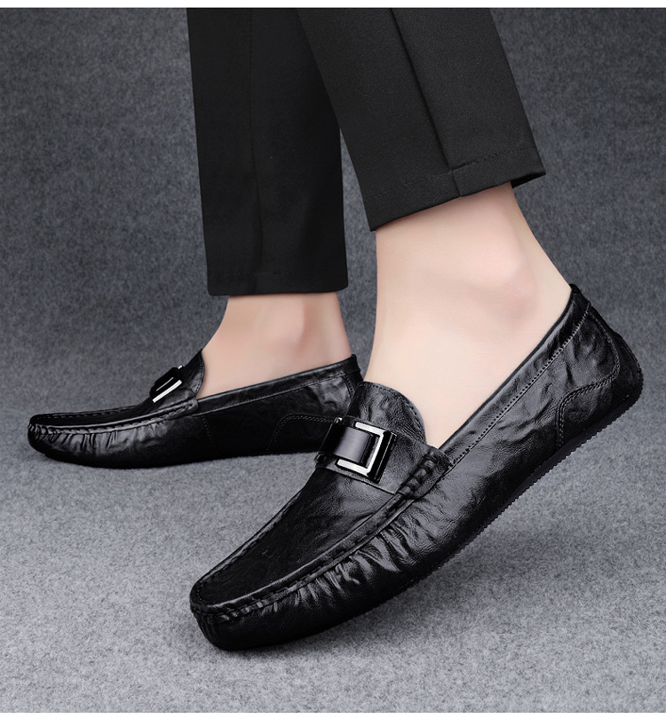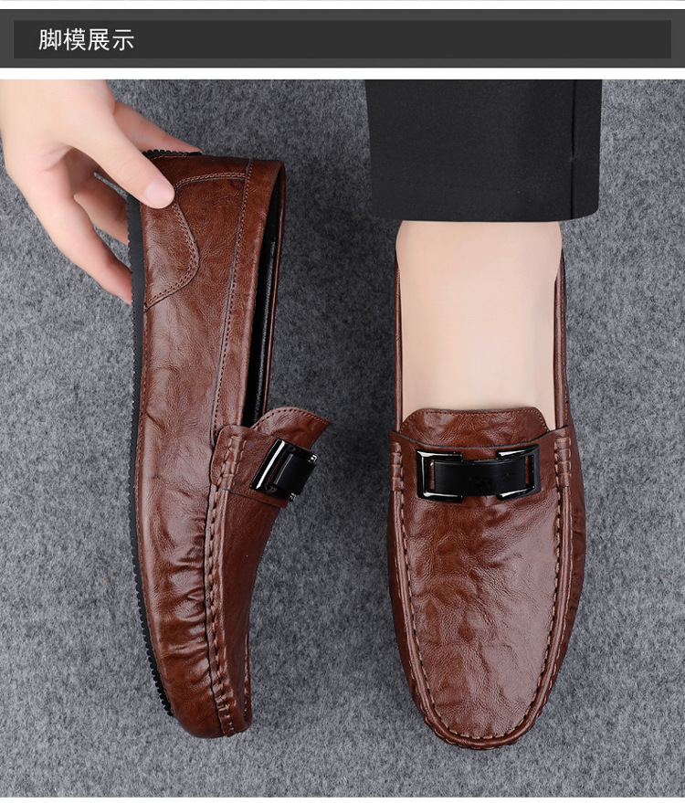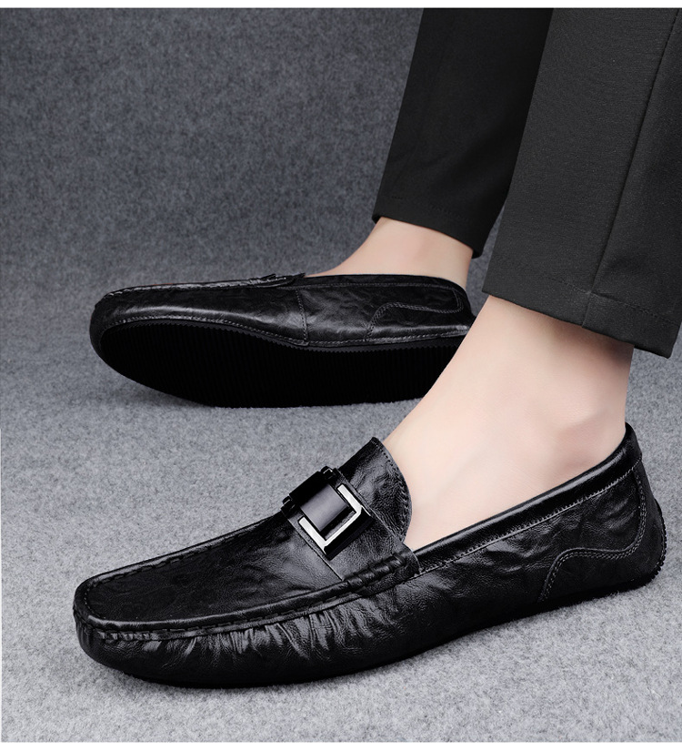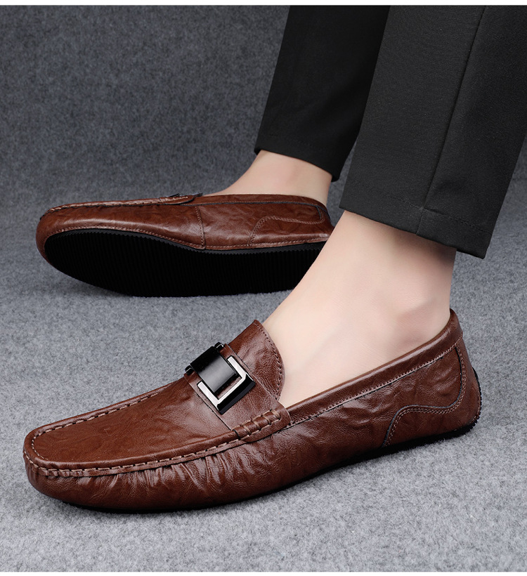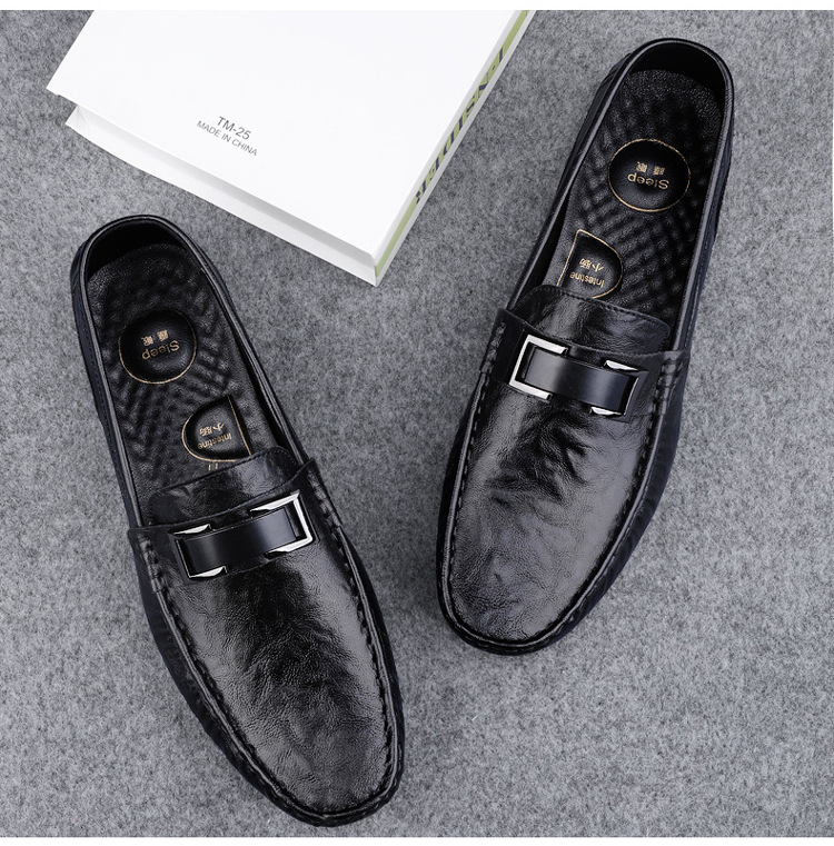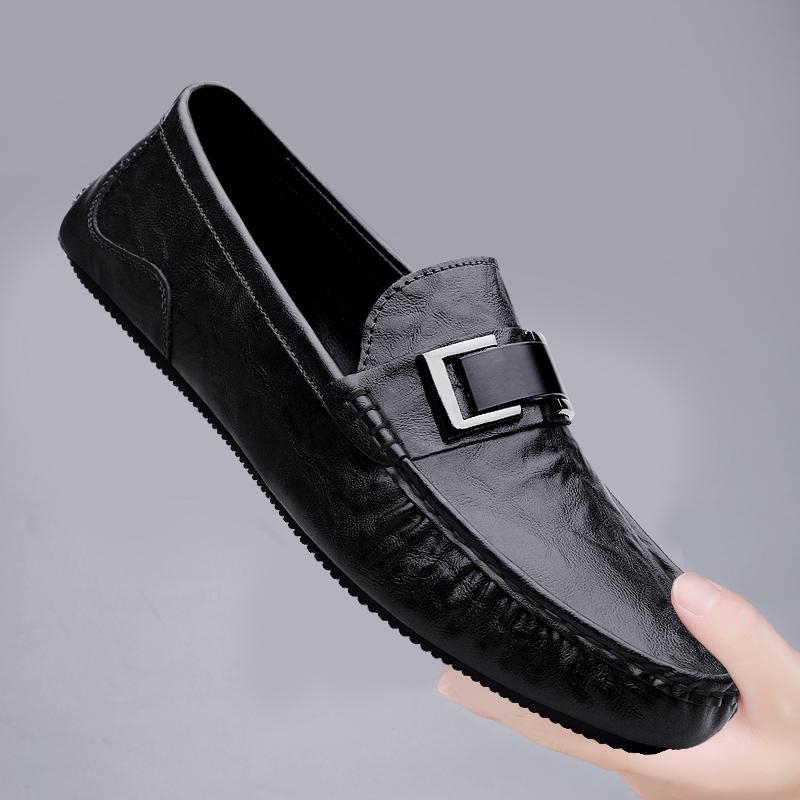 Zapatos de lujo ligero Bean para hombres de cuero genuino 2025 nuevos zapatos de estilo perezoso marca de moda impresión informal británica zapatos Lefour