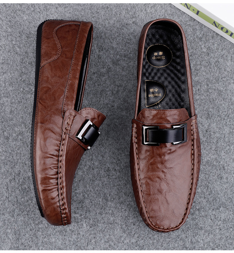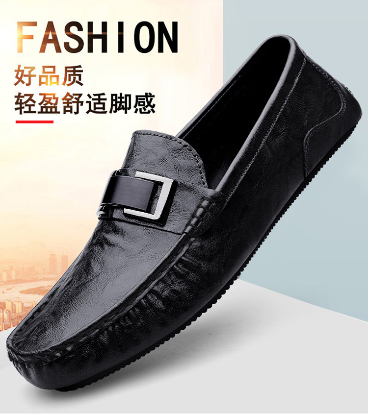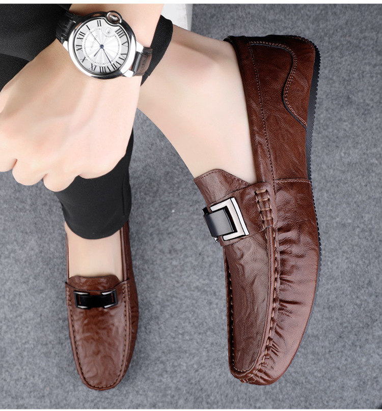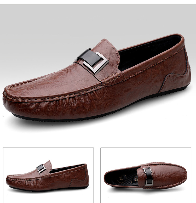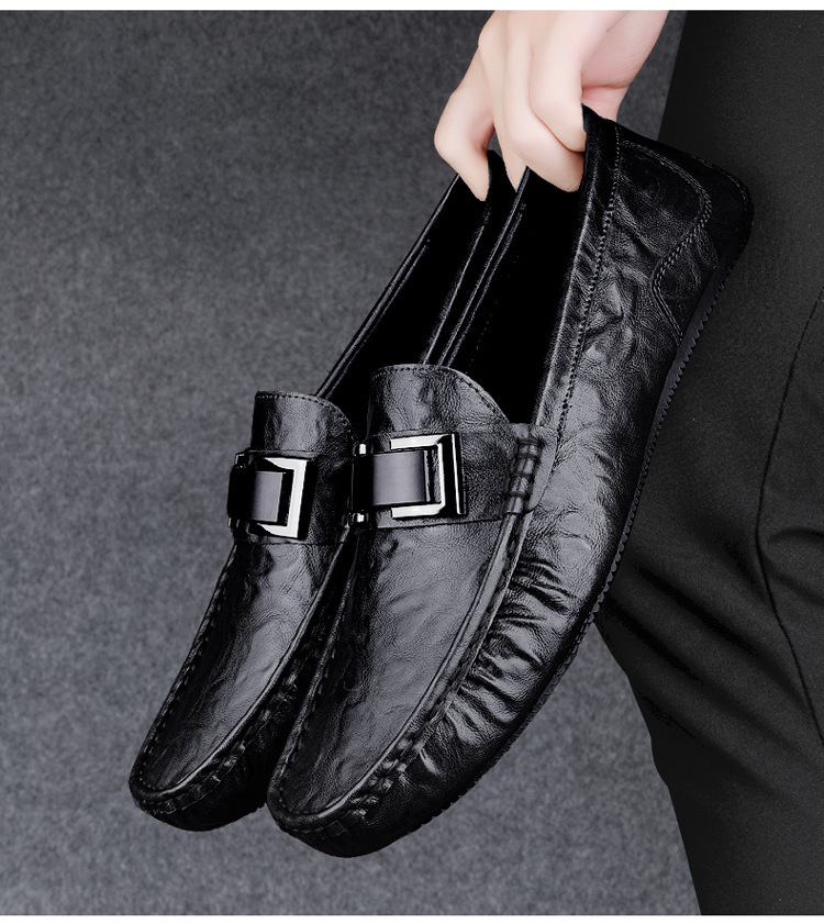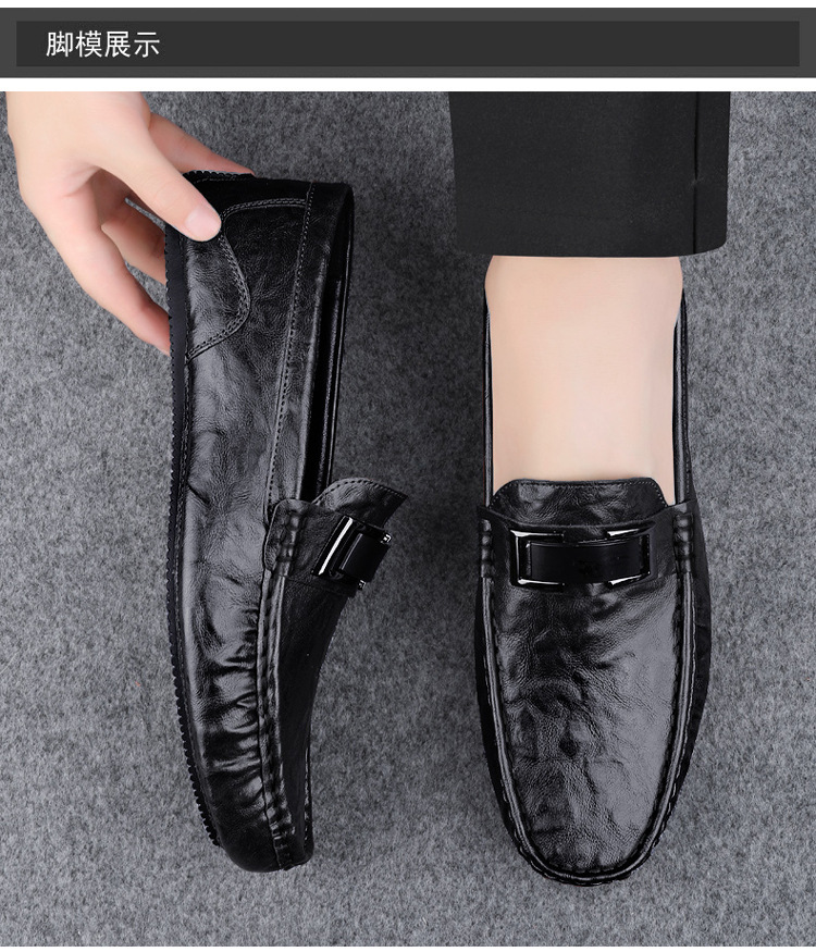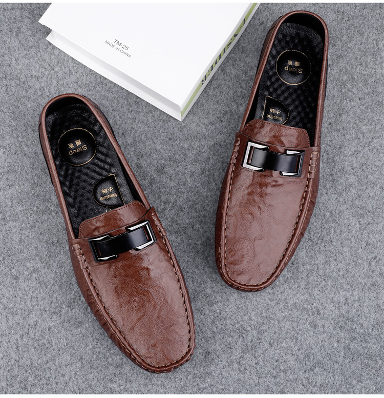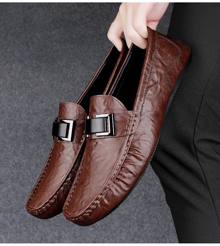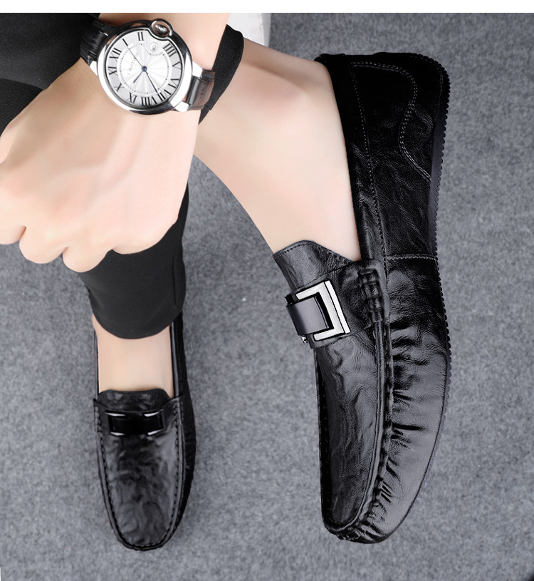 Zapatos de lujo ligero Bean para hombres de cuero genuino 2025 nuevos zapatos de estilo perezoso marca de moda impresión informal británica zapatos Lefour