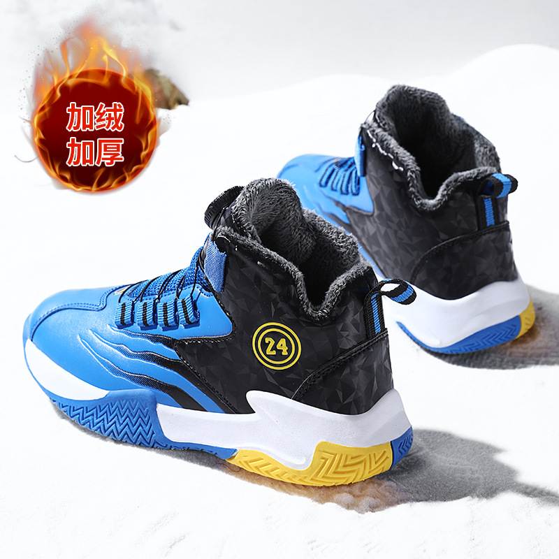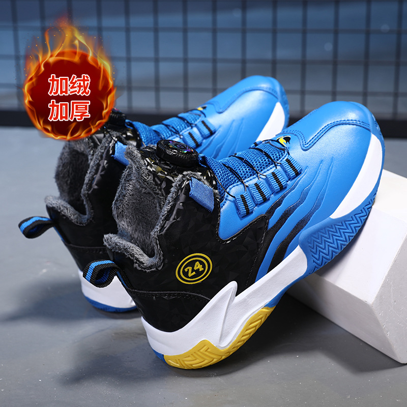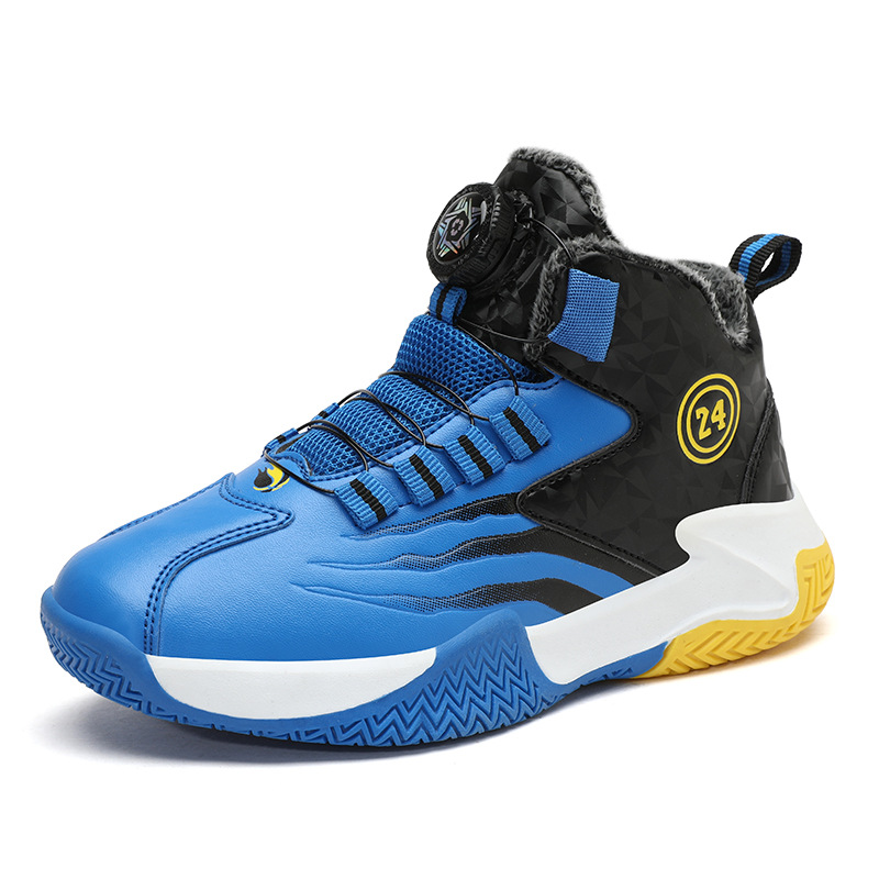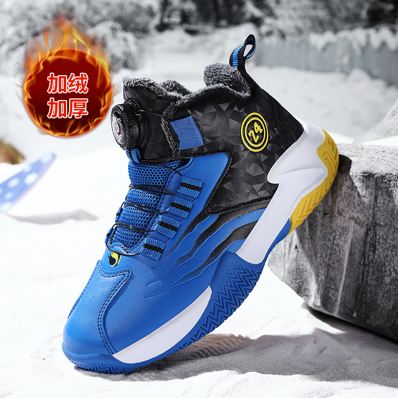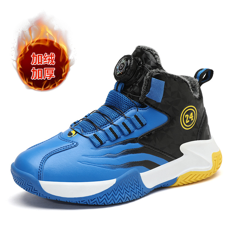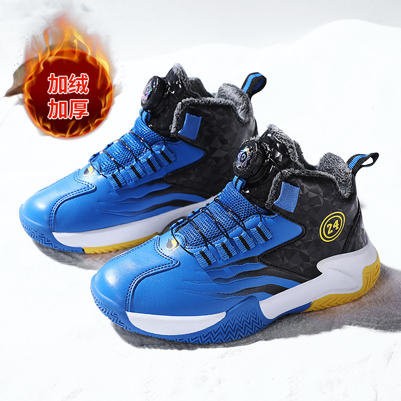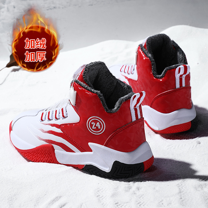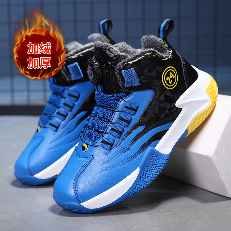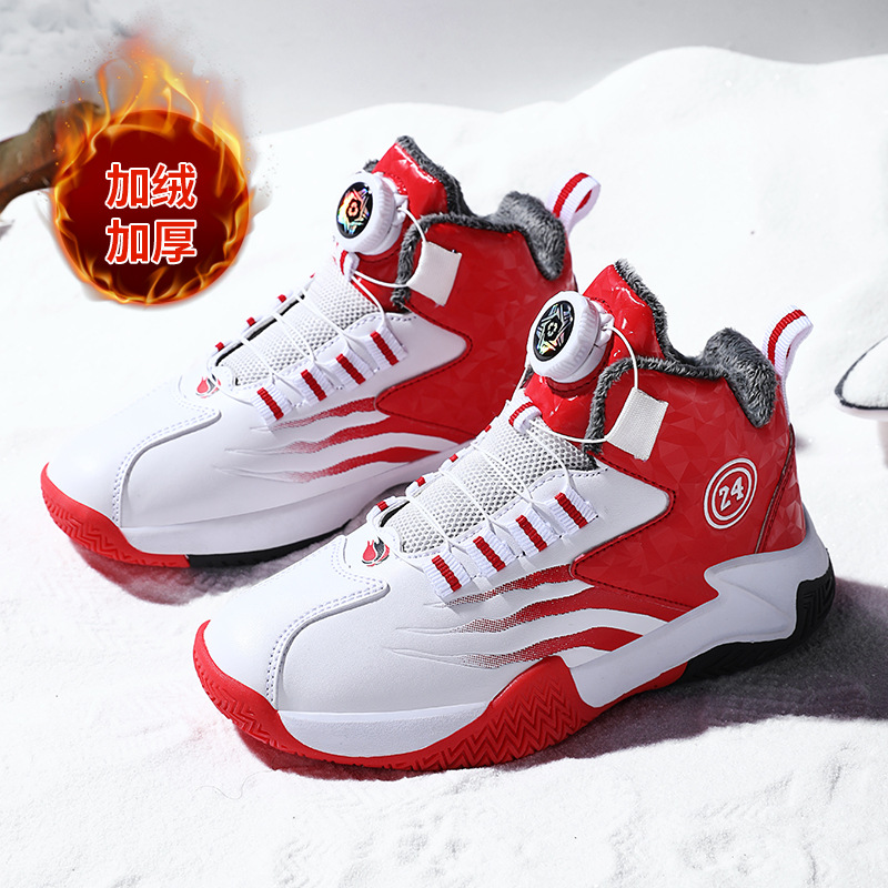 Zapatos de baloncesto para niños otoño y invierno nuevos niños rojos cuero botón giratorio para niños grandes y zapatos deportivos de algodón