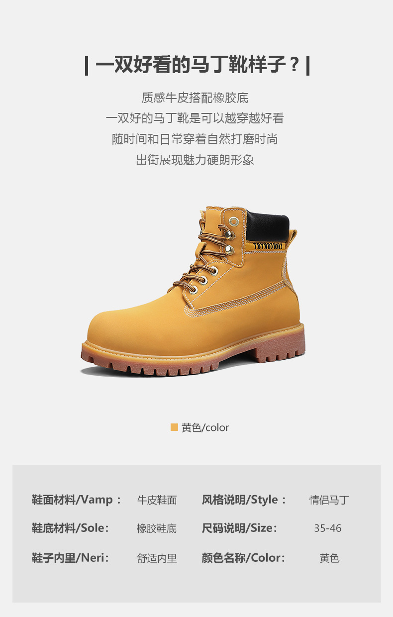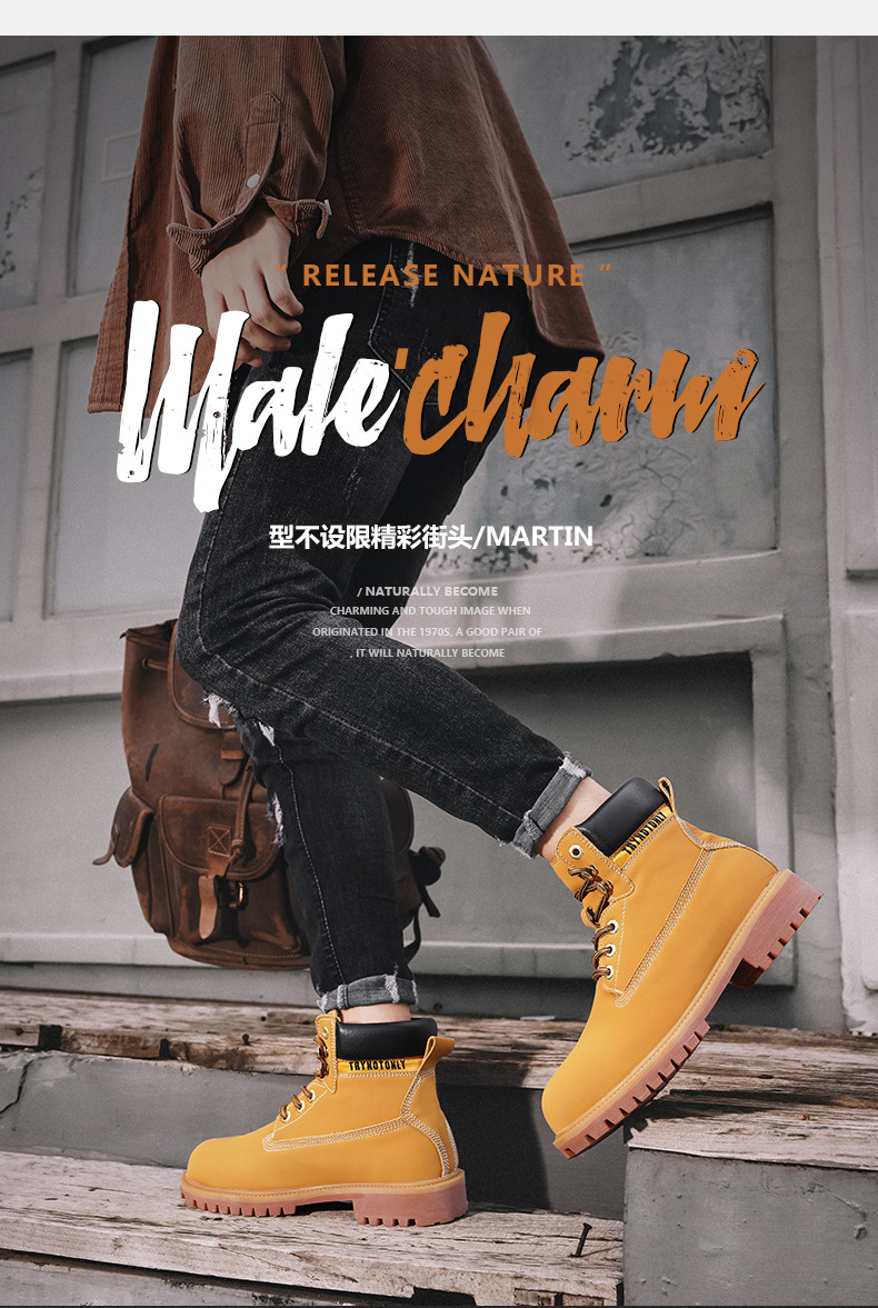 Otoño y invierno tendencia de cuero casual botas Martin para hombres ropa de estilo británico botas de hombre moda calentamiento zapatos de hombre pareja
