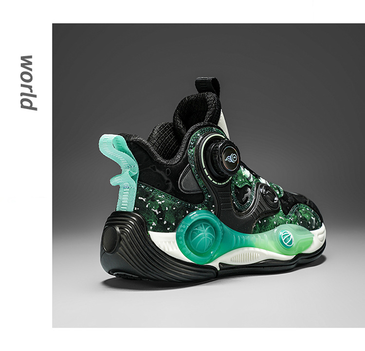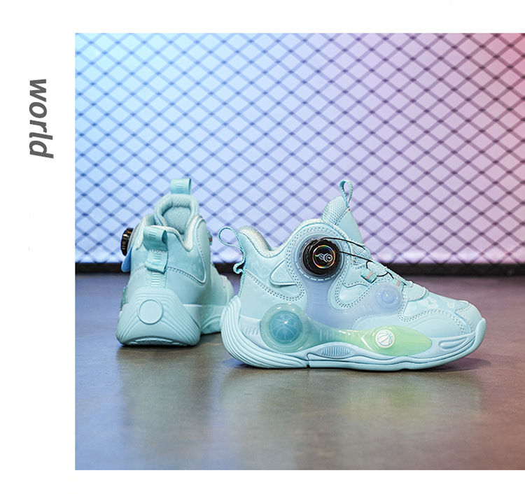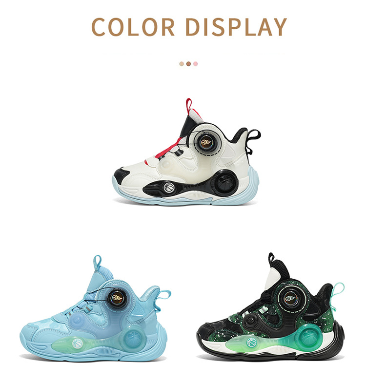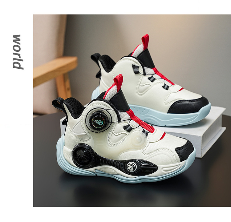 Fabricantes de zapatos de baloncesto de cuero de fondo grueso para niños con botón giratorio al aire libre anti-deslizante zapatillas deportivas frescas nuevas