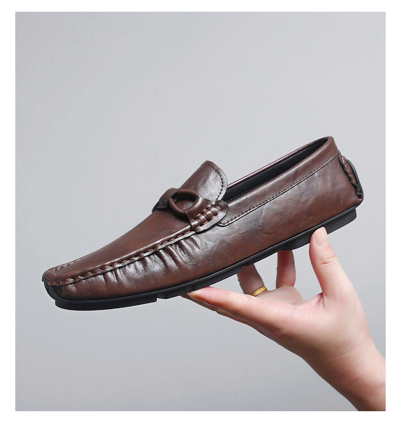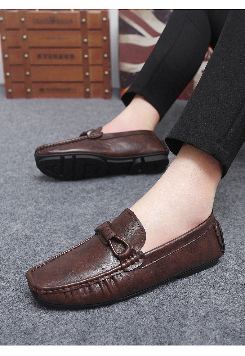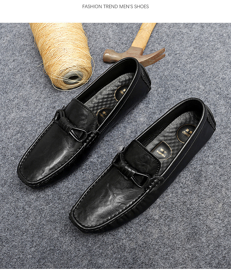Zapatos de hombre de cuero real 2025 nuevos zapatos de negocios británicos transpirables con suela suave zapatos casuales perezosos con un pie zapatos para hombre