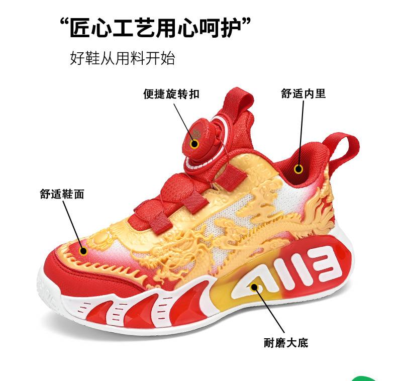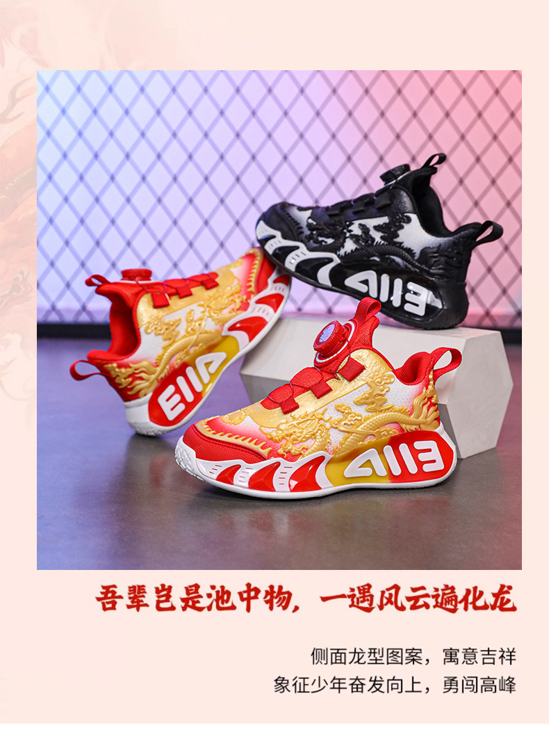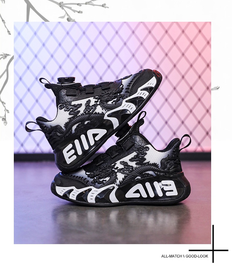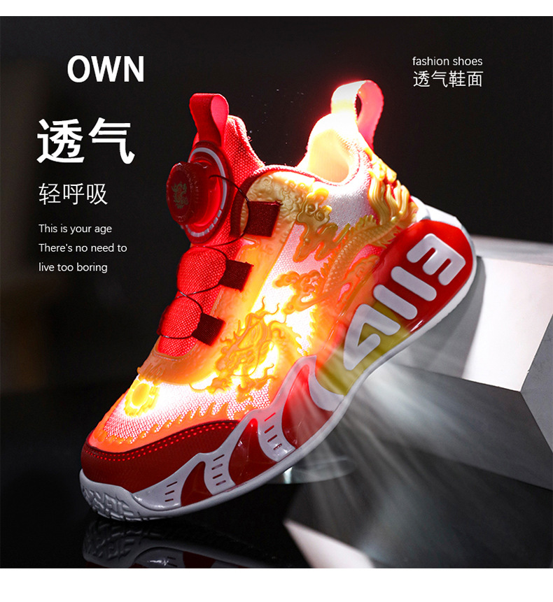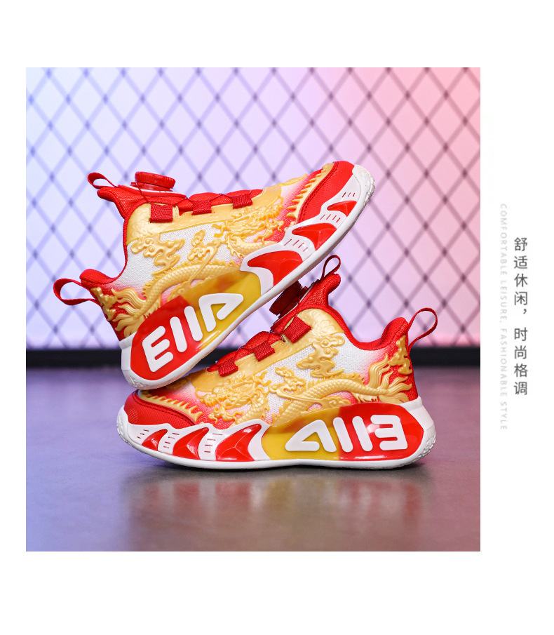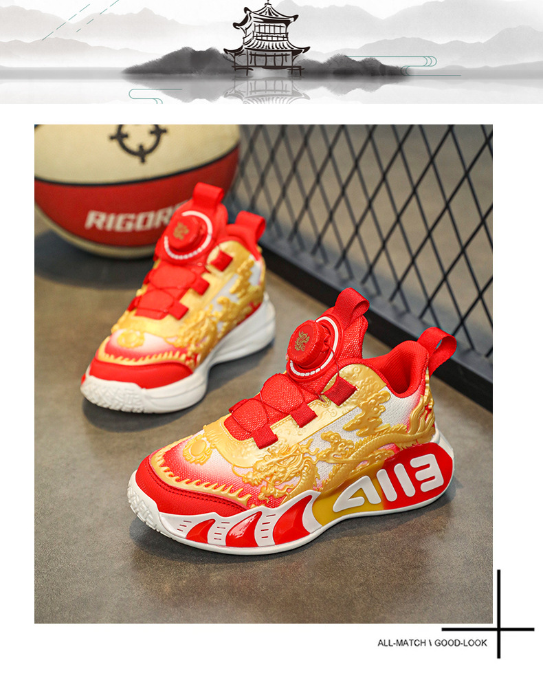 Zapatos de baloncesto para niños, nuevos zapatos de verano chinos, dragón limitado, zapatos de deporte transpirables para niños.