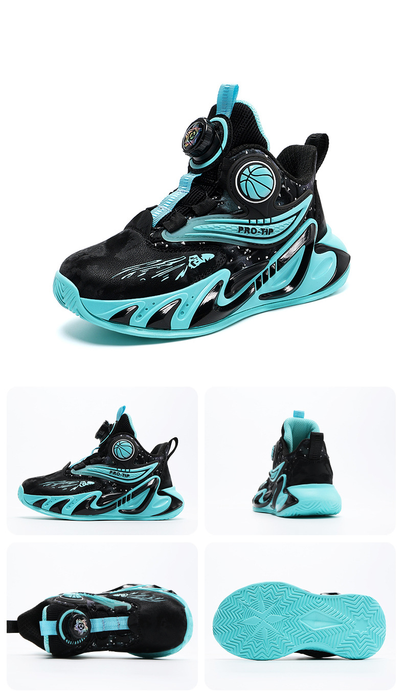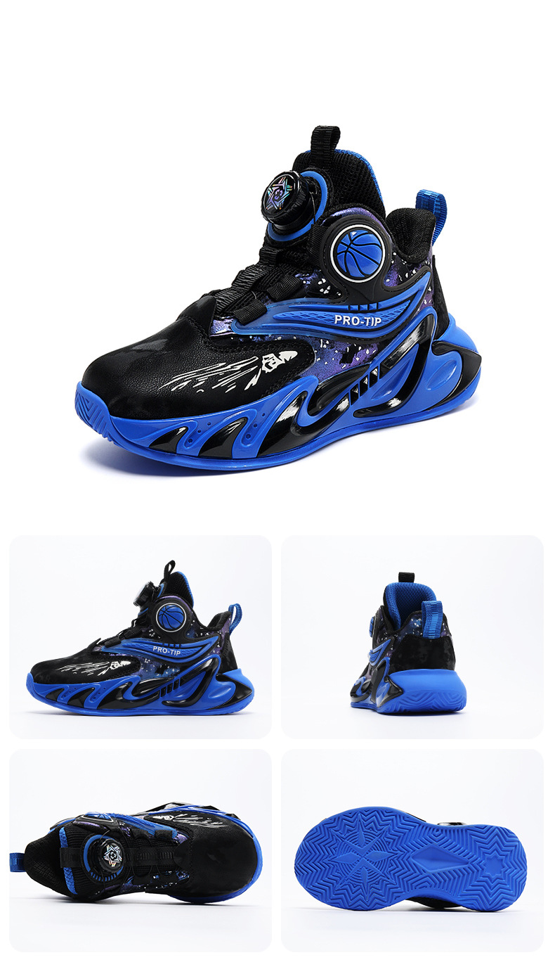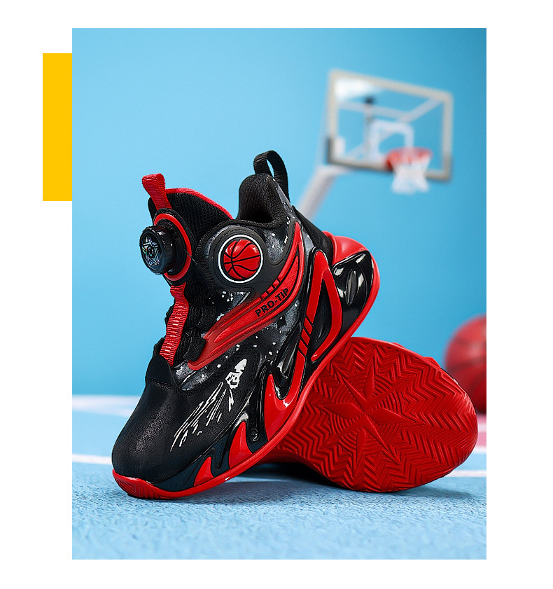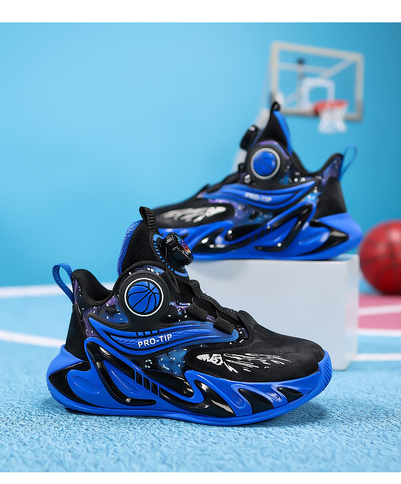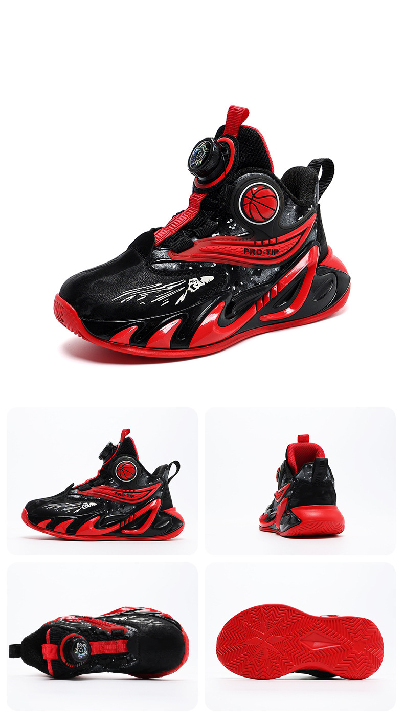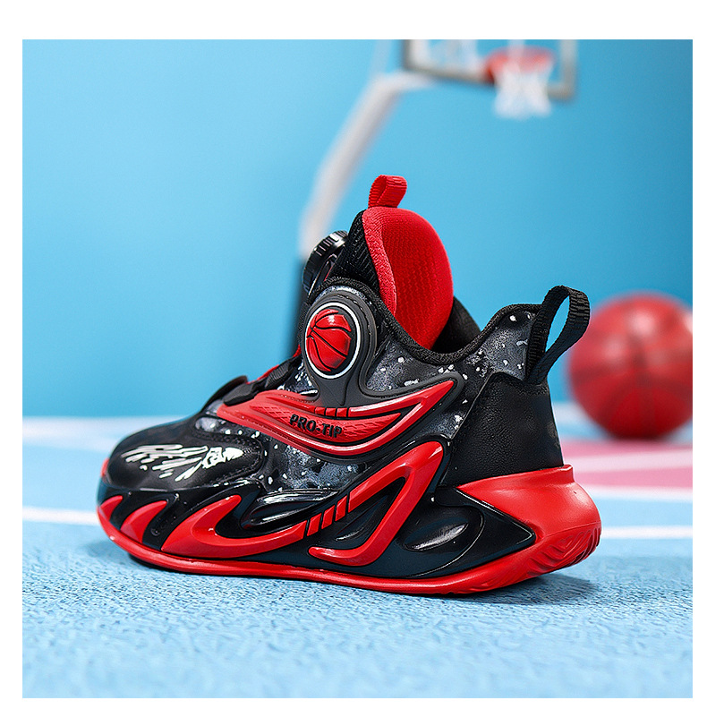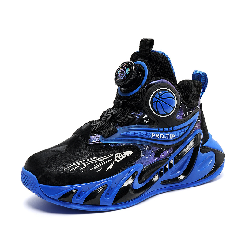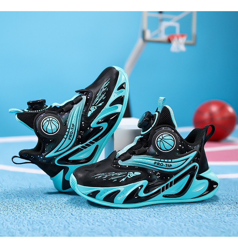 2025 explosión de zapatos de baloncesto para niños botón giratorio zapatos de baloncesto de cuero con suela gruesa zapatos antideslizantes al aire libre