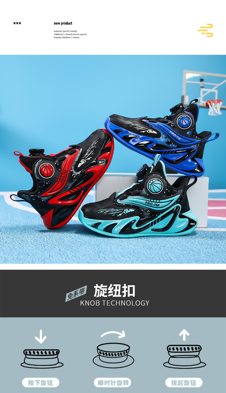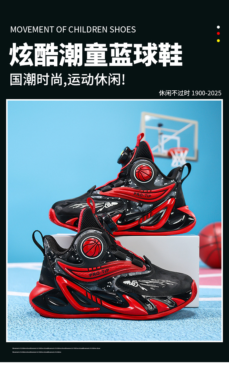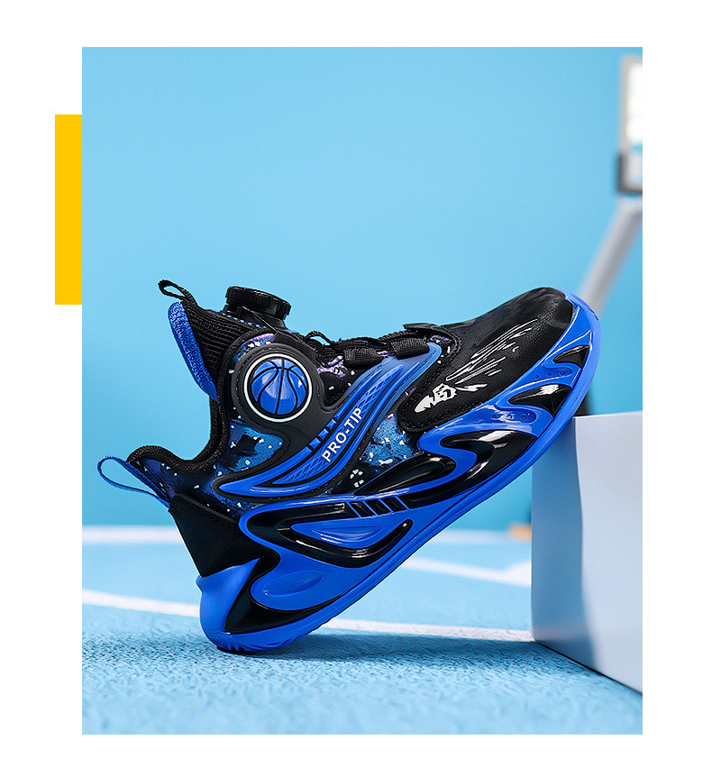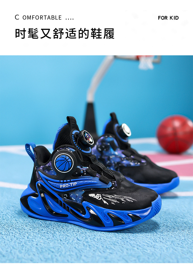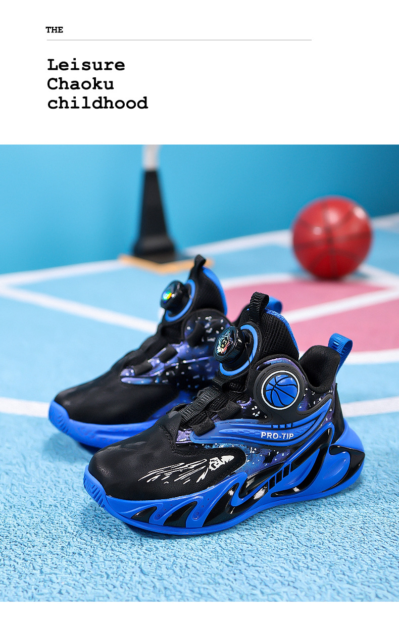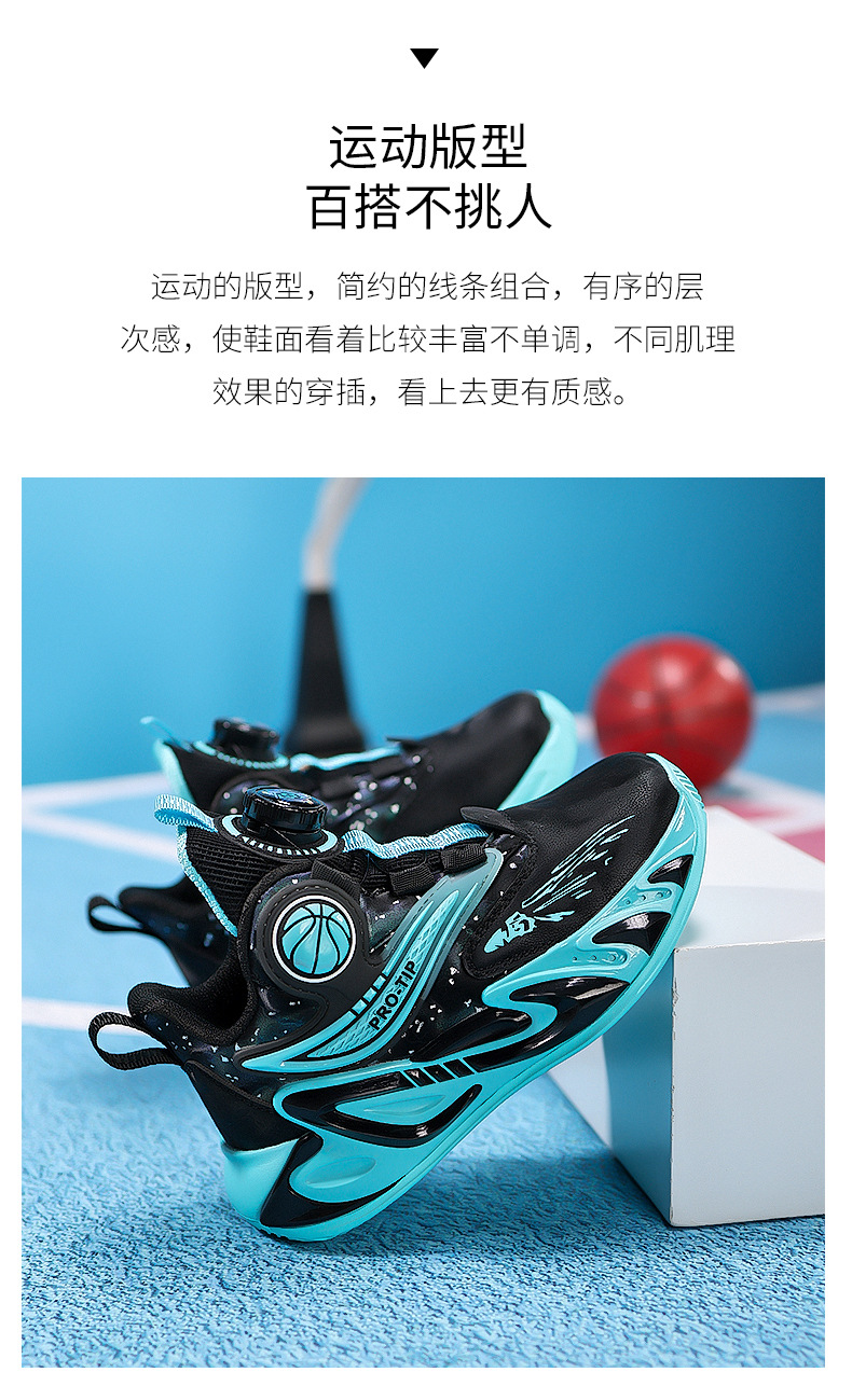 2025 explosión de zapatos de baloncesto para niños botón giratorio zapatos de baloncesto de cuero con suela gruesa zapatos antideslizantes al aire libre