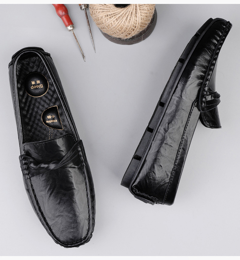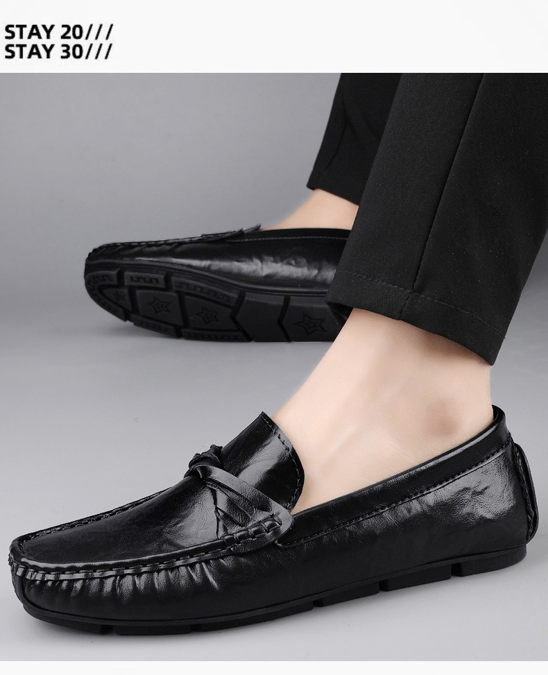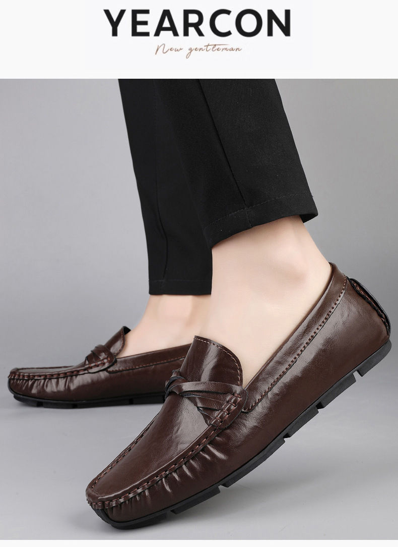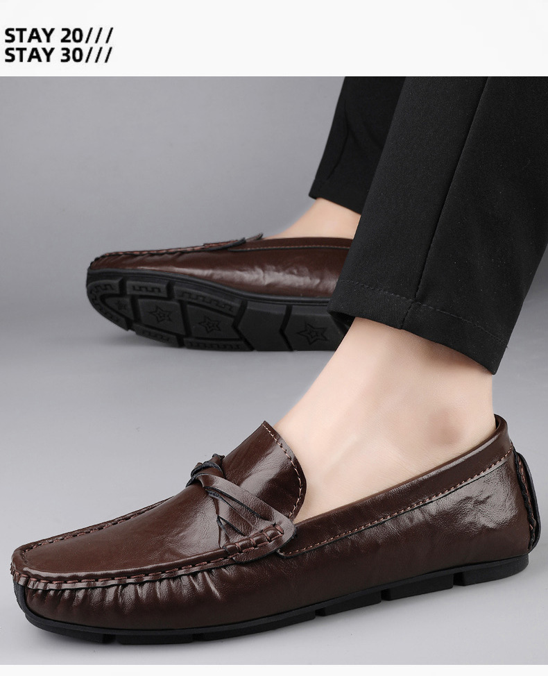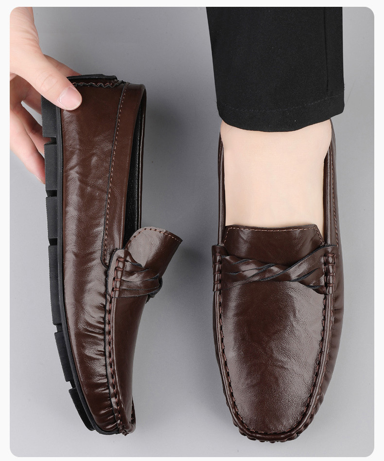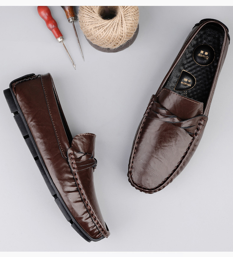 Zapatos de hombre de cuero real 2025 nuevos zapatos de negocios británicos transpirables con suela suave zapatos casuales perezosos con un pie zapatos para hombre